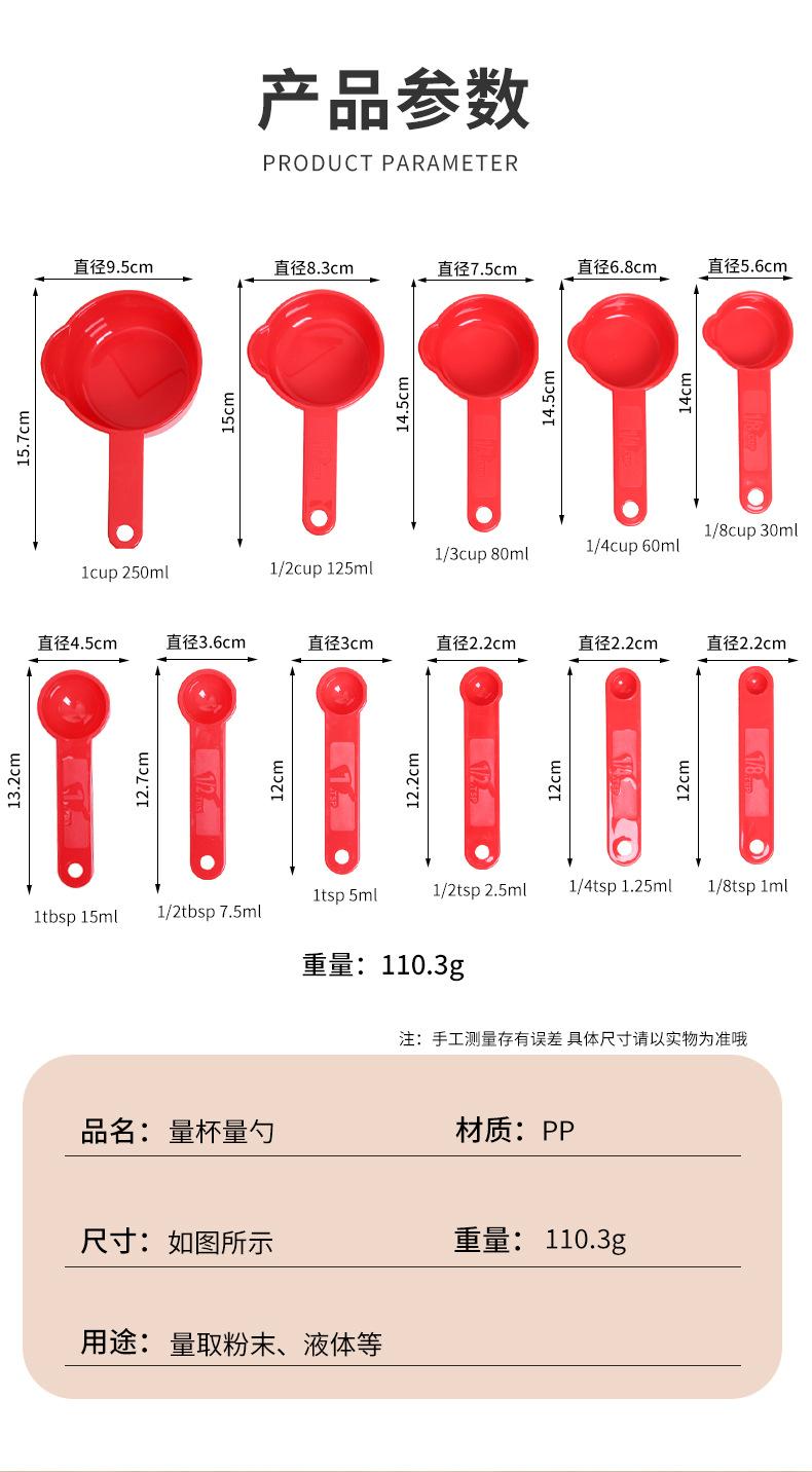Set de Tazas y Cucharas Medidoras de Plástico Transfronterizo Juego de 10 Piezas Juego de Tazas y Cucharas Medidoras Herramientas para Hornear Herramientas para Pesar con Escala