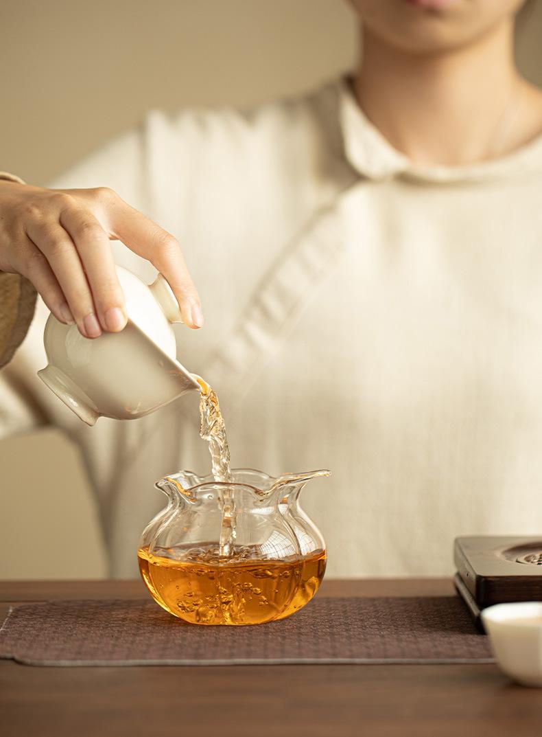 Taza Gongdao de Pétalos Hecha a Mano Mar de Té de Vidrio de Borosilicato Alto Separador de Té Tetera para Preparar Té Hogar Resistente a Altas Temperaturas Juego de Té Kung Fu