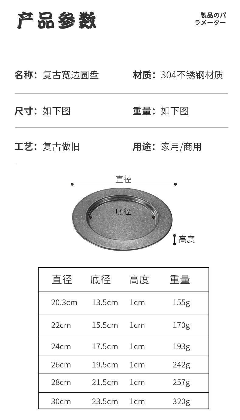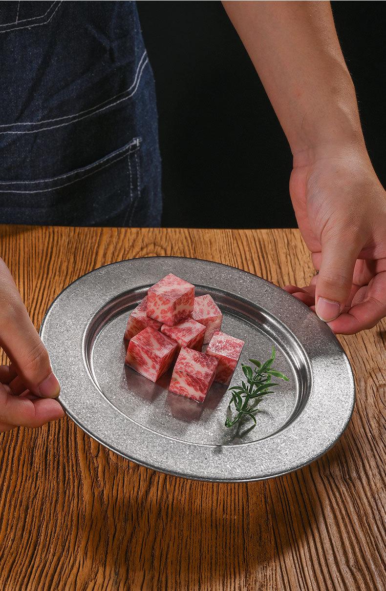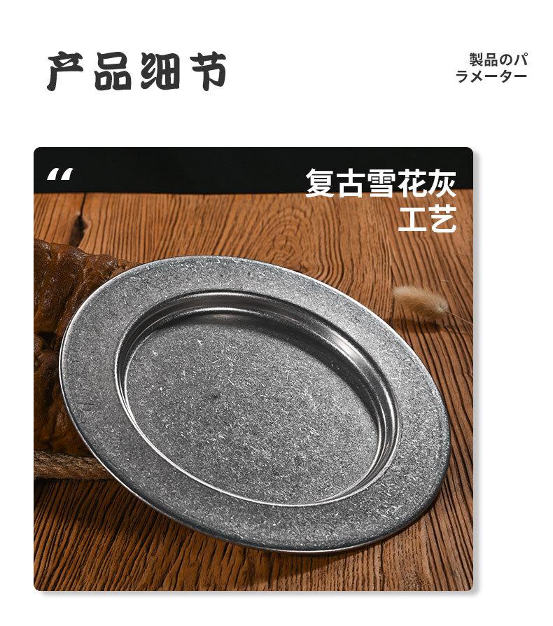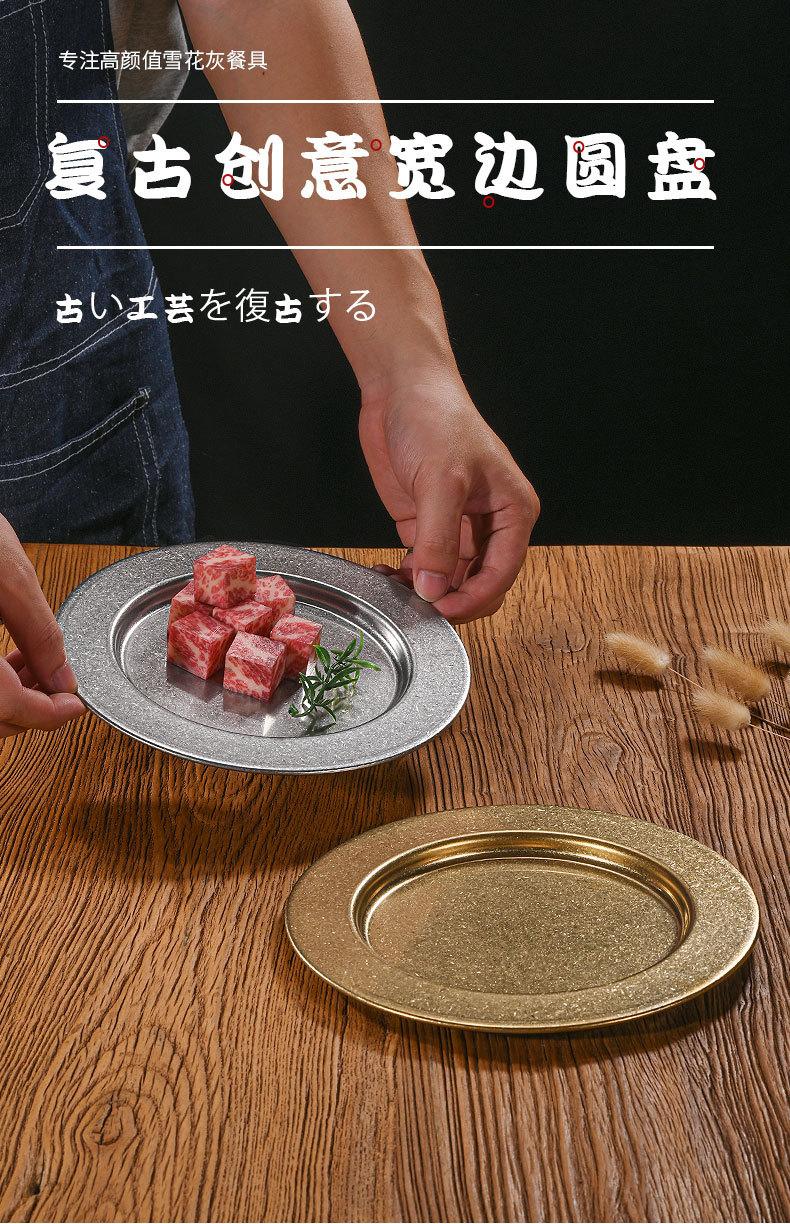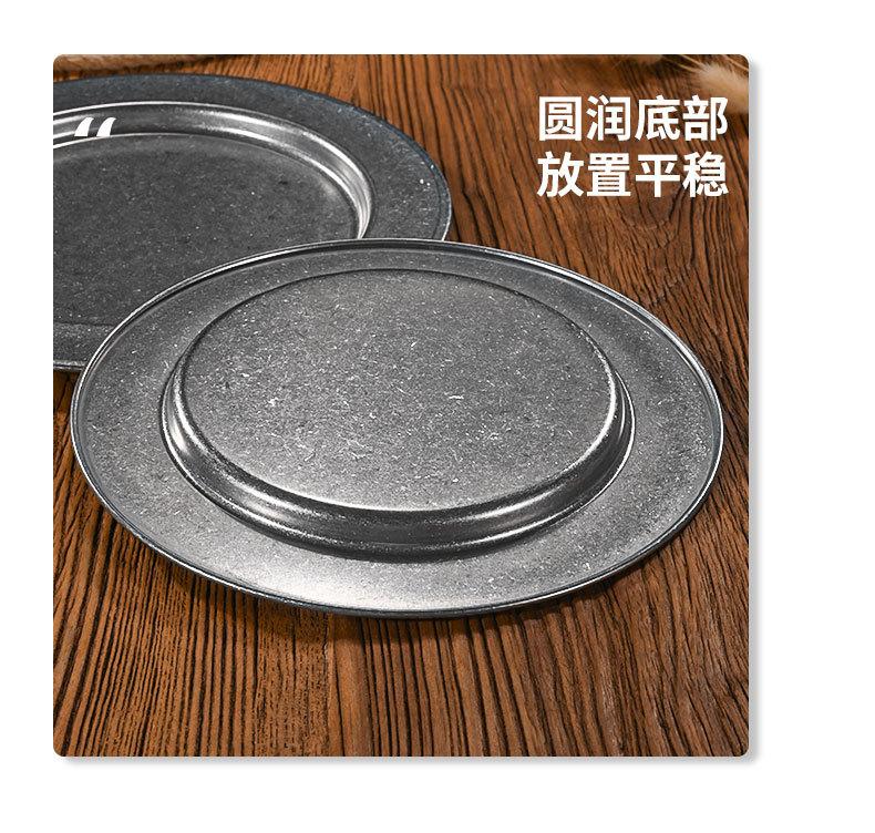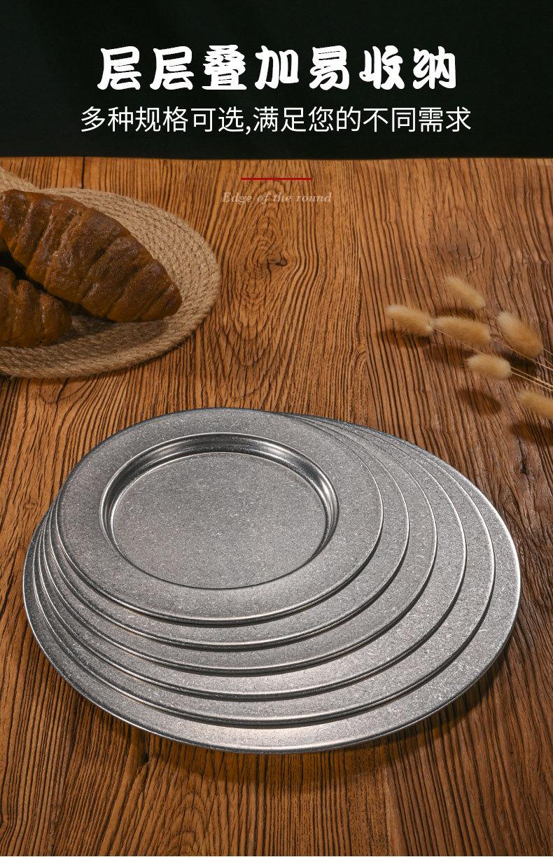La fábrica puede personalizar el logotipo vintage acero inoxidable redondo bandeja de café plato para pastel de postre plato llano plato hondo para comida occidental