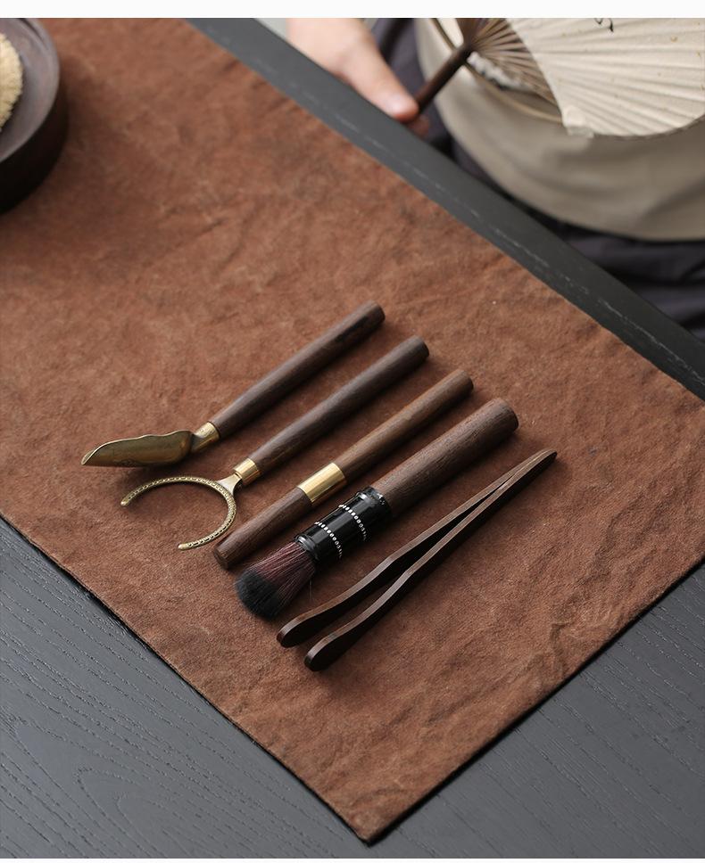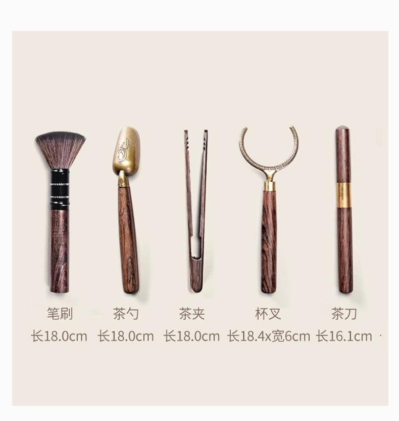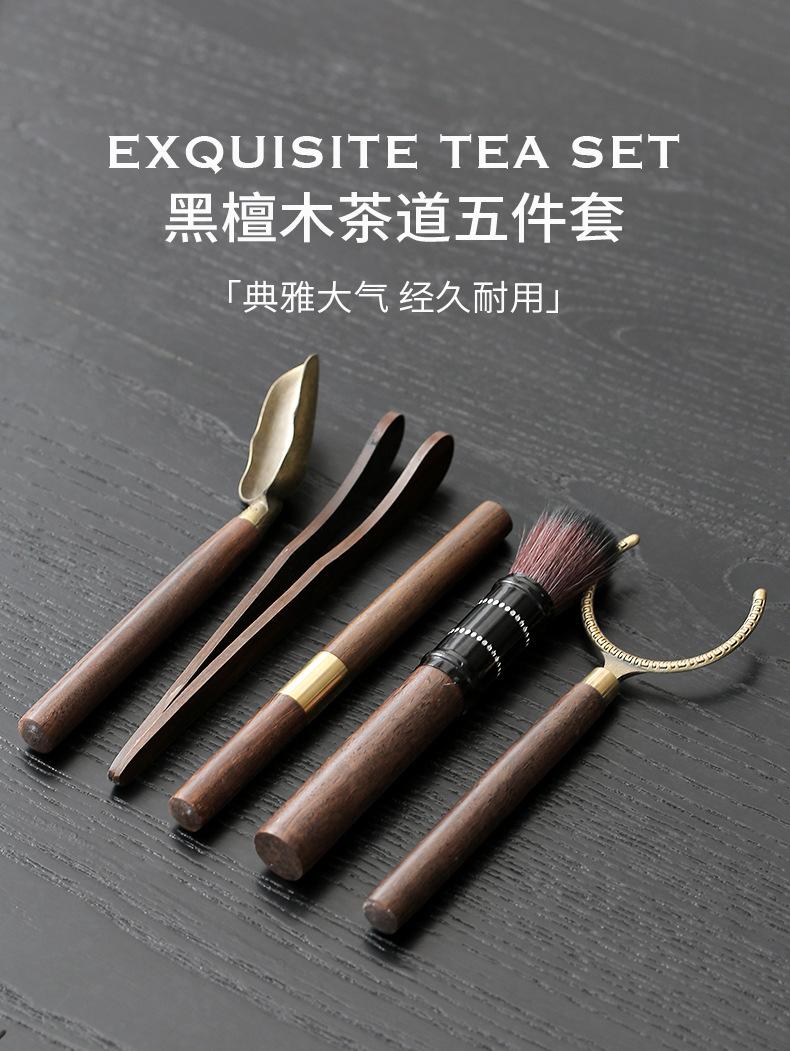 Juego completo de ébano ceremonia del té cinco caballeros Aguja de té pinza de té cucharilla pala de té cuchara de té accesorios para juego de té kung fu ceremonia del té de madera maciza