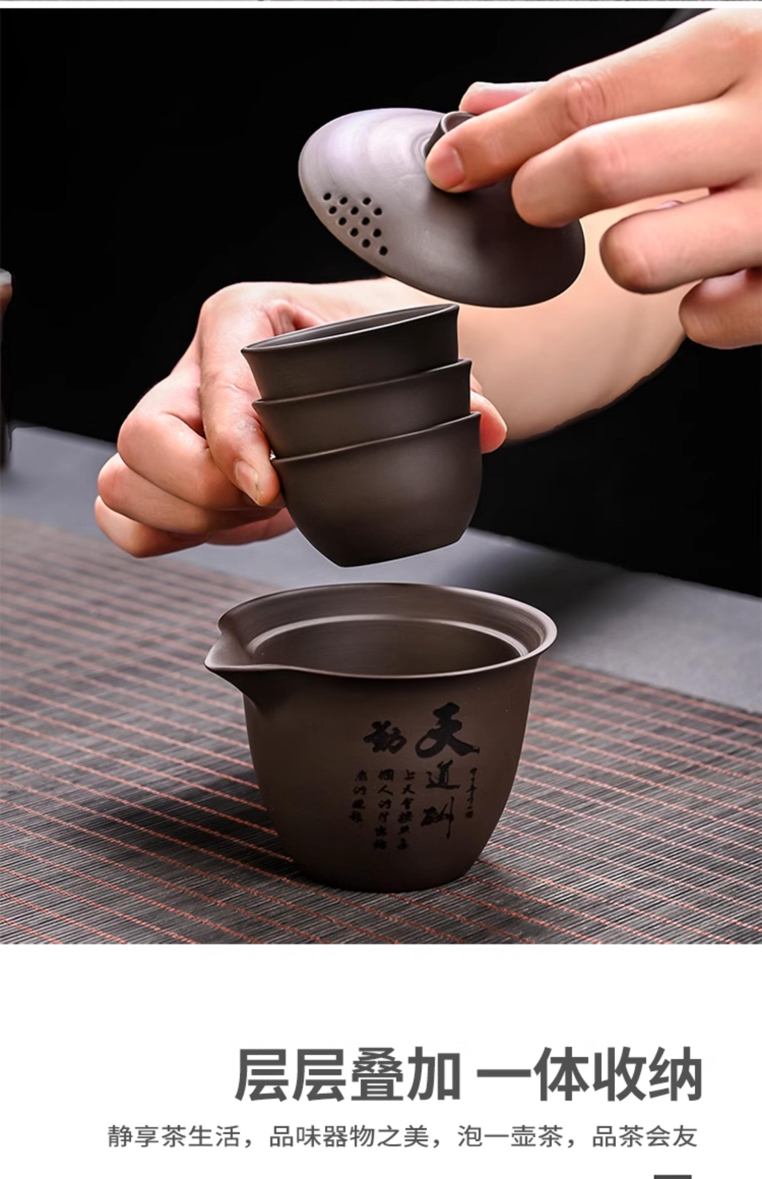 Juego de Té de Viaje Taza Rápida Portátil Camping Exterior Taza de Té Una Olla Tres Tazas Tetera Persona Ding