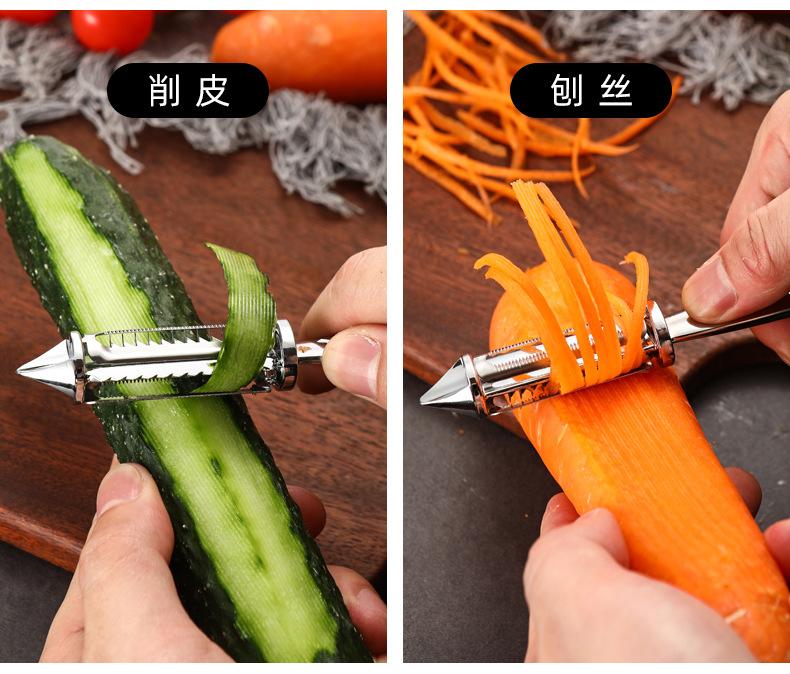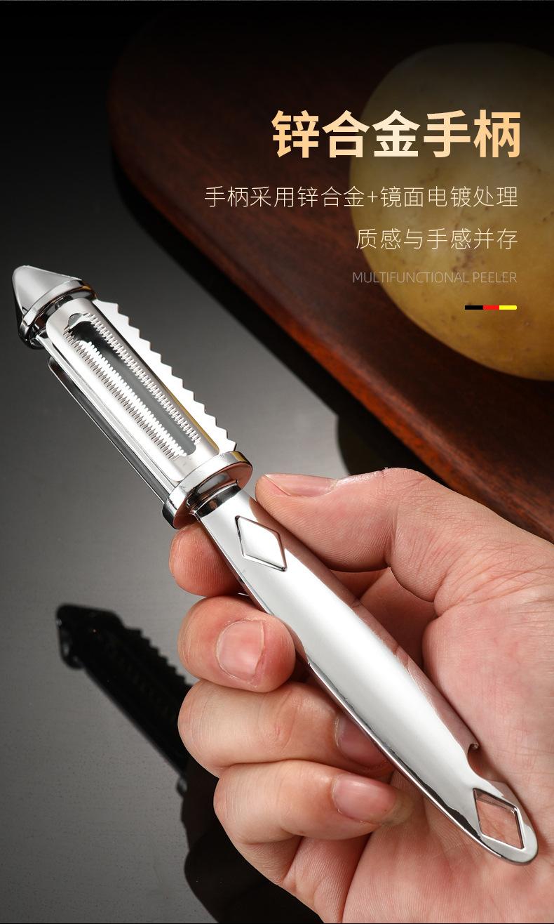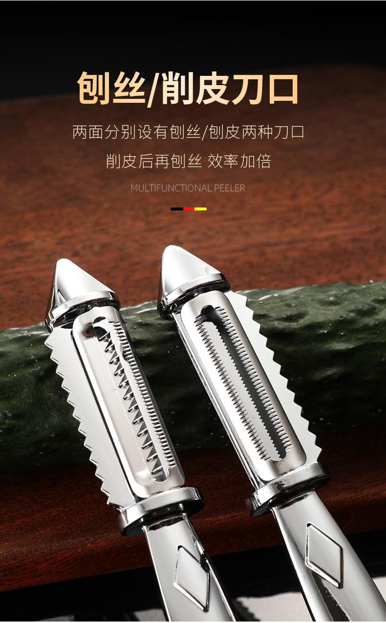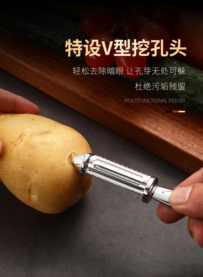 Pelador de acero inoxidable de doble cara para pelar patatas, rallador, cocina, fruta, hogar, multifuncional, rallador de melón, raspador