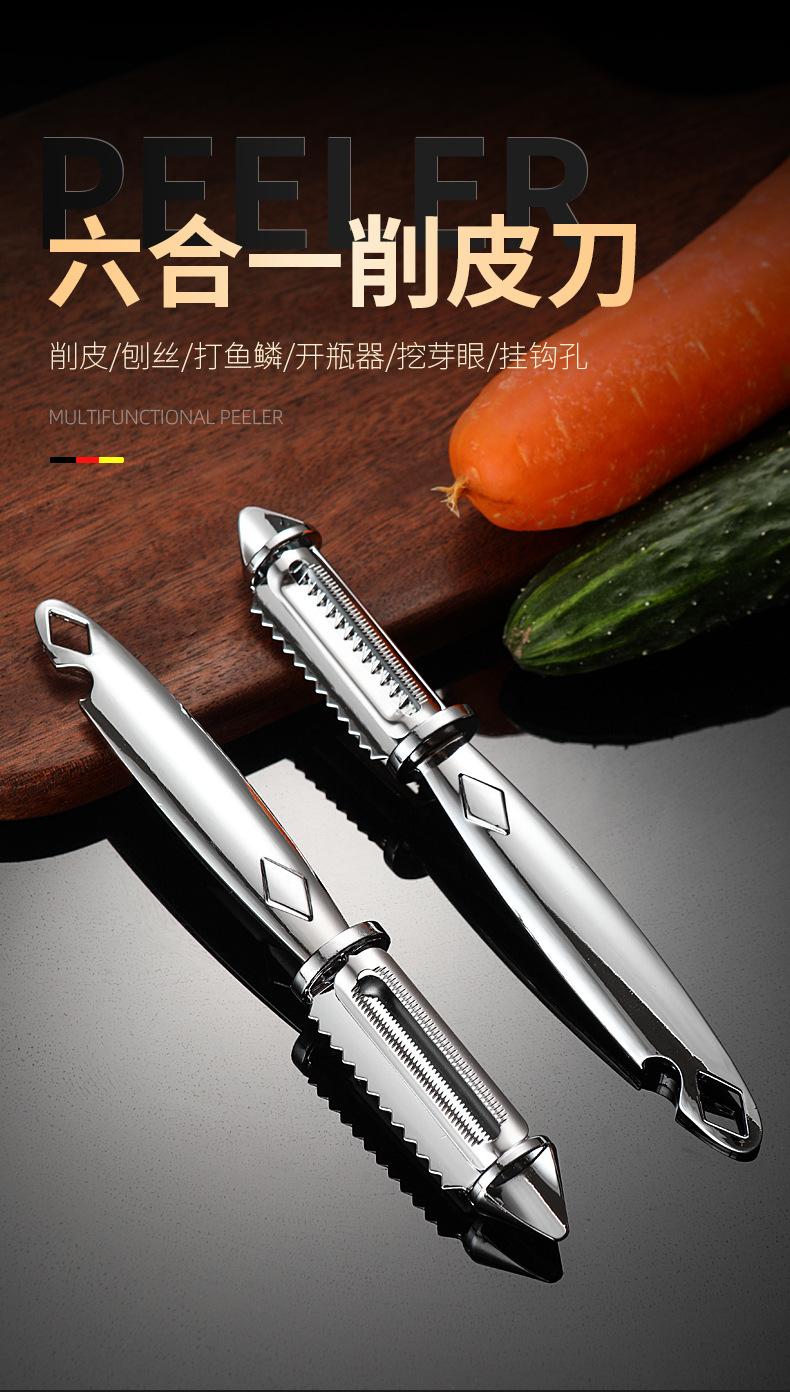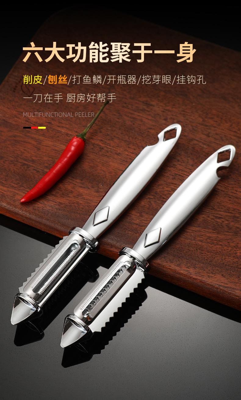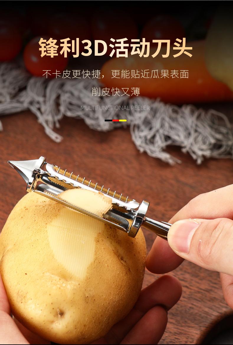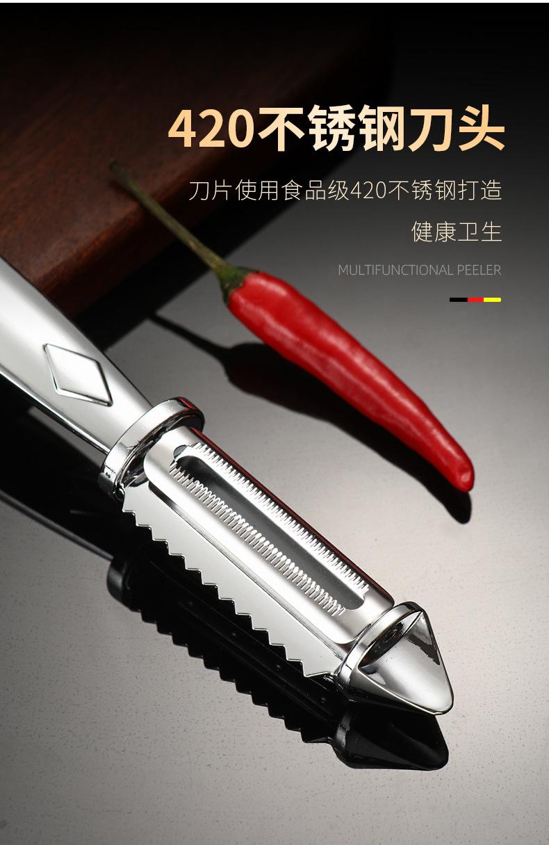 Pelador de acero inoxidable de doble cara para pelar patatas, rallador, cocina, fruta, hogar, multifuncional, rallador de melón, raspador
