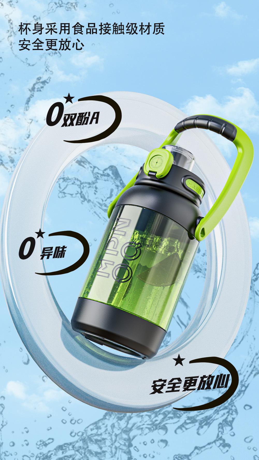 Botella de Agua Deportiva para Exteriores de Tritán de Gran Capacidad, Vaso Portátil Grande, Botella de Agua de Plástico Grande para Ciclismo