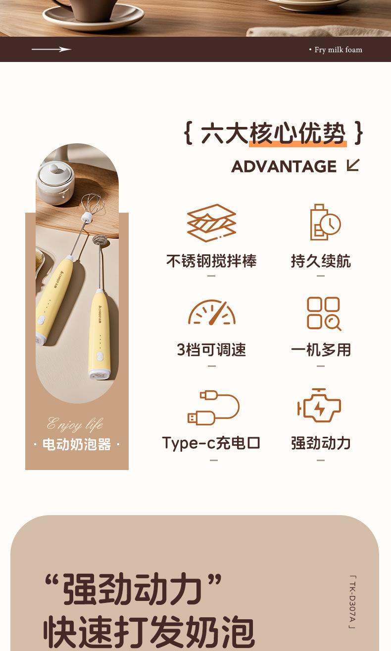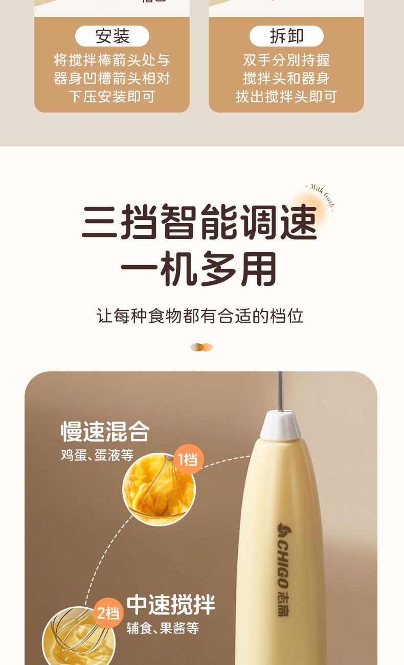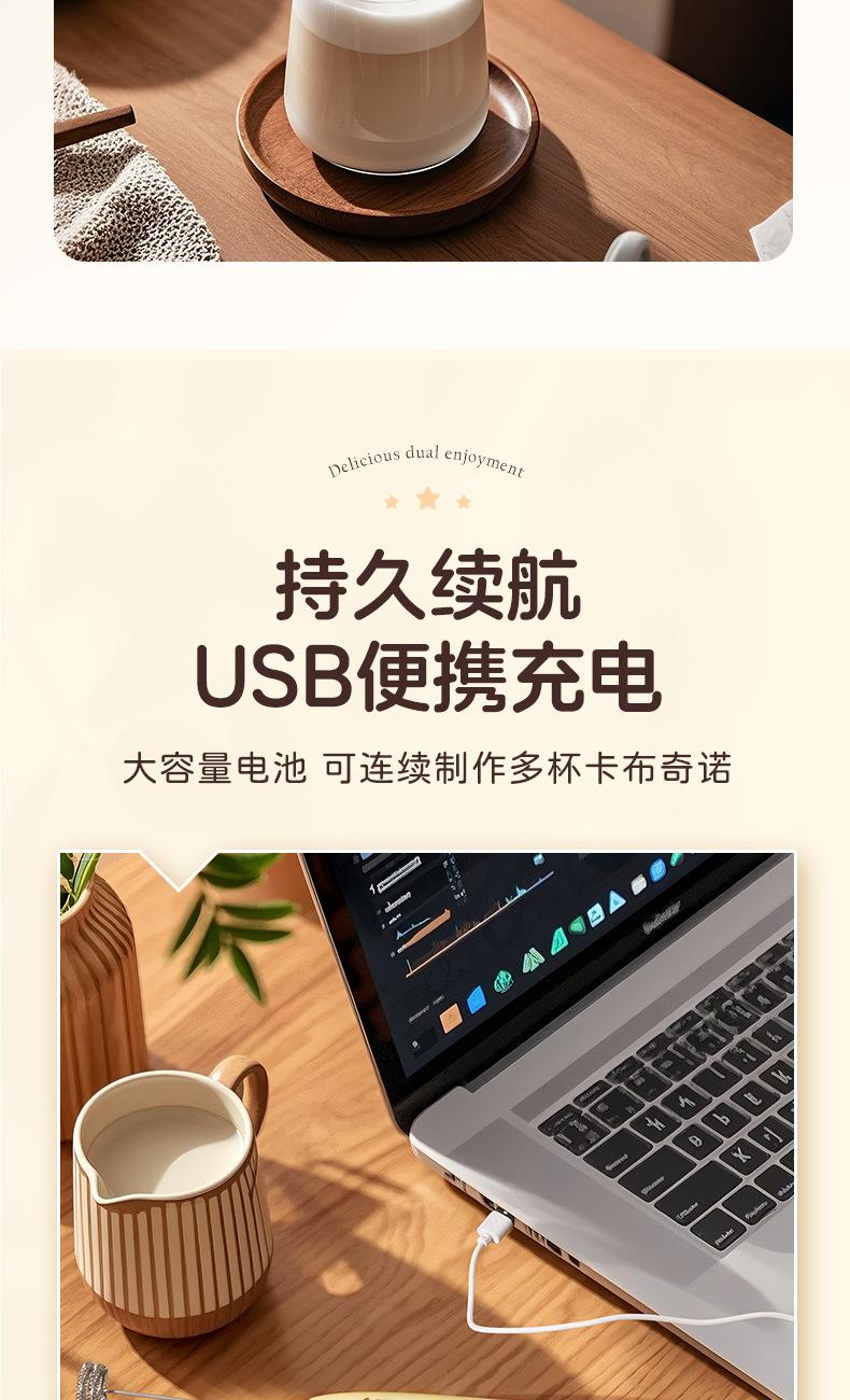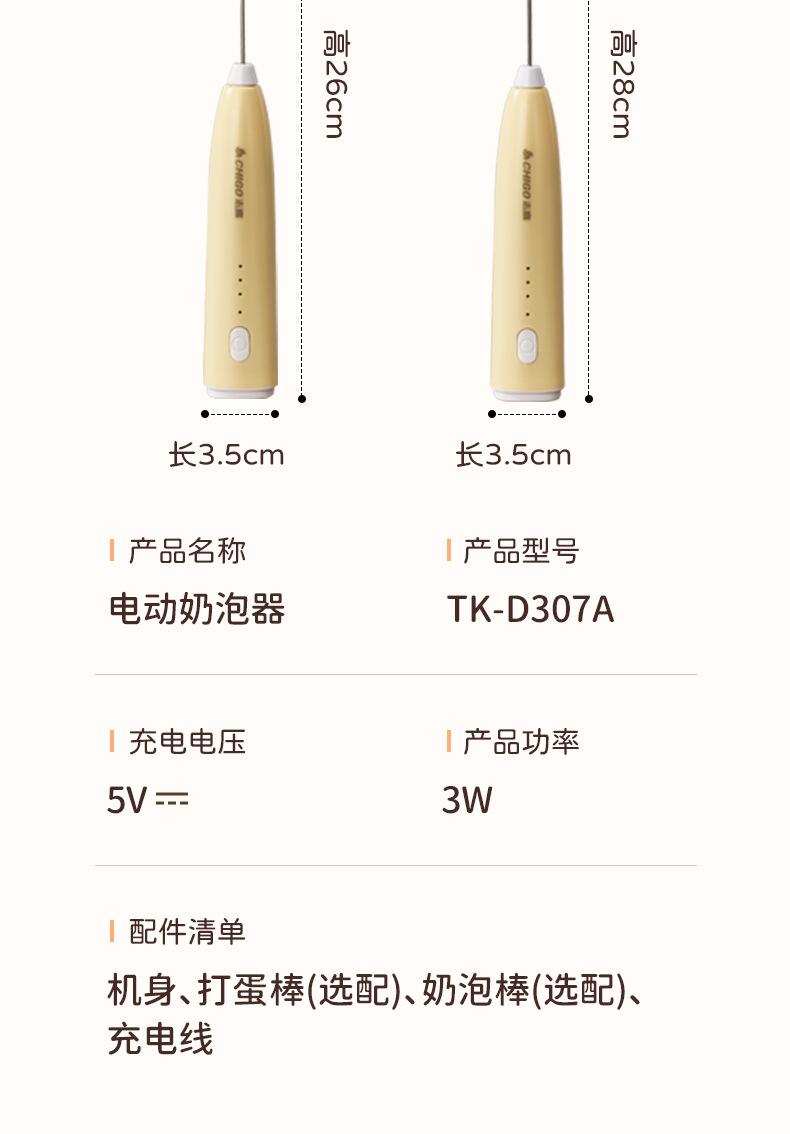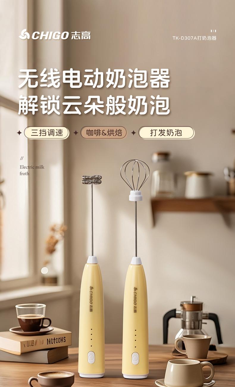 Espumador de Leche Eléctrico Chigo Espumador de Café Batidor de Crema de Leche Espumador Inalámbrico de Mano Espumador de Leche
