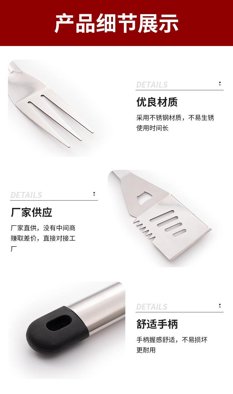 Juego de Herramientas para Barbacoa de Acero Inoxidable Barbacoa al Aire Libre Camping Cocina Espátula para Barbacoa Tenedor Pinzas Fabricante Personalización