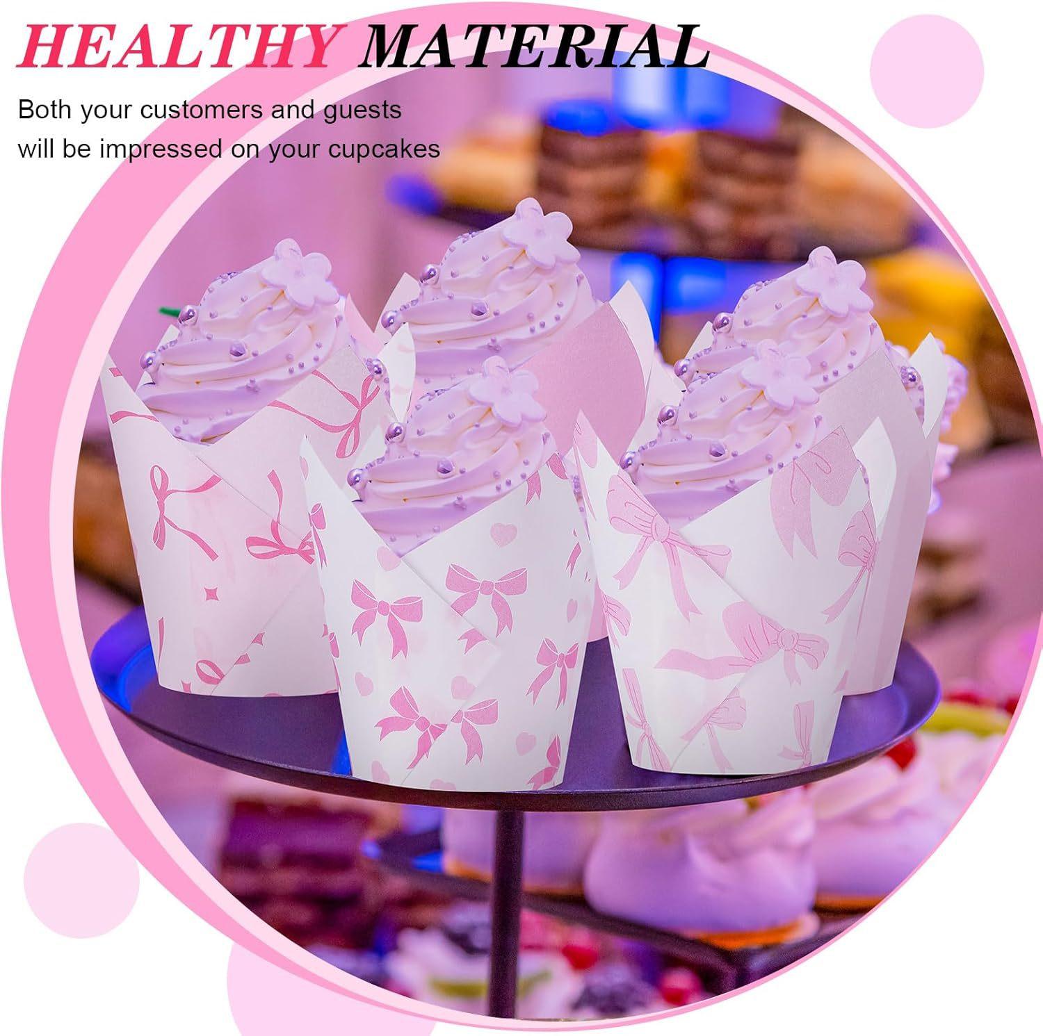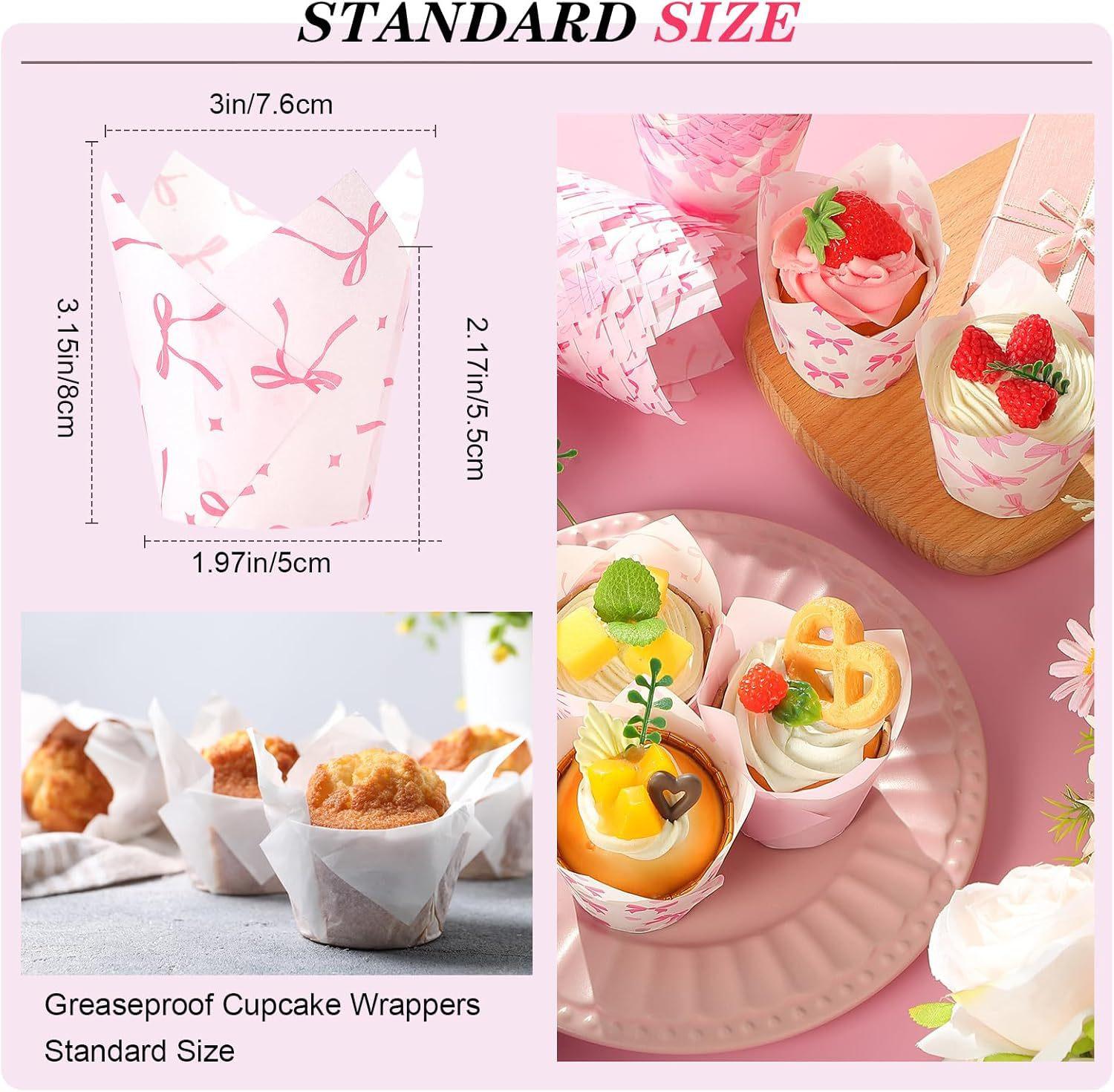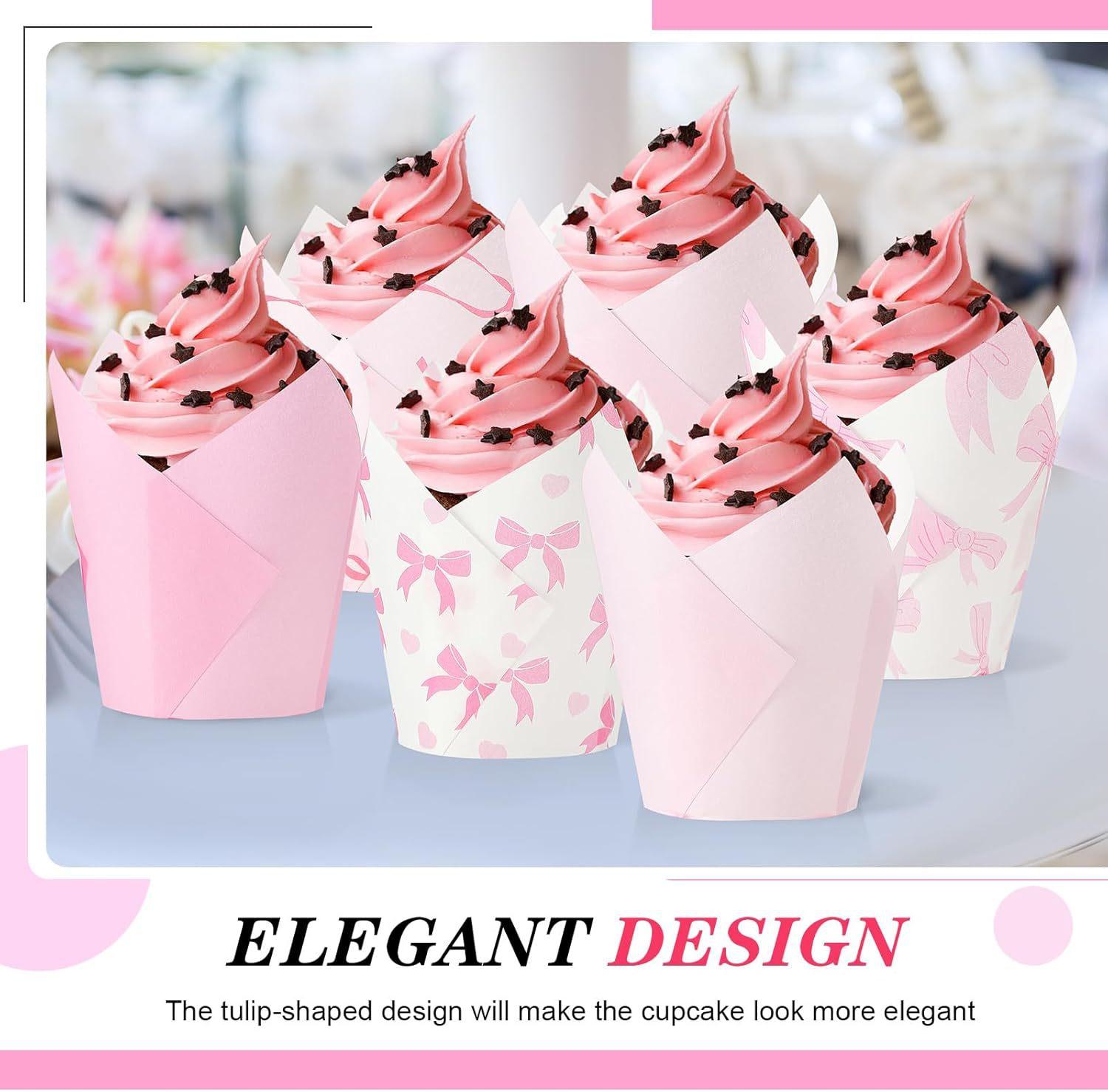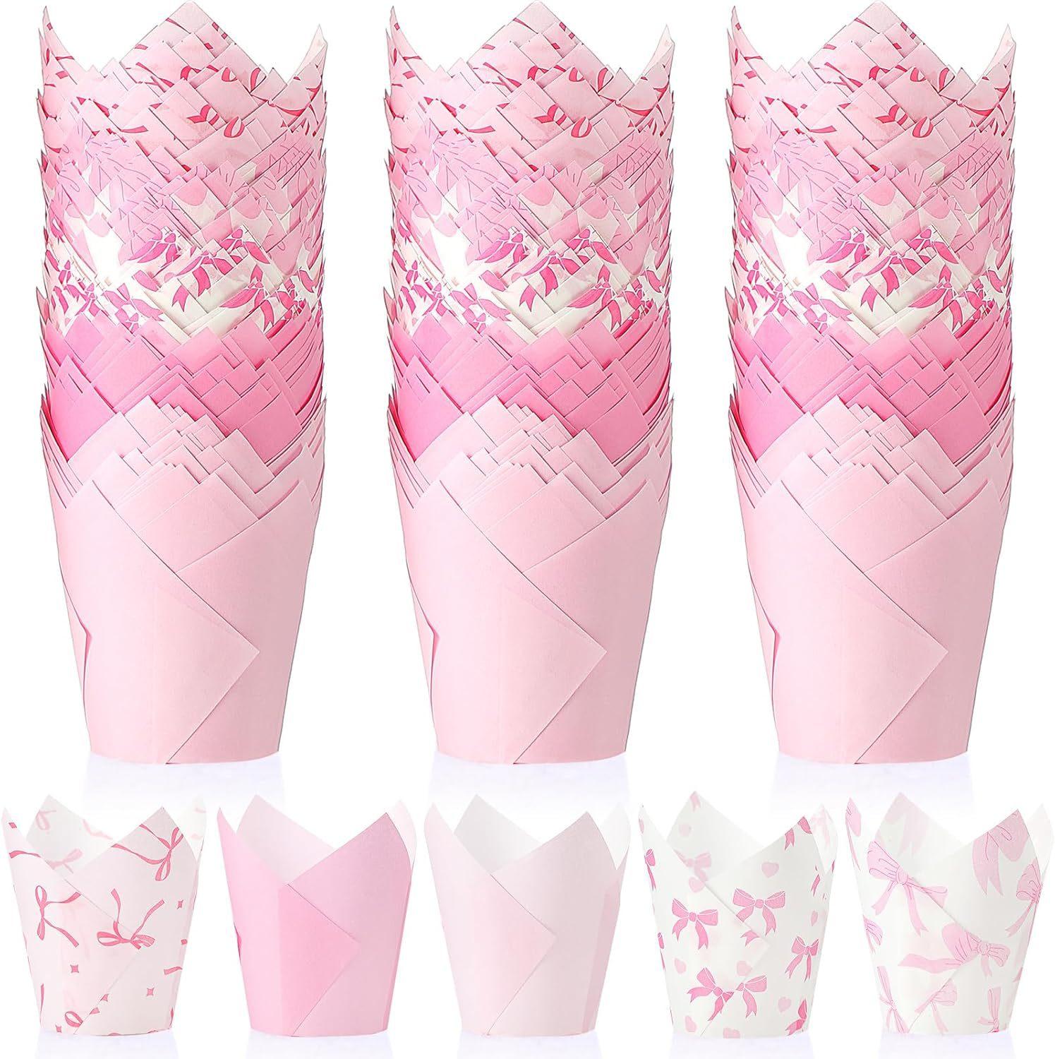 Copa para Pastel Tulipán con Lazo Transfronterizo Boda Vacaciones Copa para Pastel de Hornear a Prueba de Aceite Rosa