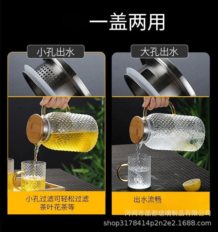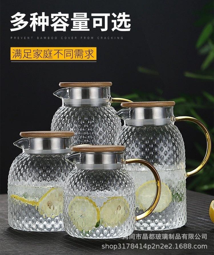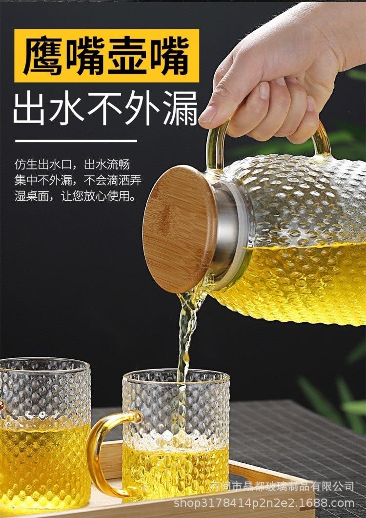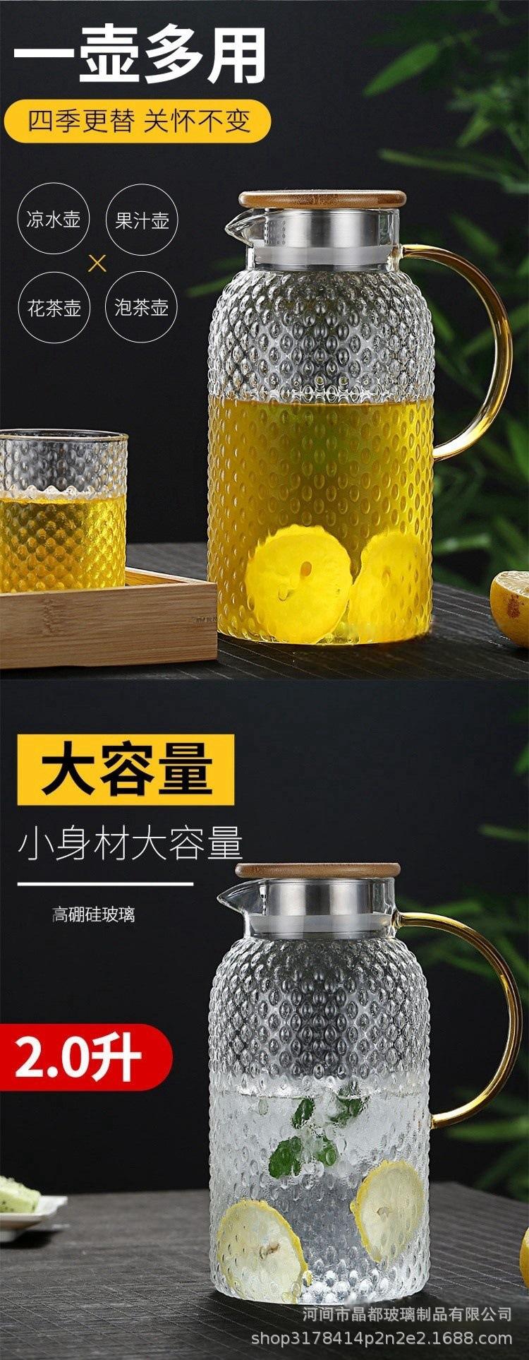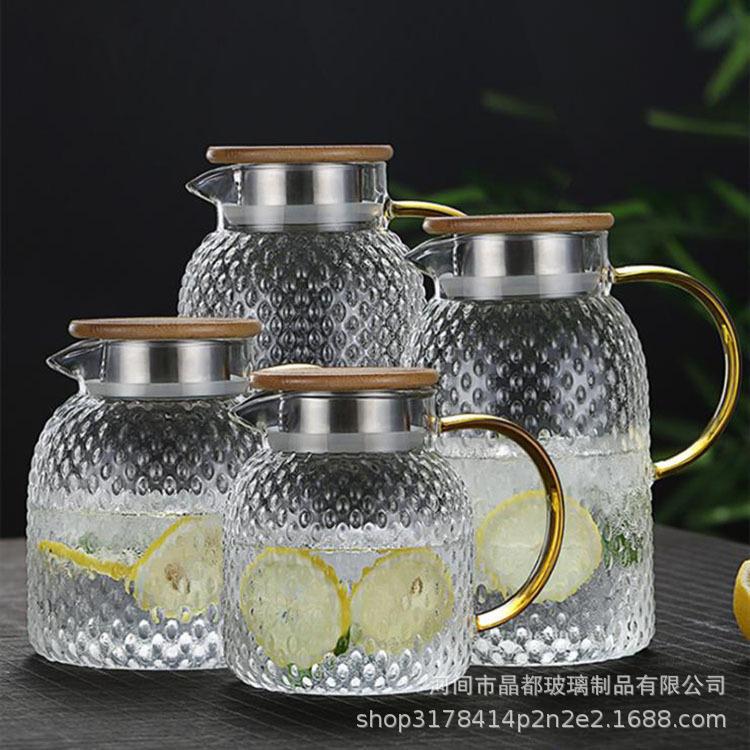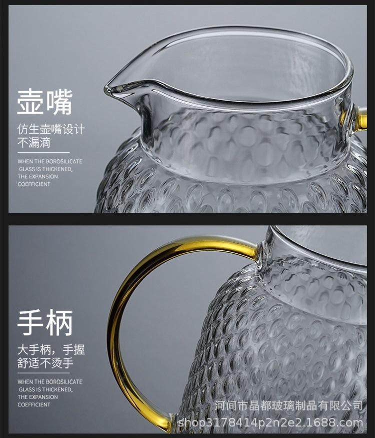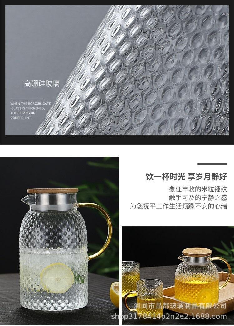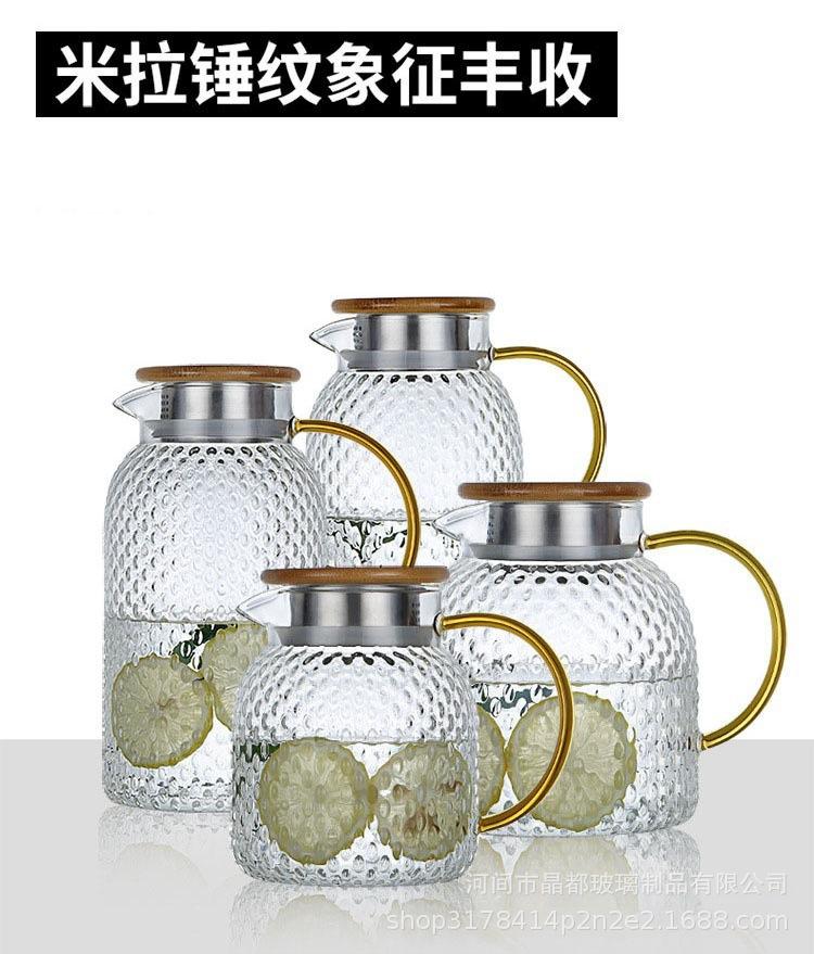 Hervidor de Vidrio de Borosilicato Alto con Asa, Patrón Martillado, Resistencia a Altas Temperaturas, Gran Capacidad, Hervidor de Agua Fría Hervida Doméstico Simple