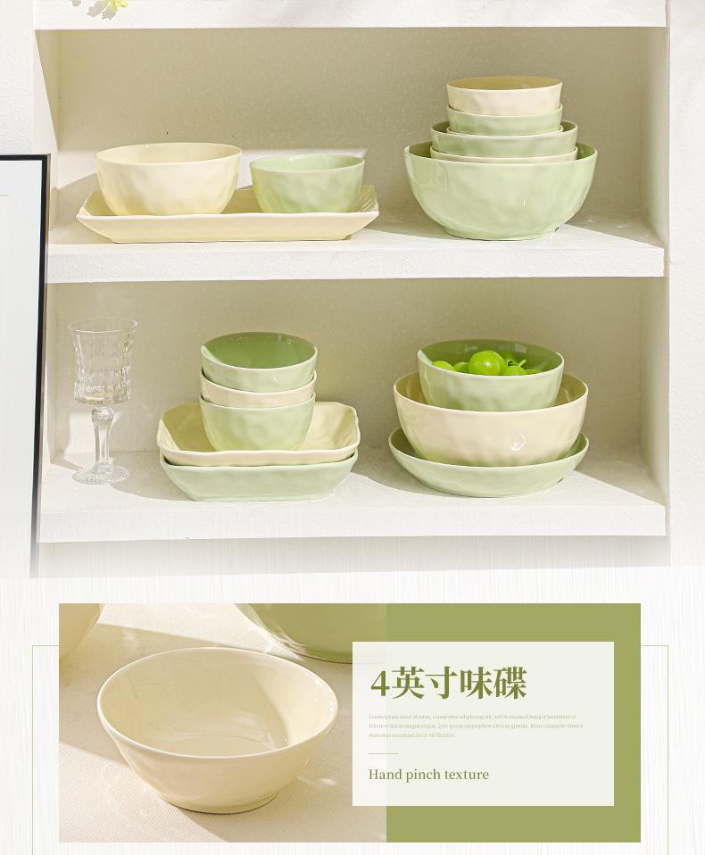 4-inch Sauce Dish - Milk White, 4-inch Sauce Dish - Milk Green, 4.75 inch Dinner Bowl-Milk White, 4.75 inch Di...