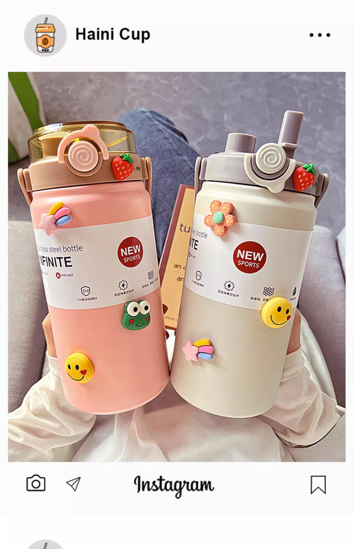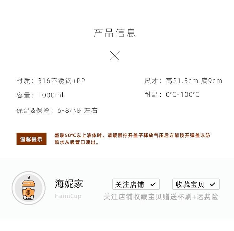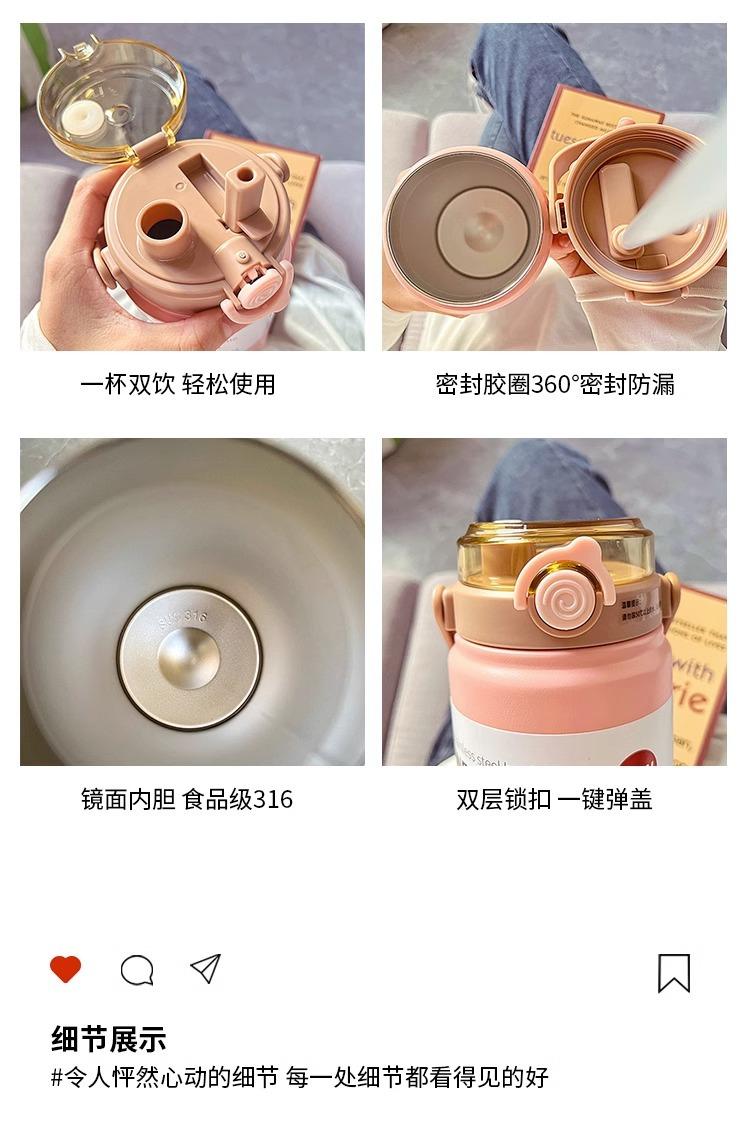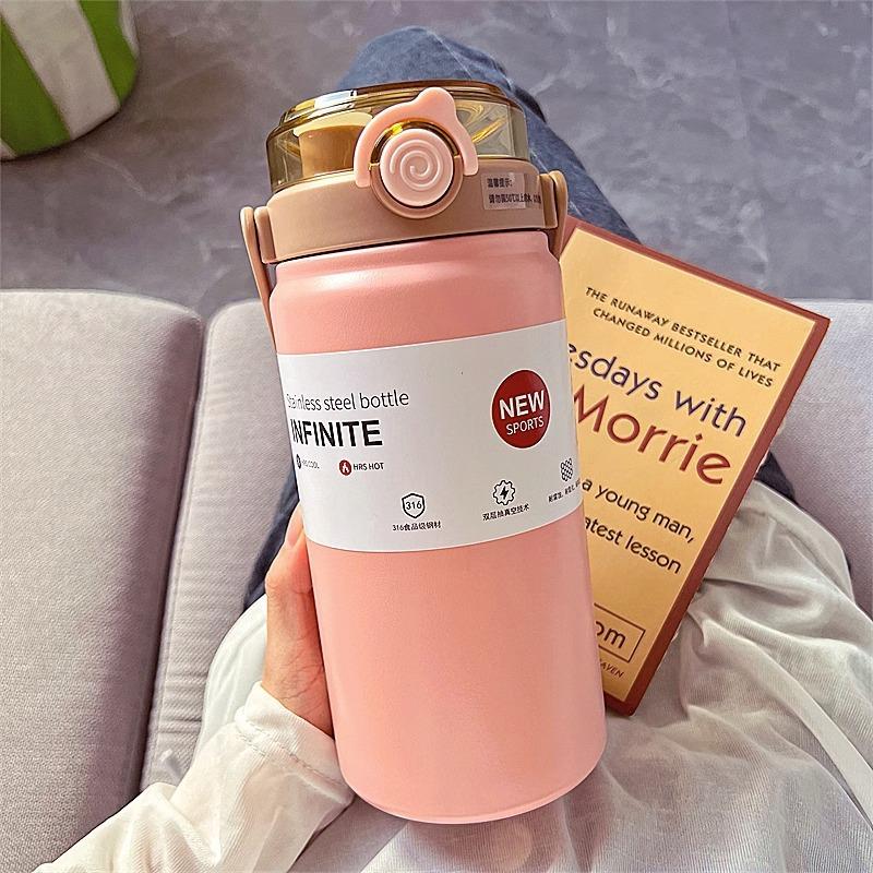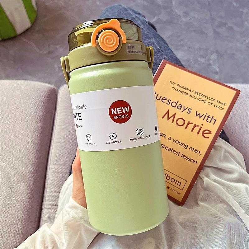 Termo de Gran Capacidad para Hombres y Mujeres Vaso Deportivo para Agua 316 Grado Alimenticio Vaso con Popote Portátil para Estudiantes Termo Hervidor de Doble Bebida