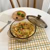 Tazón Hogar Nuevo Tazón Grande de Vidrio Tazón para Fideos Instantáneos con Tapa Individual Apto para Microondas Tazón para Sopa de Doble Asa Tazón para Ensalada