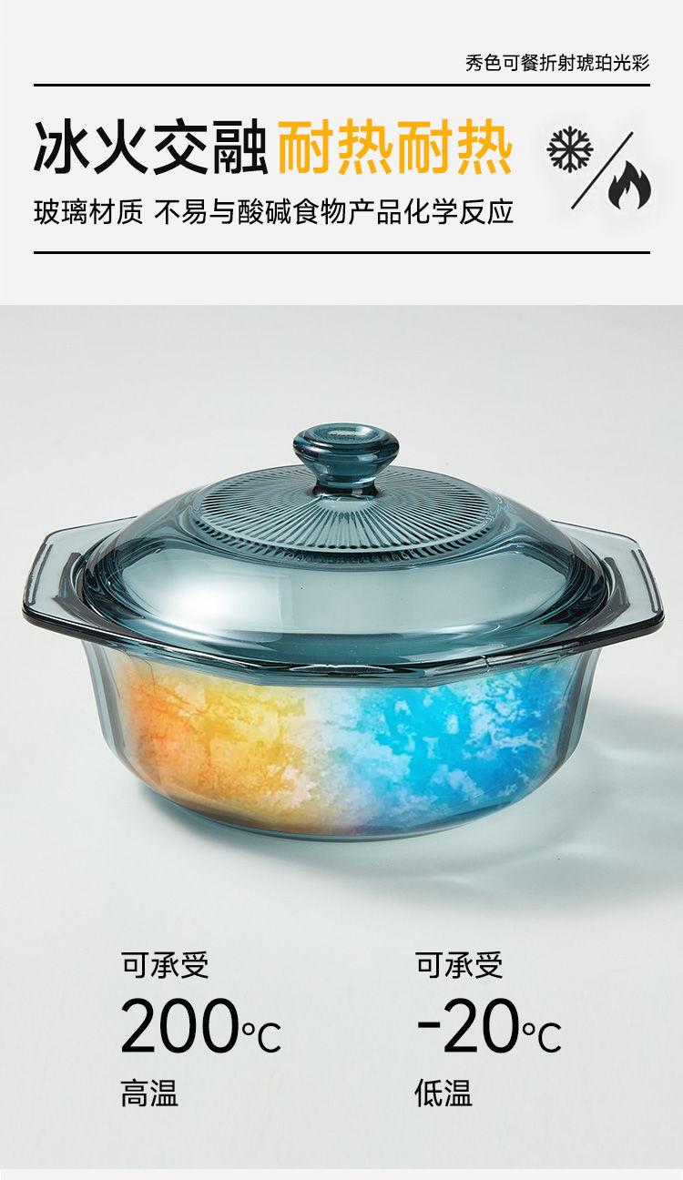 【Thickened】Dark Green Double-eared with Lid【High Borosilicate Glass/Microwaveable】