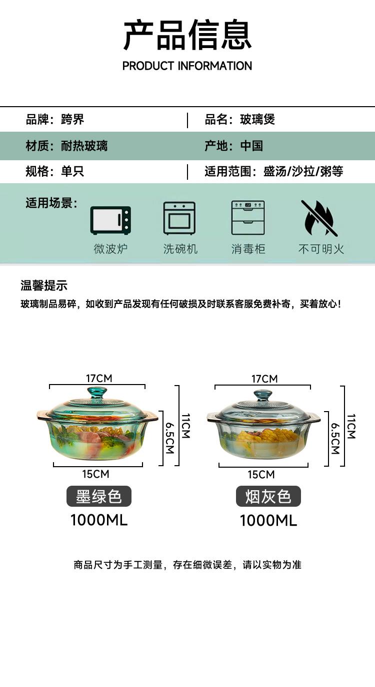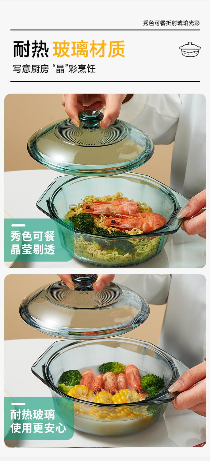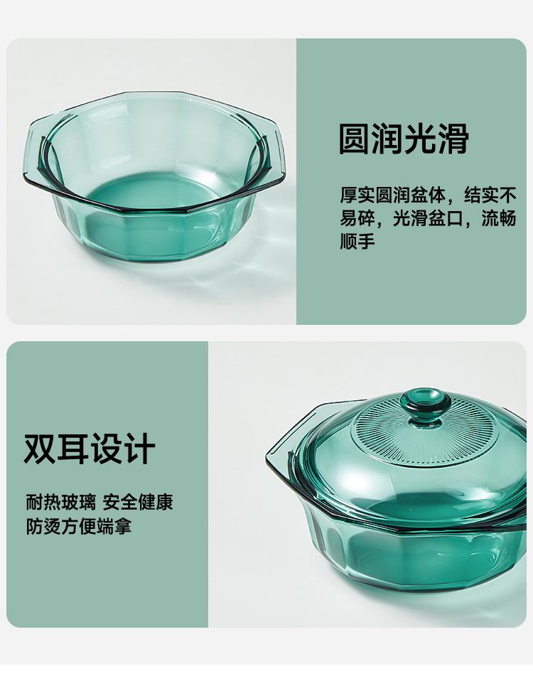 Dark green Double-eared with lid [High borosilicate glass/Microwave safe], 【Thickened】Dark Green Double-eare...