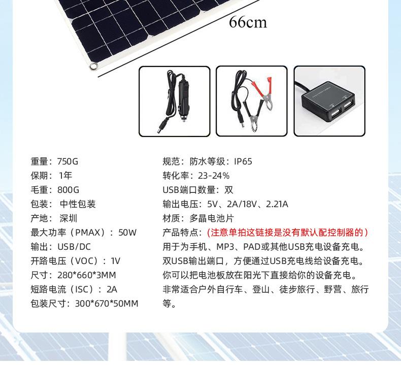 Compra Panel solar de 50W USB dual Controlador regulador de panel solar Carga de luz para coche yate RV al por mayor en Joom.pro