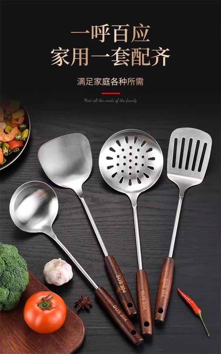 【Wooden handle spatula】, 【Wooden Handle Ladle】, 【Stir-fry spatula + Soup ladle】