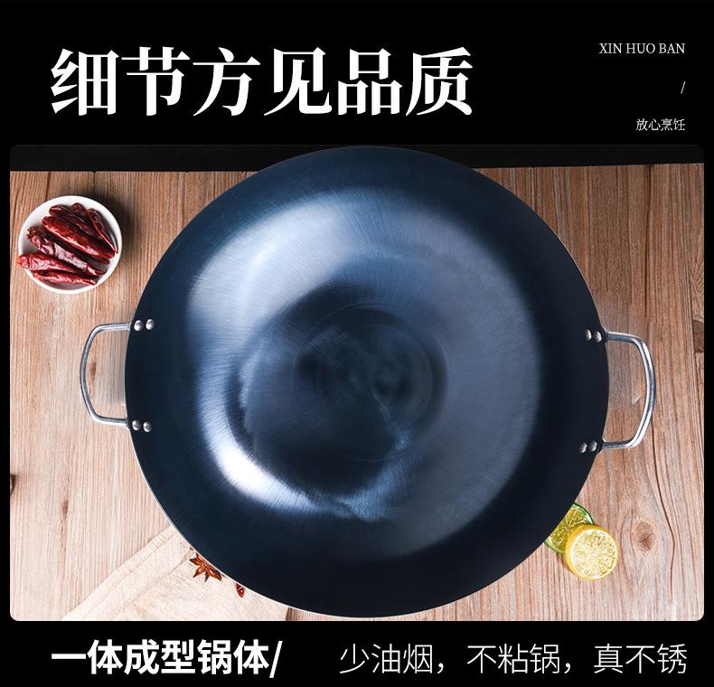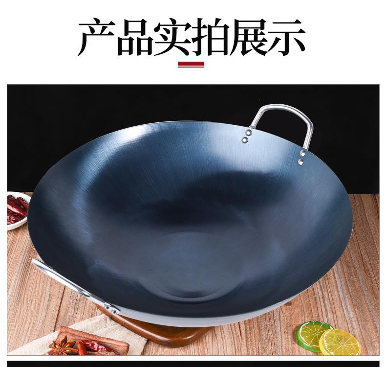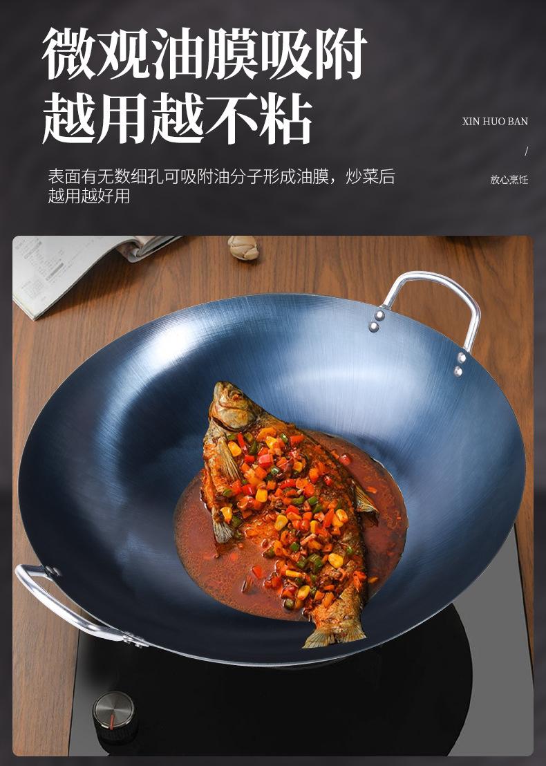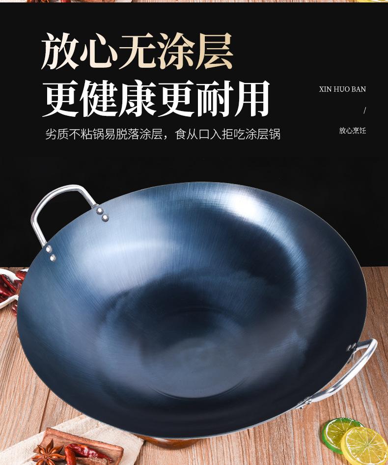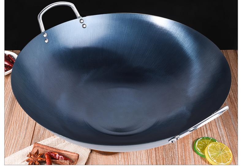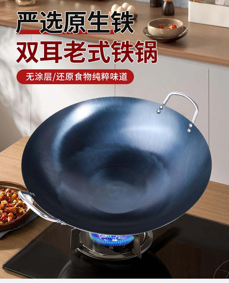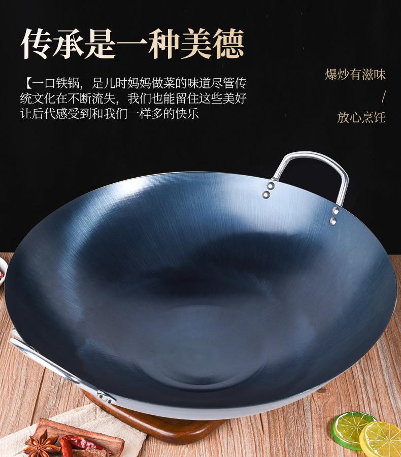 Wok Doméstico a la Antigua Estufa de Gas Estufa de Leña Wok de Fondo Redondo Olla Grande de Hierro Comercial de Doble Asa Sartén Antiadherente sin Recubrimiento