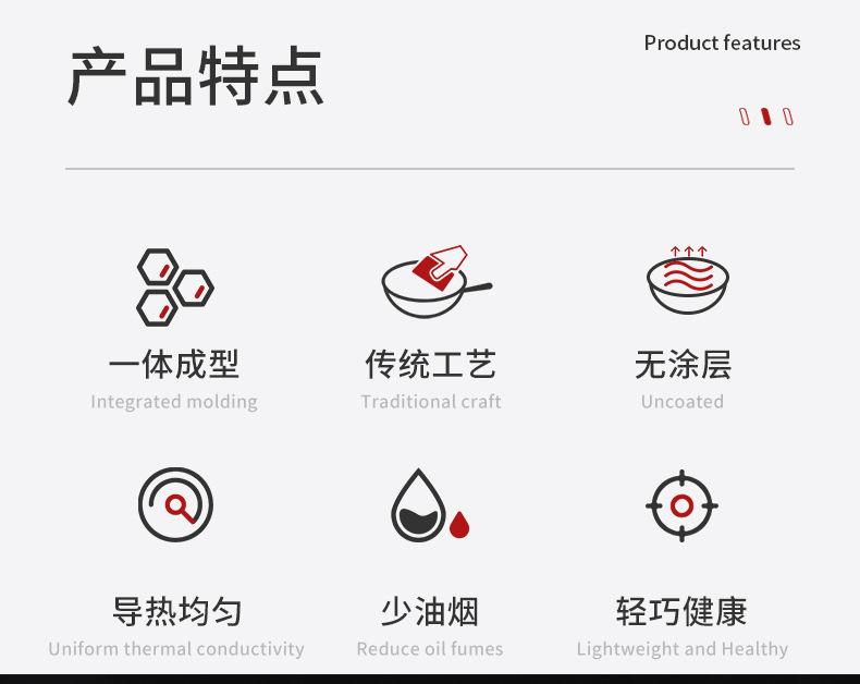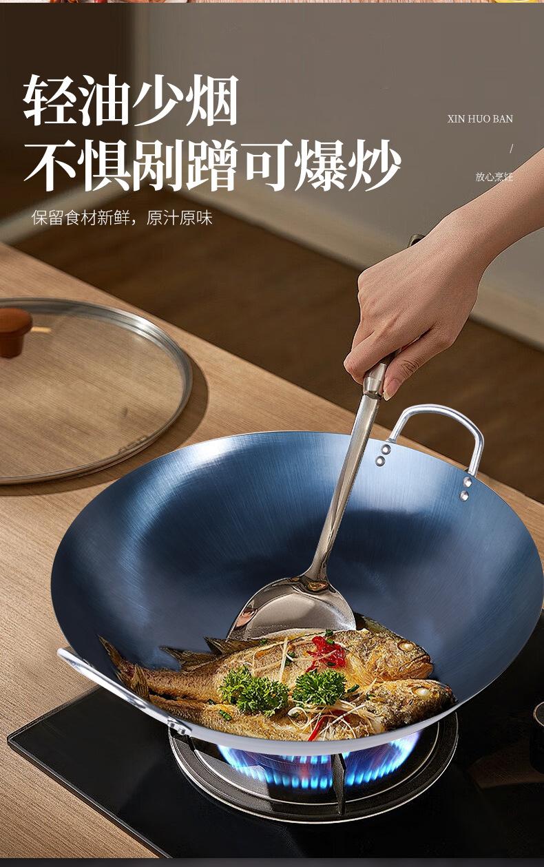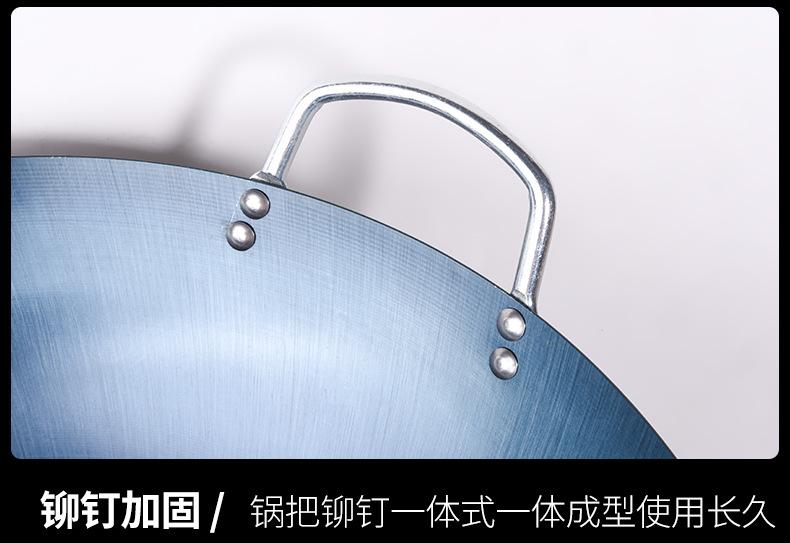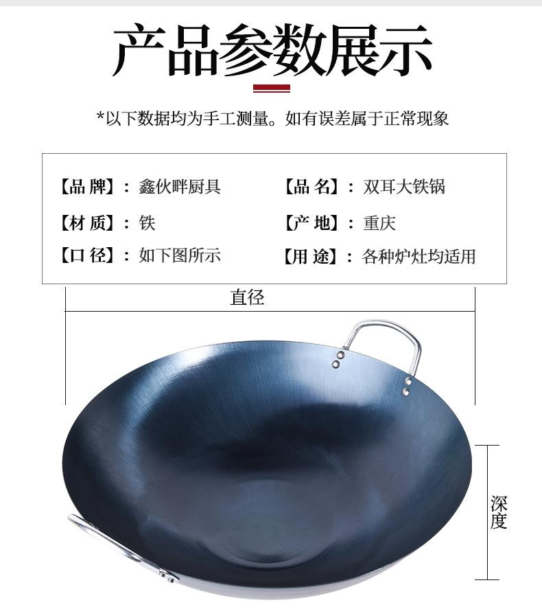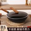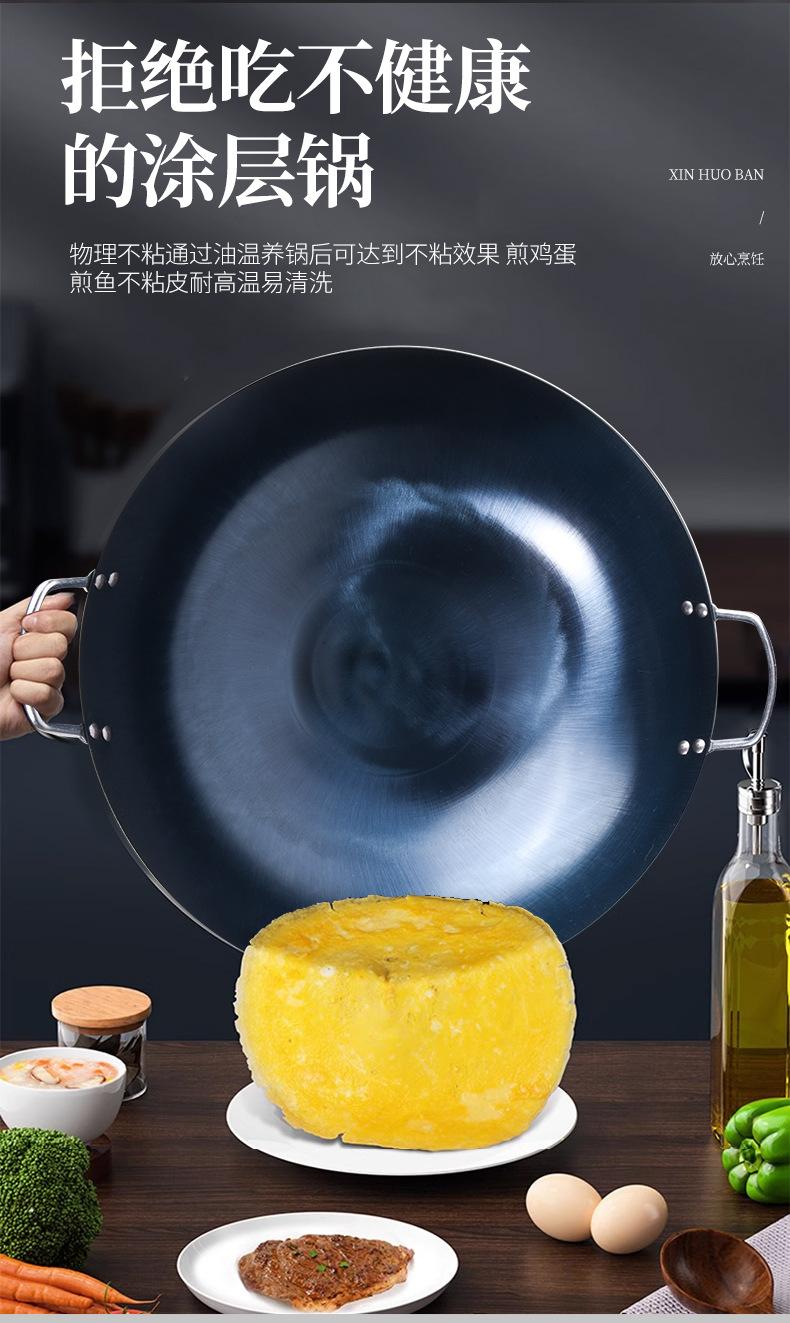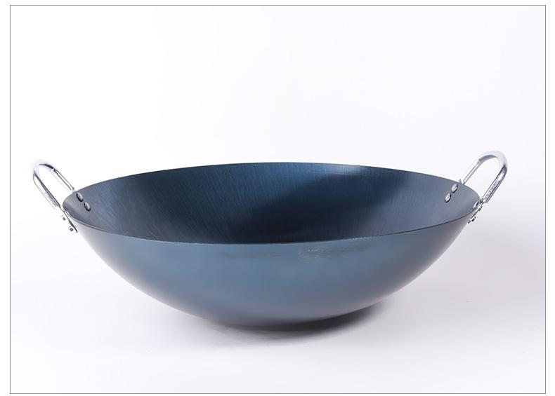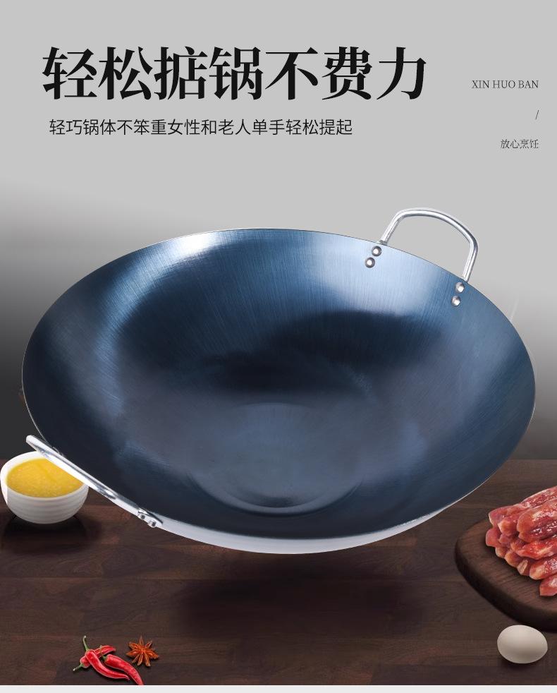 Wok Doméstico a la Antigua Estufa de Gas Estufa de Leña Wok de Fondo Redondo Olla Grande de Hierro Comercial de Doble Asa Sartén Antiadherente sin Recubrimiento