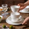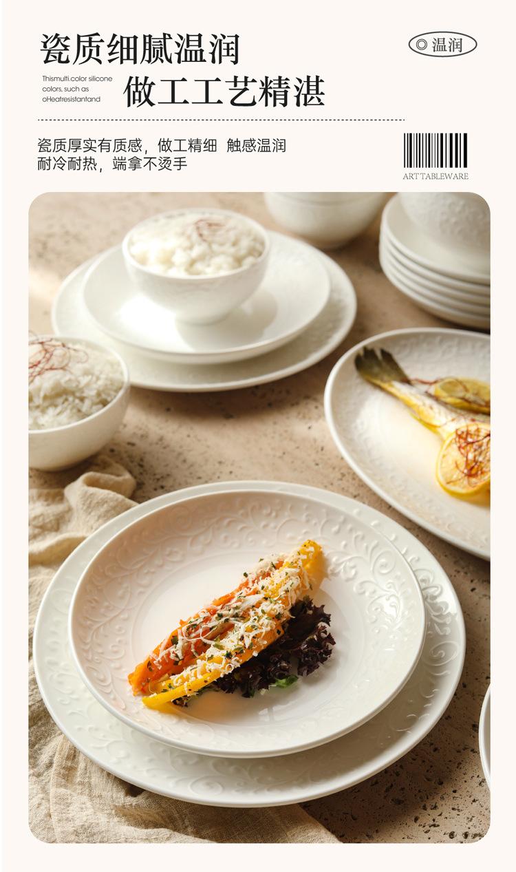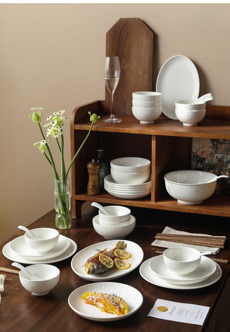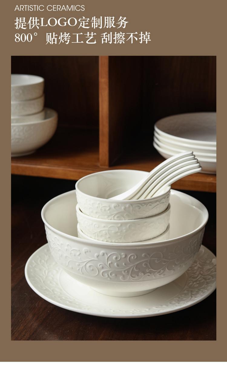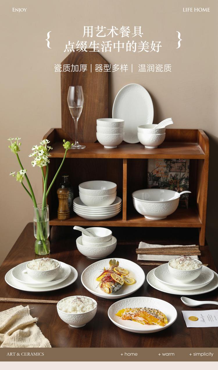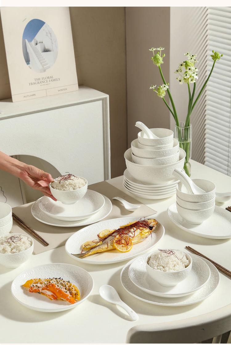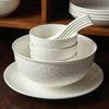 2025 Vajilla de Cerámica Blanca en Relieve Nueva Tazón para Arroz Plato para Pescado Tazón para Sopa Hogar Sencillo Juego de Combinación de Tazón y Plato