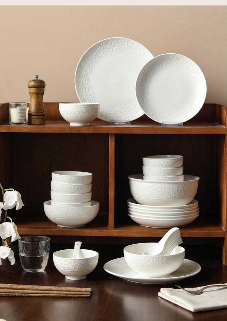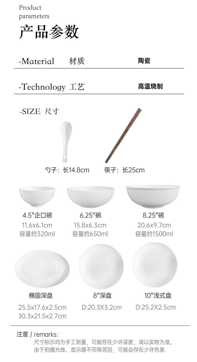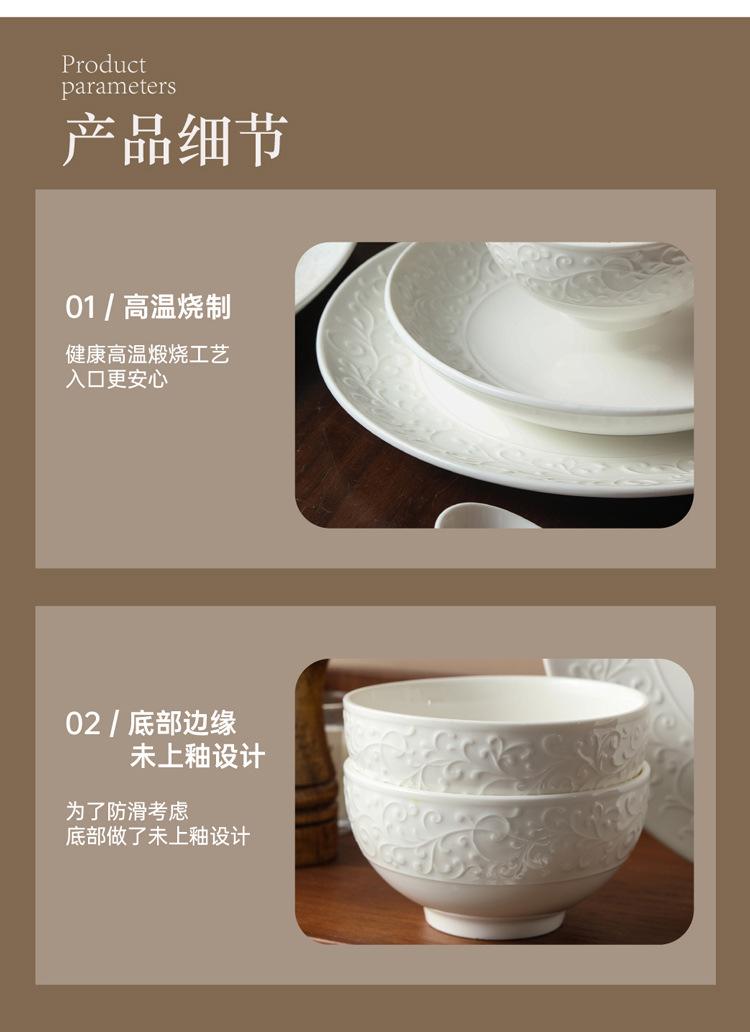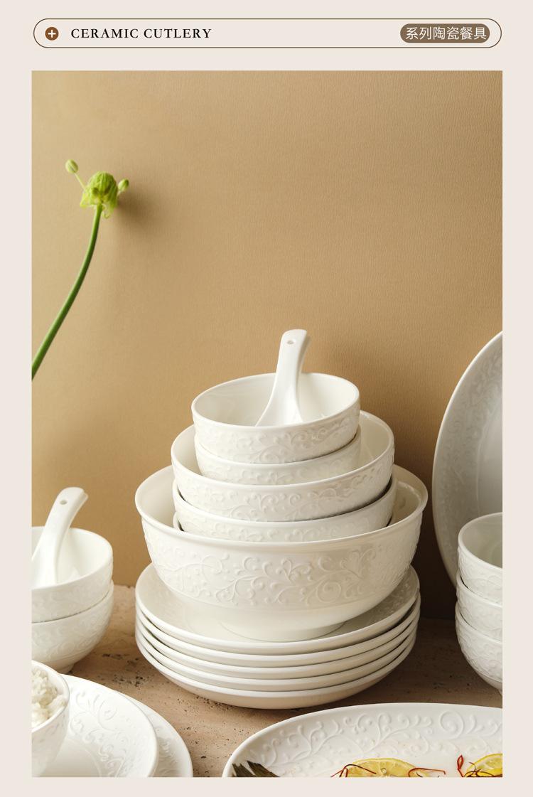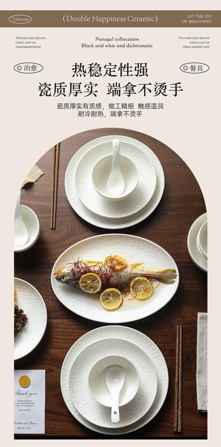 2025 Vajilla de Cerámica Blanca en Relieve Nueva Tazón para Arroz Plato para Pescado Tazón para Sopa Hogar Sencillo Juego de Combinación de Tazón y Plato