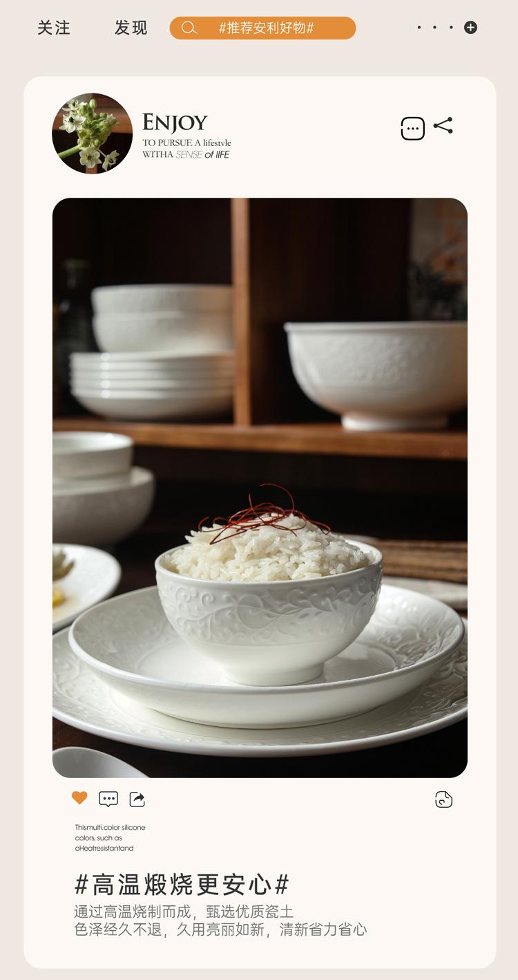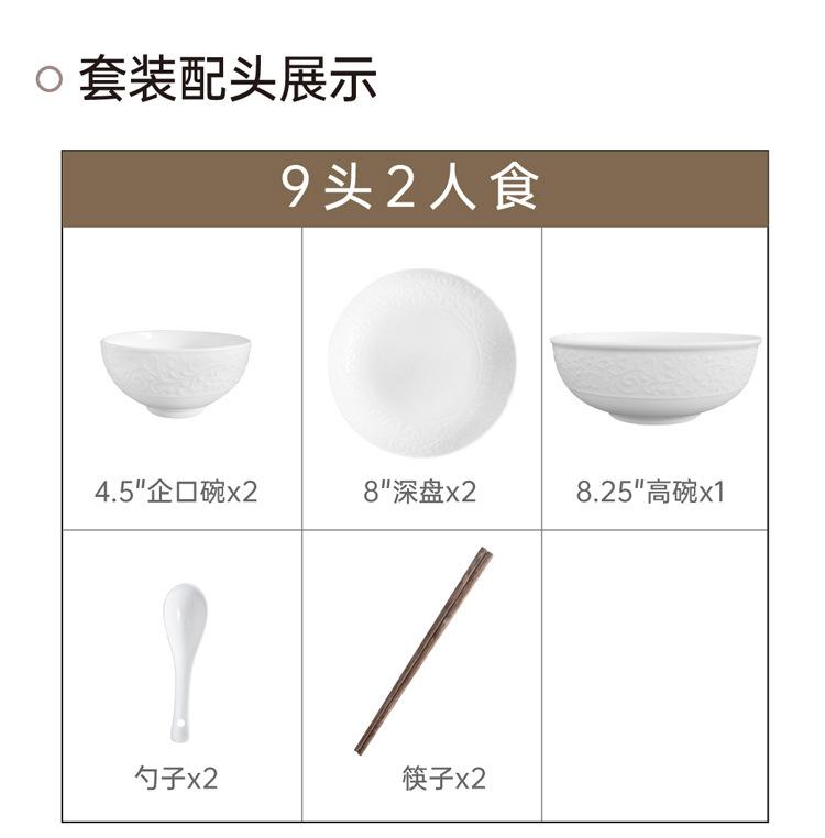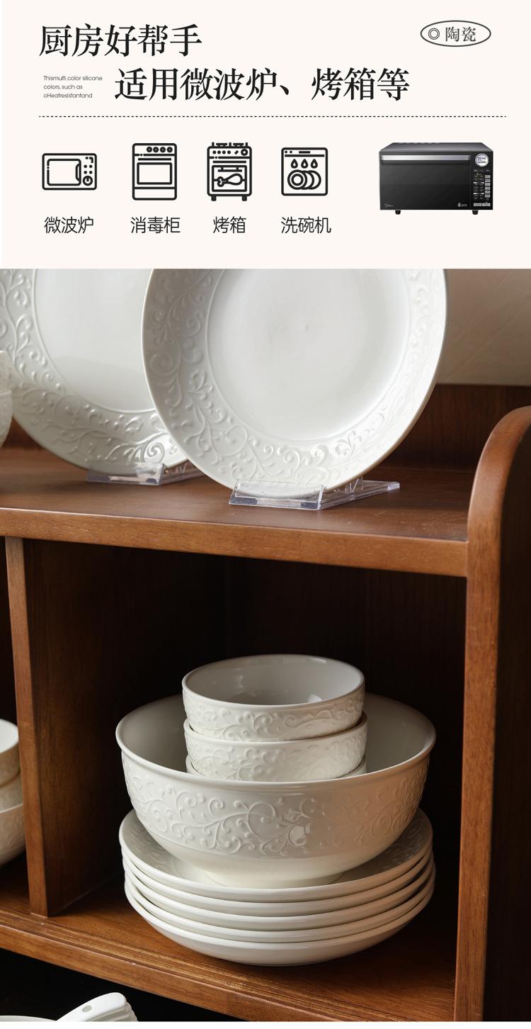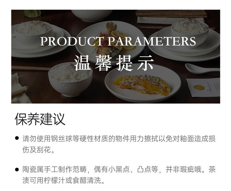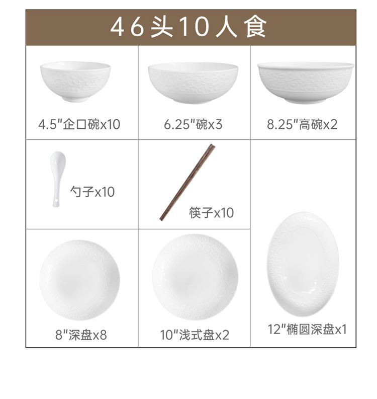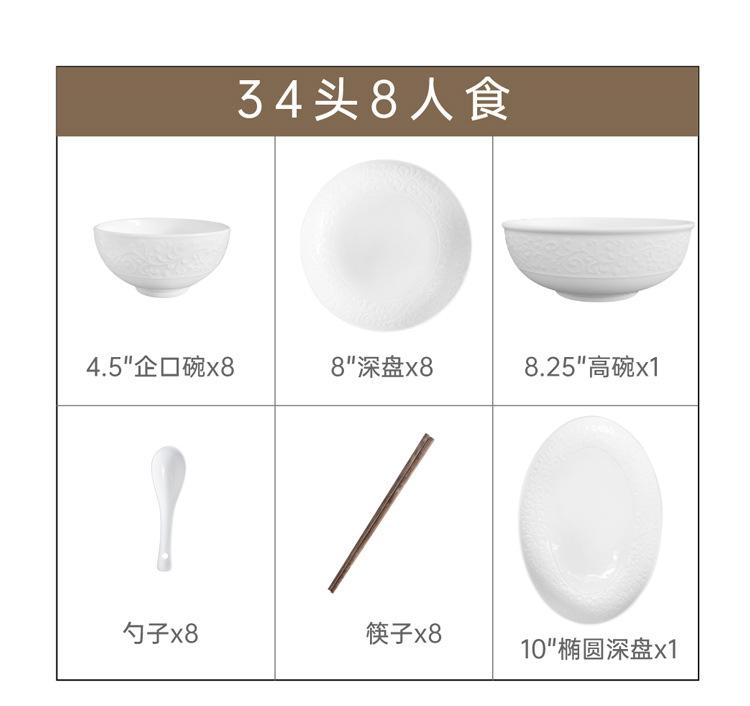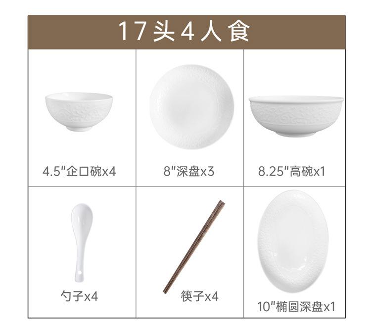 2025 Vajilla de Cerámica Blanca en Relieve Nueva Tazón para Arroz Plato para Pescado Tazón para Sopa Hogar Sencillo Juego de Combinación de Tazón y Plato