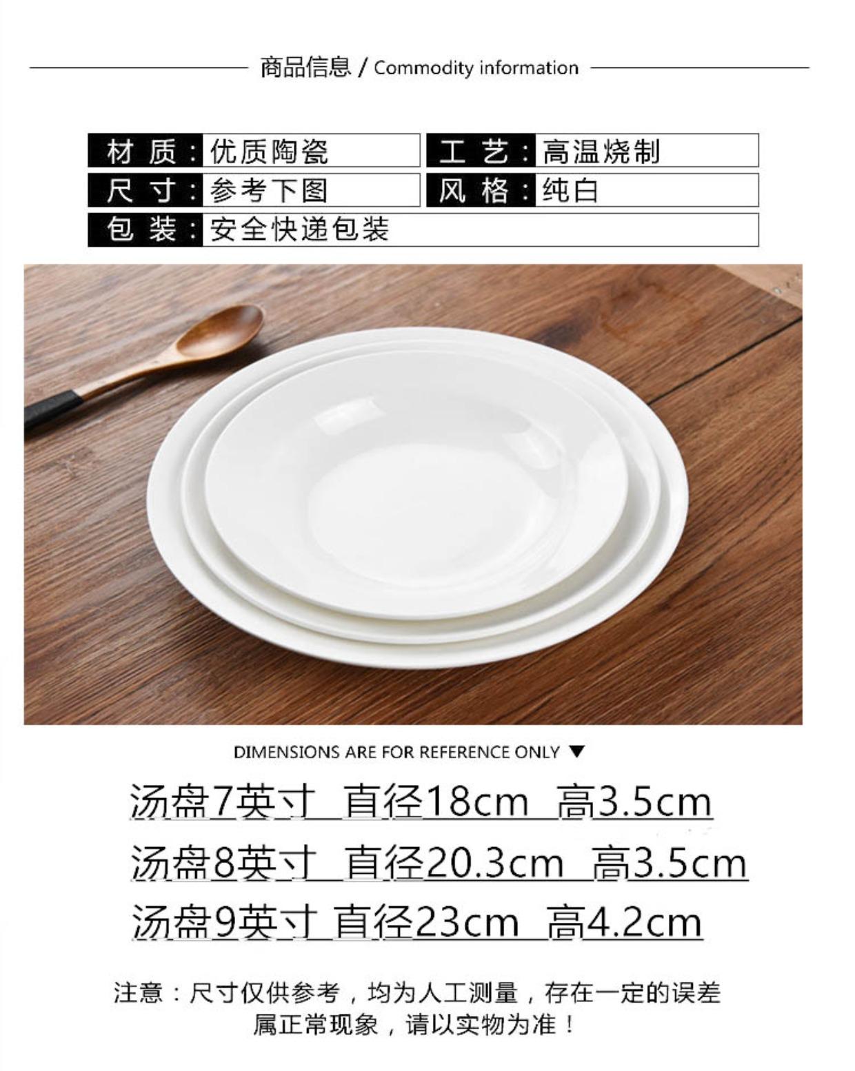 7inch soup plate-18cm, 8inch soup plate-20.3cm, 9inch soup plate-23cm