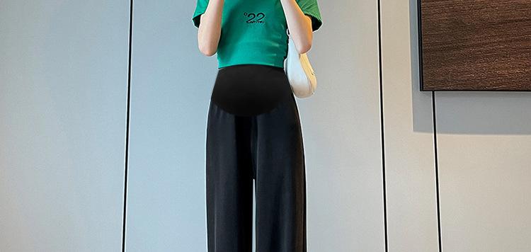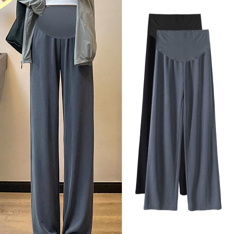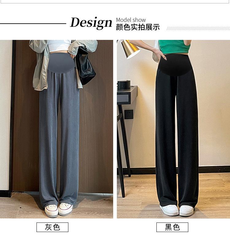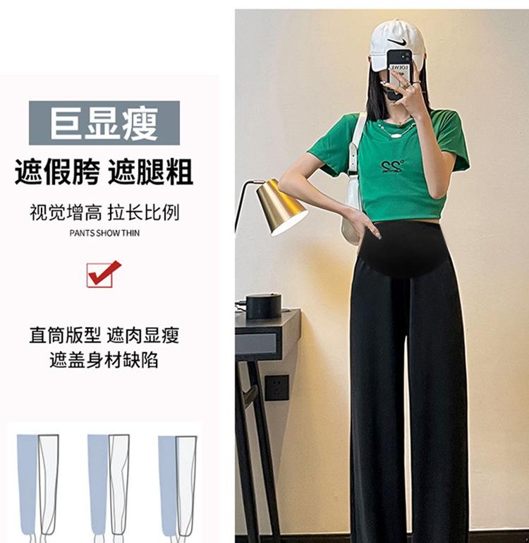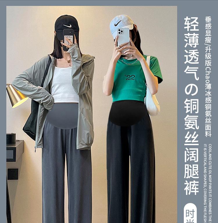 Pantalones para Mujeres Embarazadas 2023 Verano Nueva Moda Pantalones de Pierna Ancha de Seda Helada Drapeados Ajustados Ropa Exterior Pantalones Antimosquitos Pantalones para el Vientre de Mujeres Embarazadas