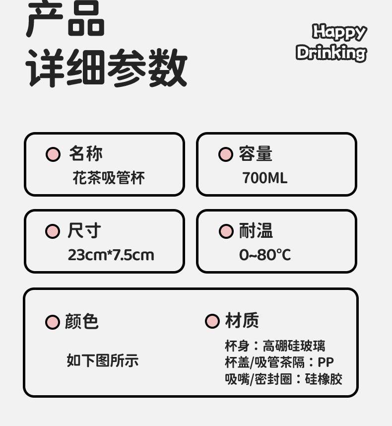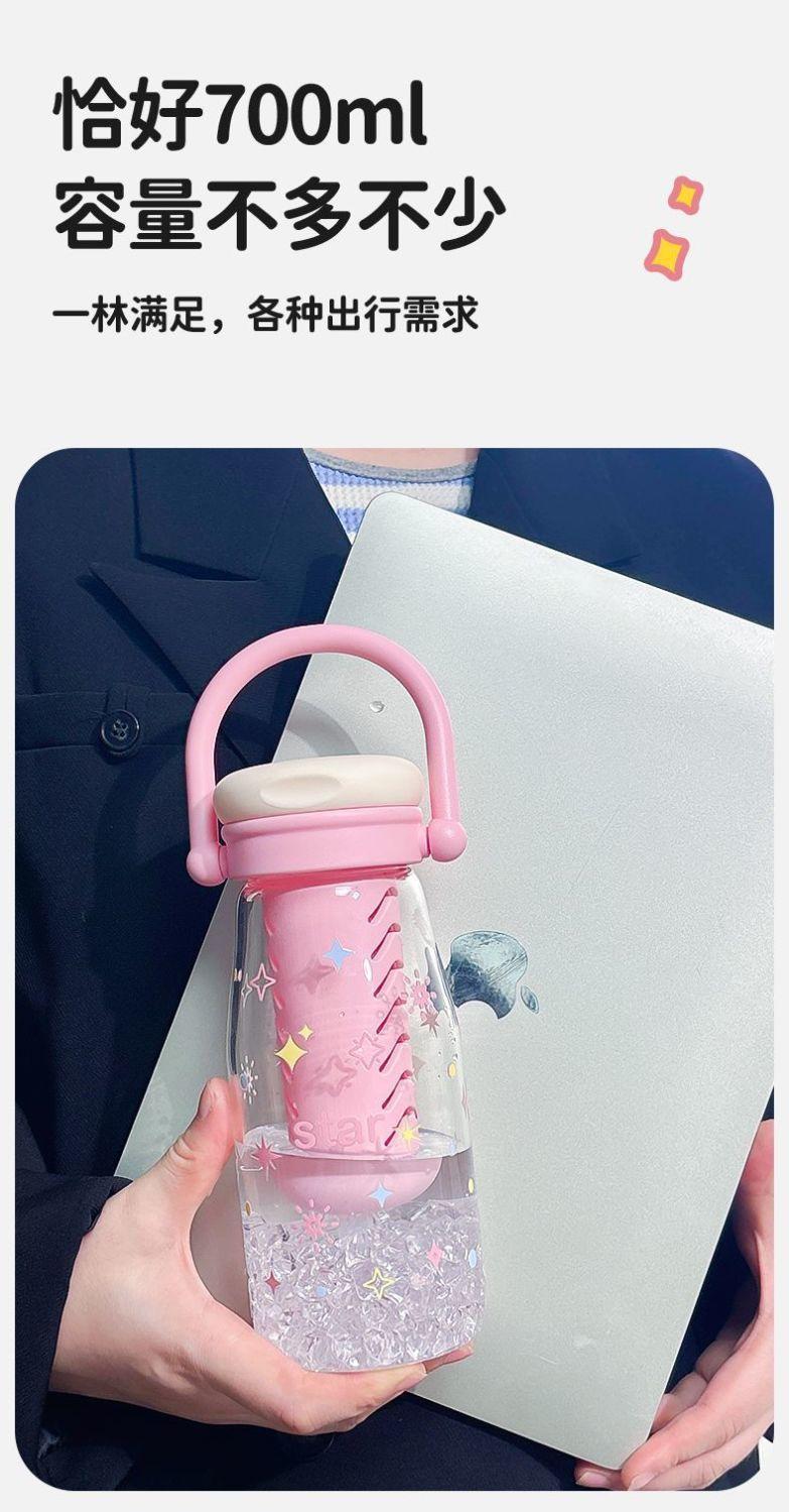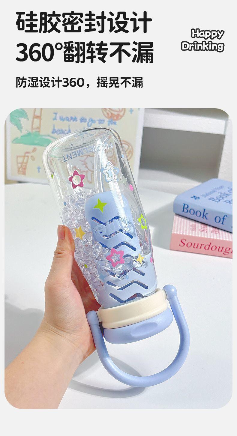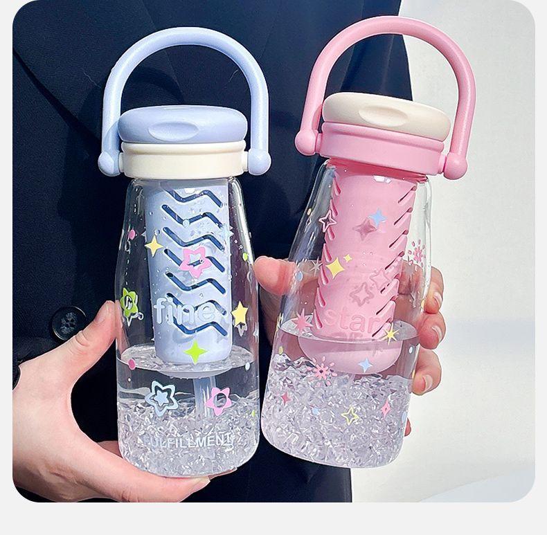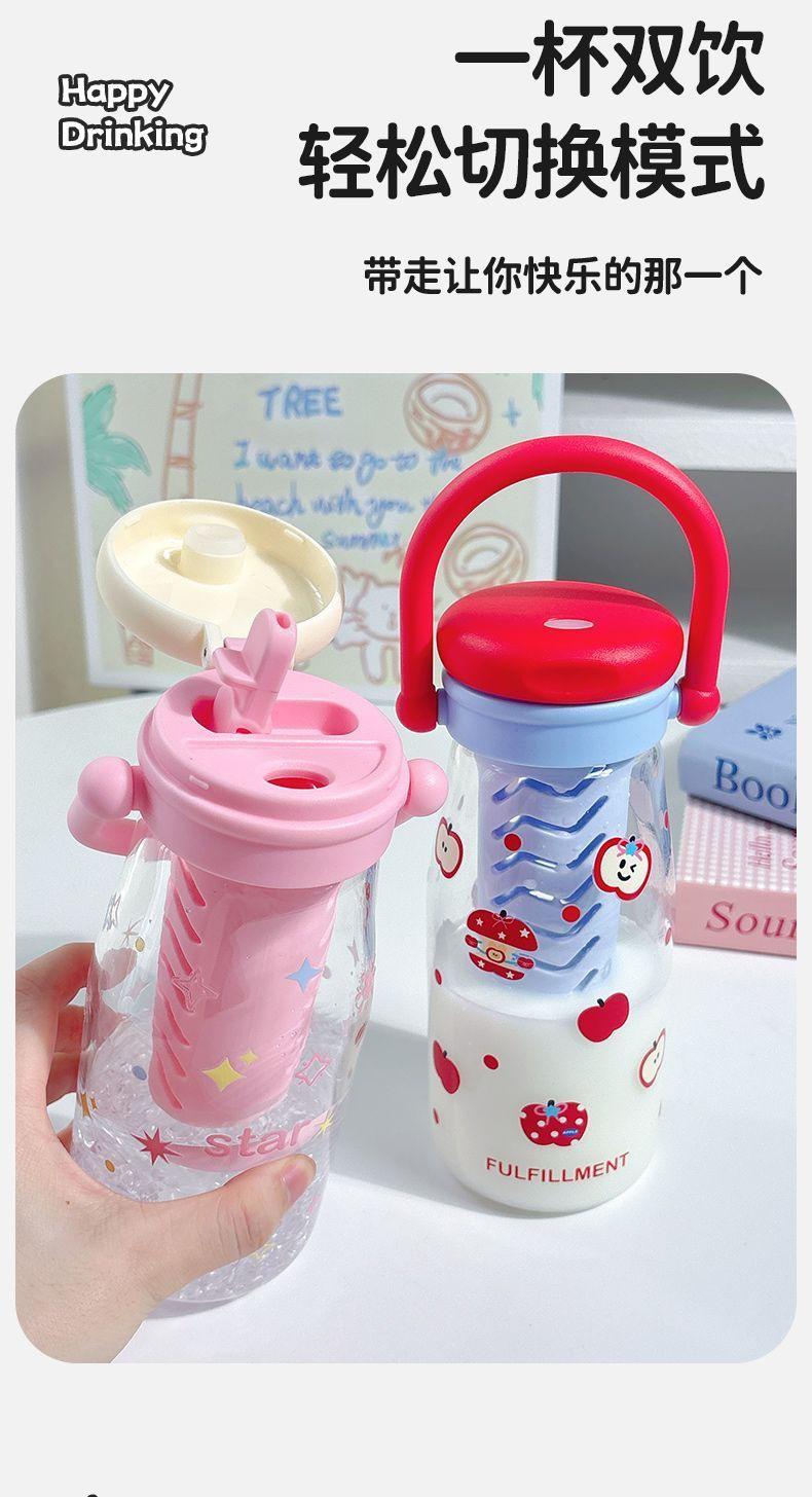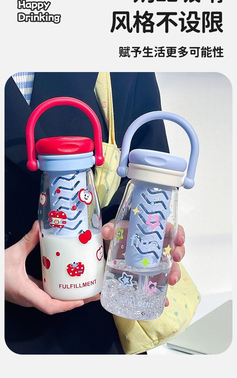 Vaso de Agua Vaso de Vidrio Gran Capacidad Vaso con Pajita con Asa ins Chica Alto Valor Hogar Lindo Nicho Portátil