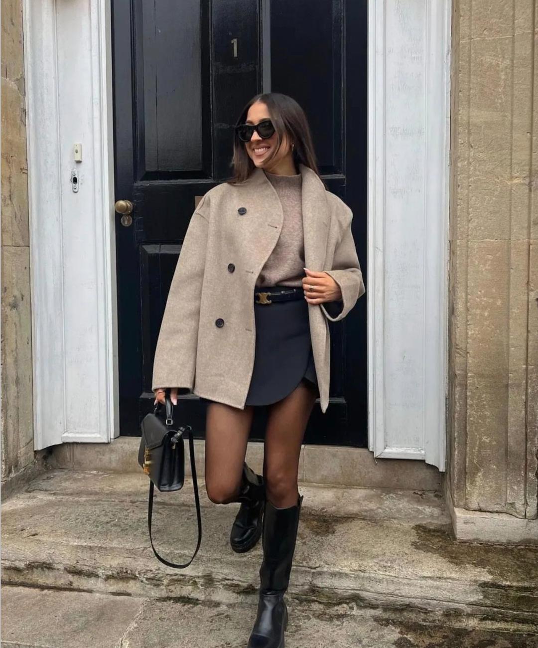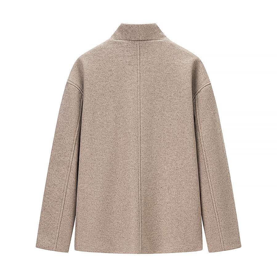 Abrigo de Lana de Color Sólido Cruzado Corto Europeo y Americano Outerwear Casual Temperamento Estilo Británico Versátil Top