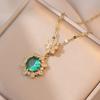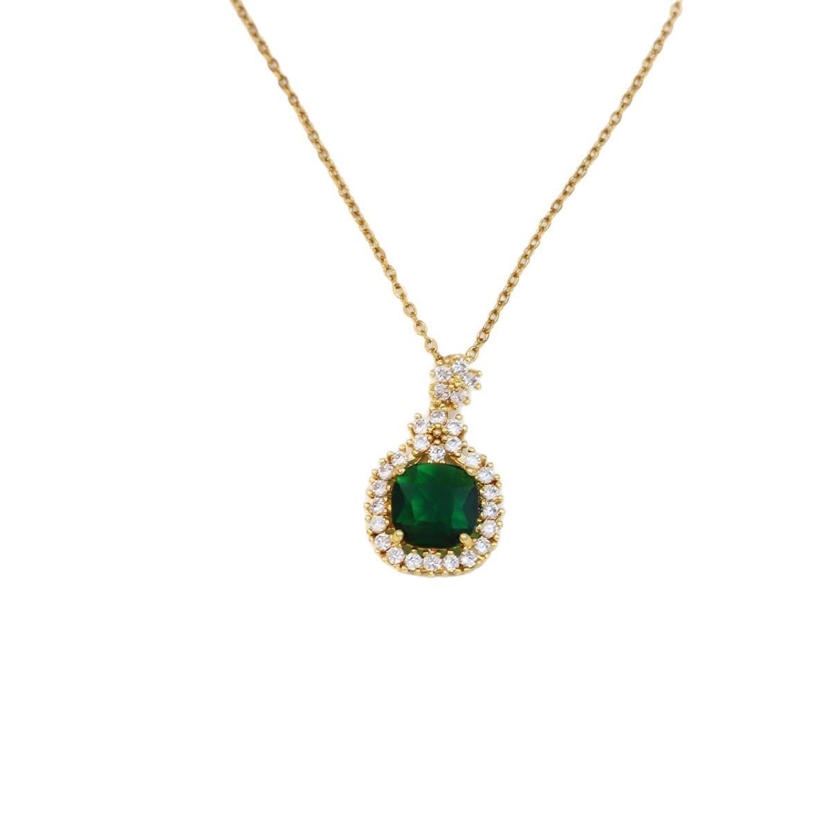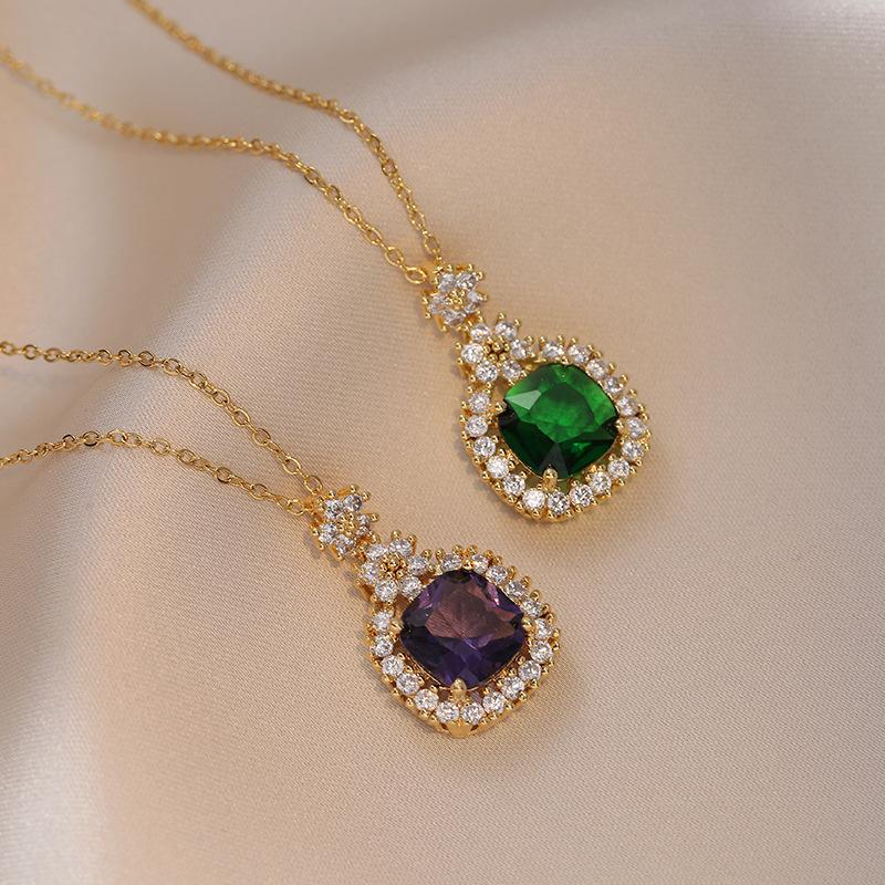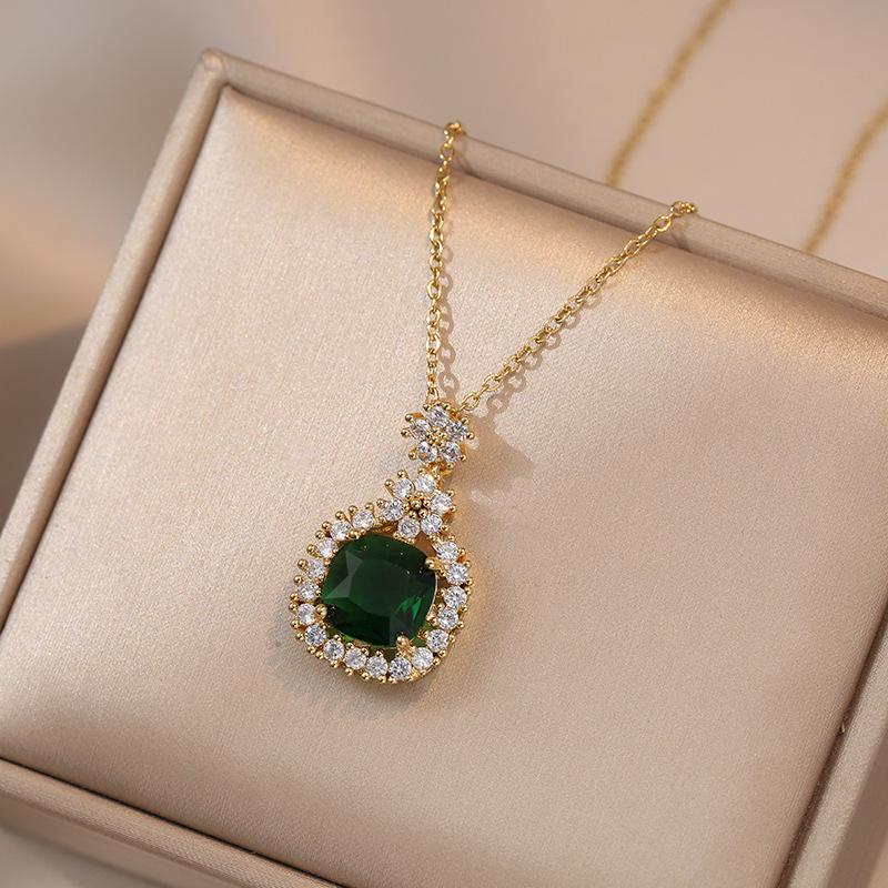 Collar para Mujer Zircón Esmeralda de Alta Gama Flor Nicho Moda Nuevo Diseño Colgante Temperamento Collar de Acero Titanio