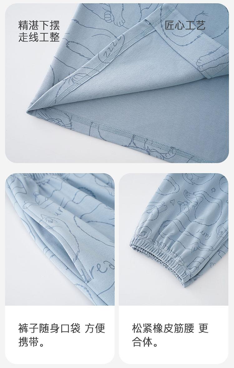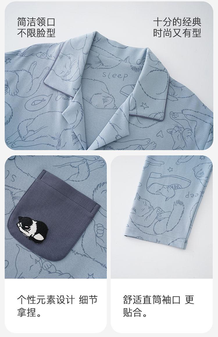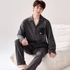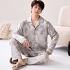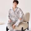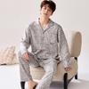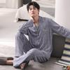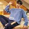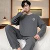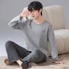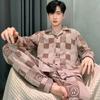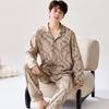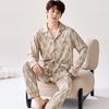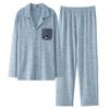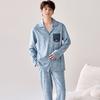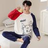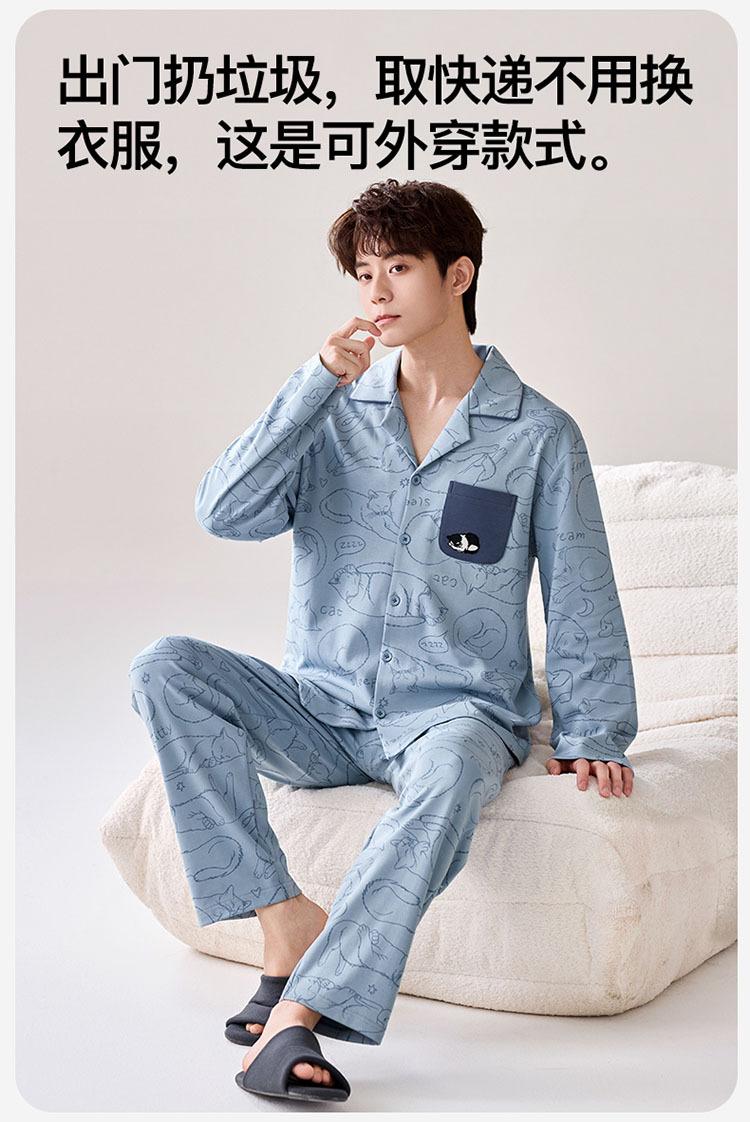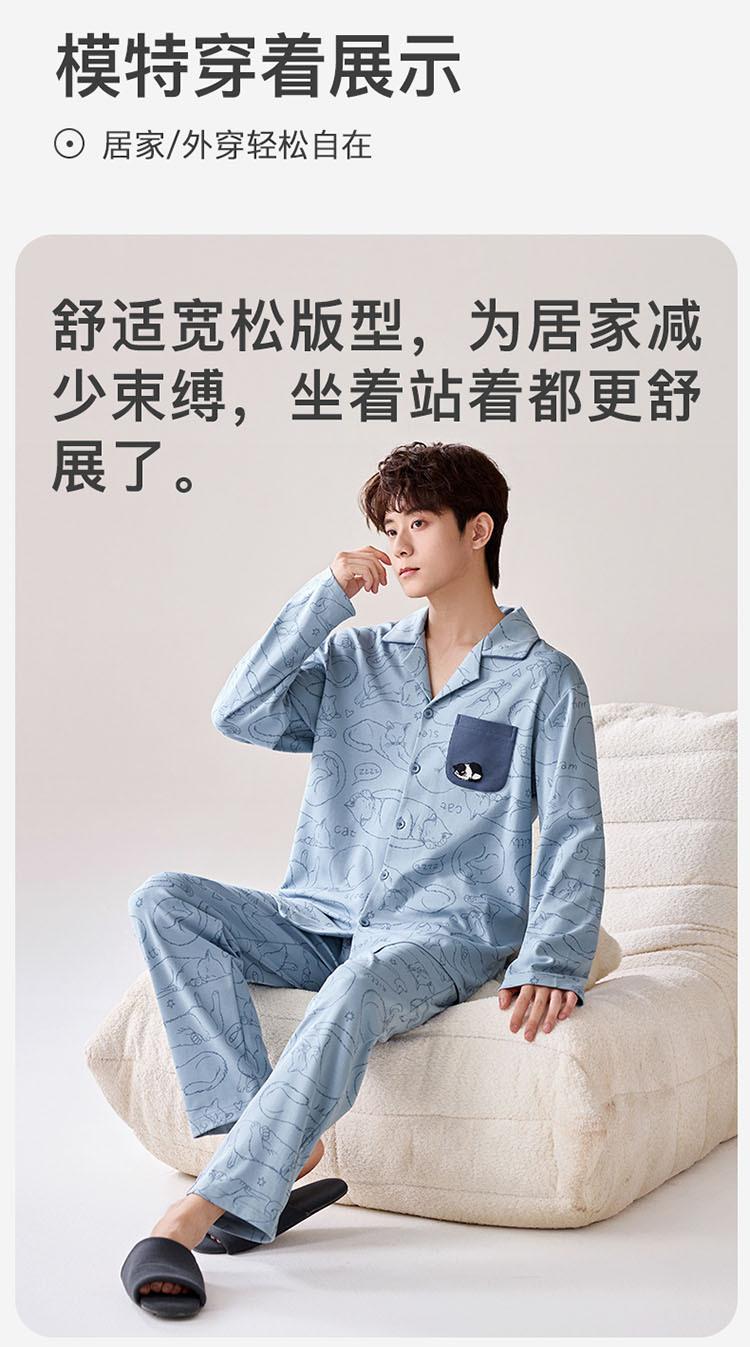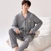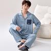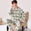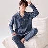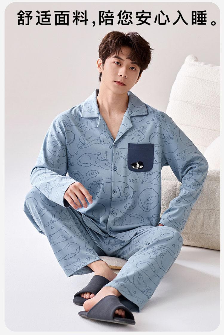 Pijama para Hombre Algodón Puro Primavera y Otoño Manga Larga Solapa Patrón de Dibujos Animados Adolescentes Otoño e Invierno Conjunto Casual para Estar en Casa