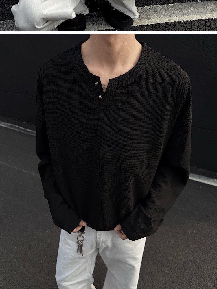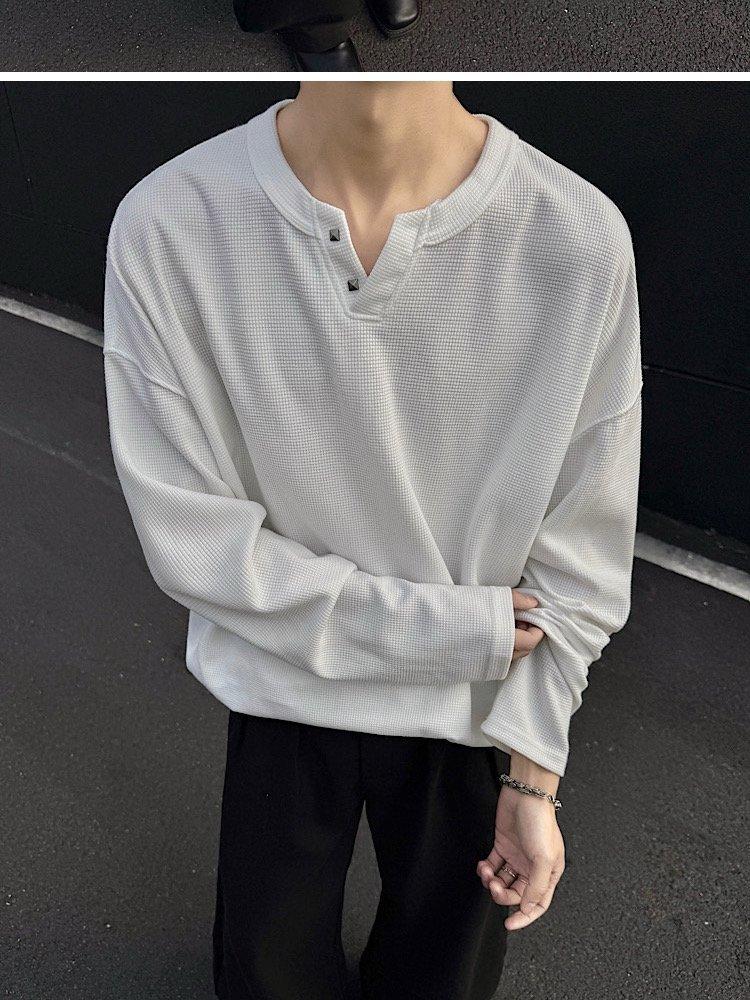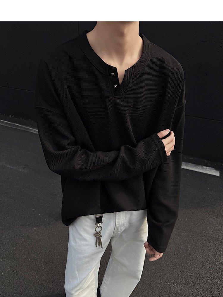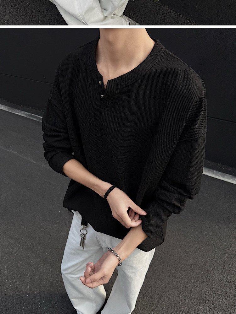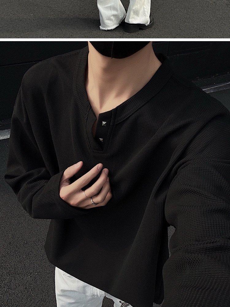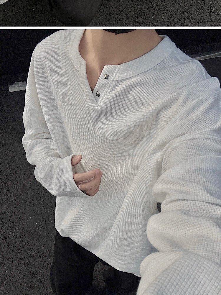 2025 Otoño Nuevo Americano Old Money Camiseta Base Cuello en V Suelta Texturizada Camiseta Sudadera Pareja Escote Pequeño Top