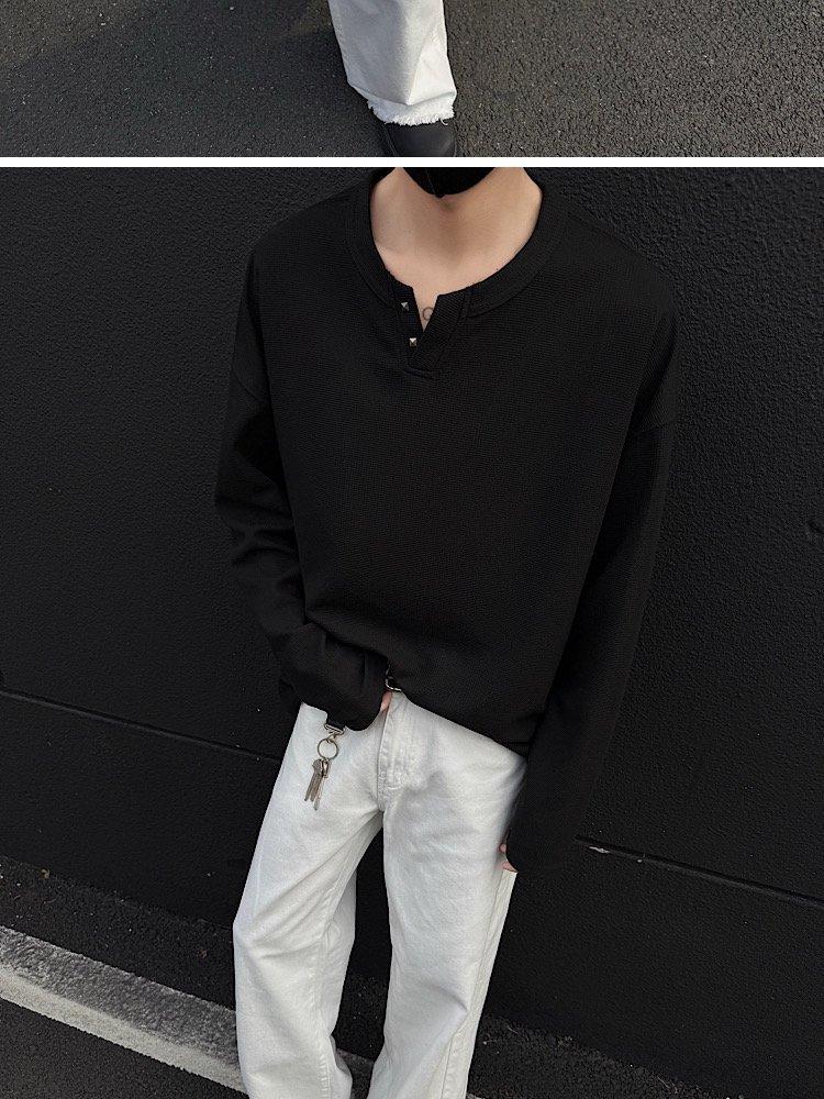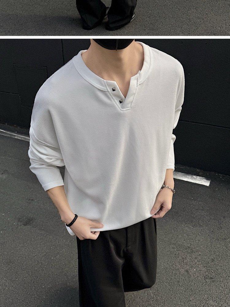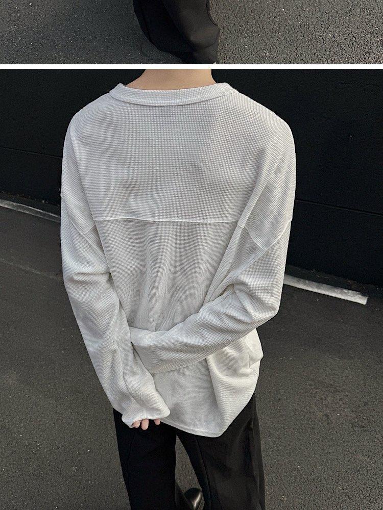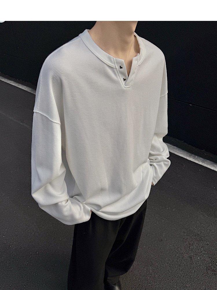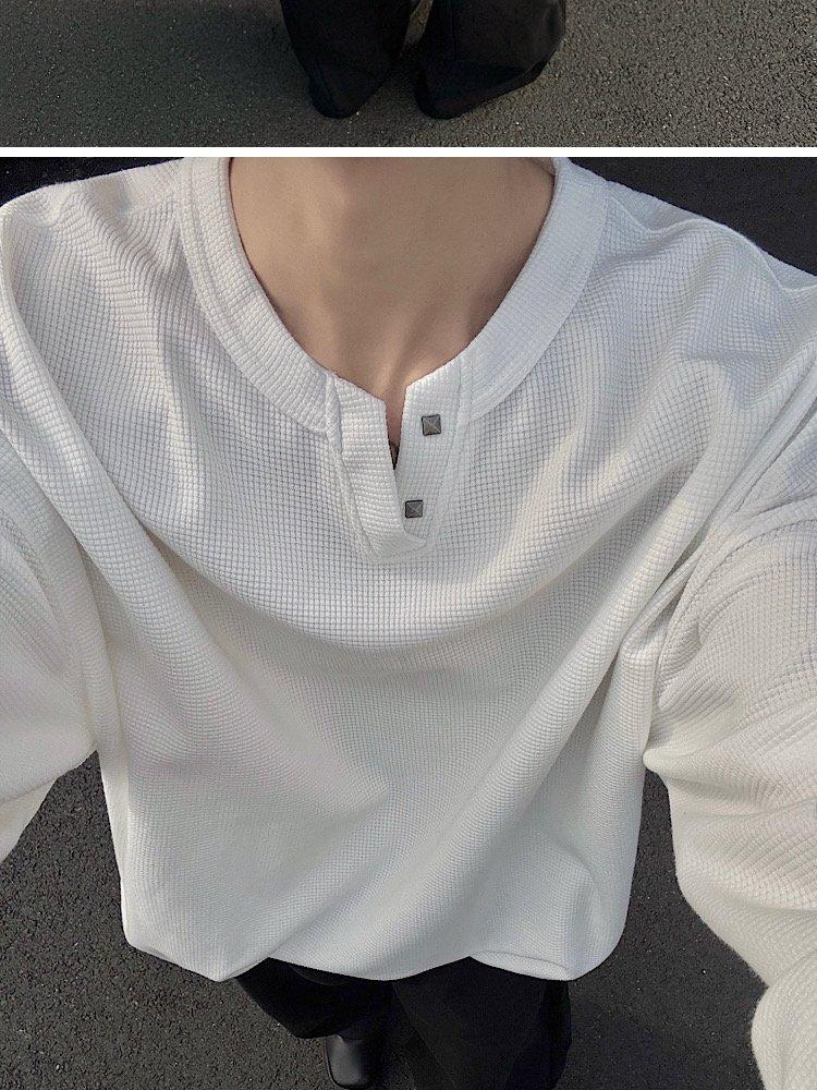 2025 Otoño Nuevo Americano Old Money Camiseta Base Cuello en V Suelta Texturizada Camiseta Sudadera Pareja Escote Pequeño Top