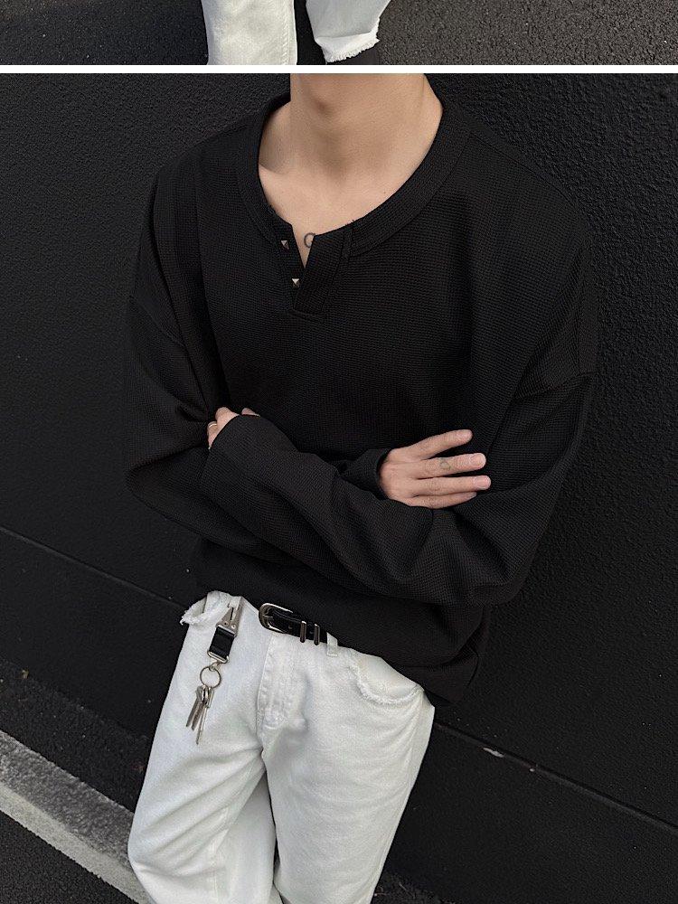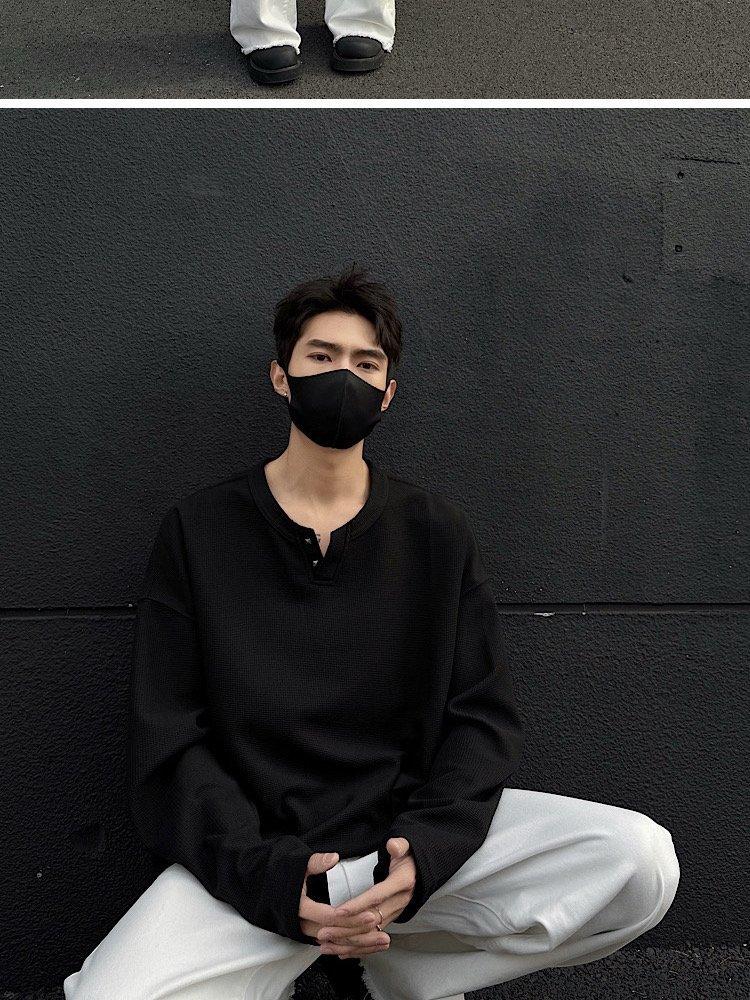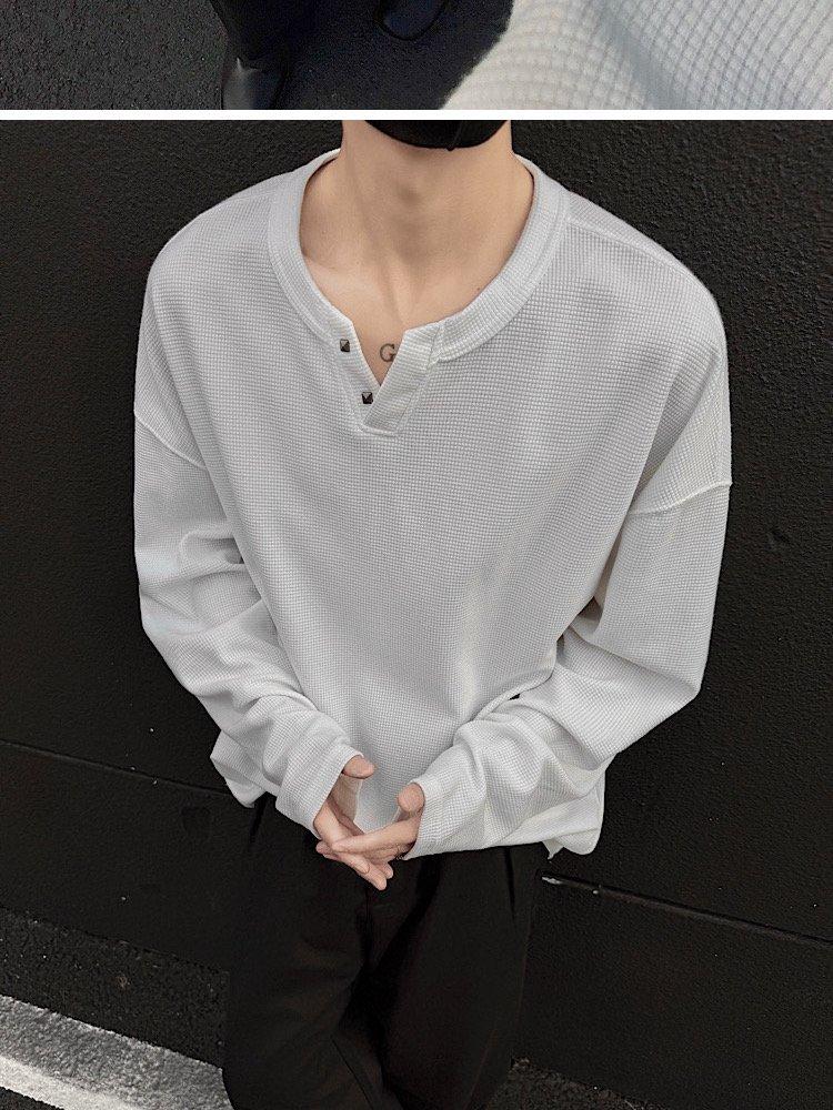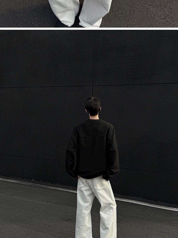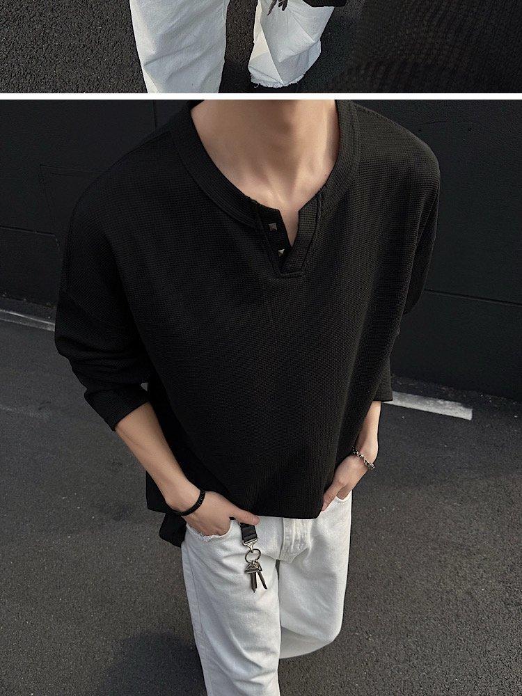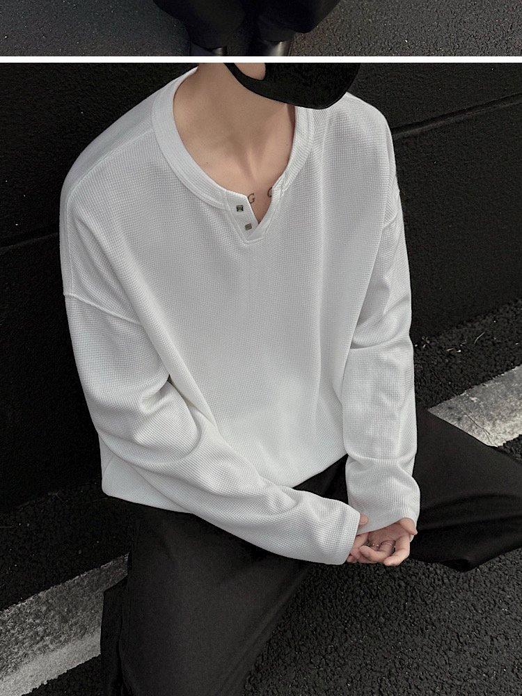 2025 Otoño Nuevo Americano Old Money Camiseta Base Cuello en V Suelta Texturizada Camiseta Sudadera Pareja Escote Pequeño Top