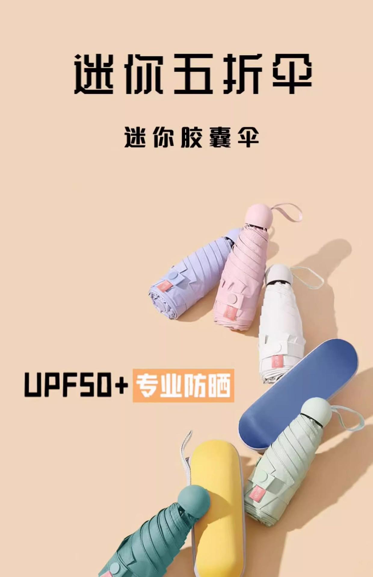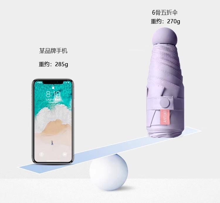Paraguas de sol Mini pequeño portátil femenino protección solar protección UV paraguas de cinco pliegues paraguas de doble uso para lluvia y sol paraguas cápsula