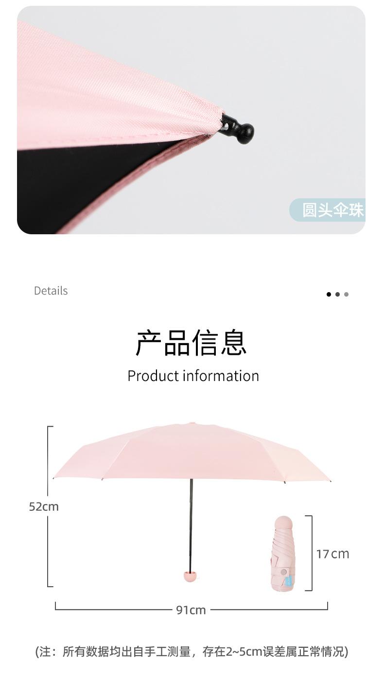 Paraguas de Sol Protección Solar Anti-UV Sombrilla Paraguas para Lluvia o Sol Doble Uso Cápsula para Mujer Compacto Portátil Mini Cinco Pliegues Paraguas al por Mayor