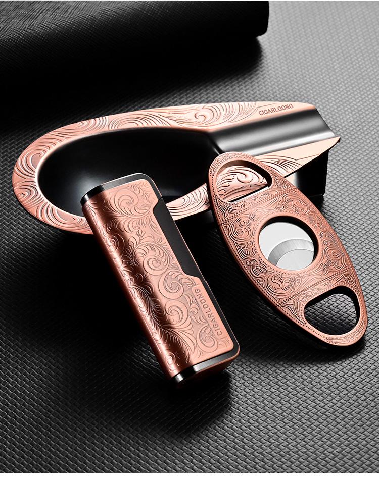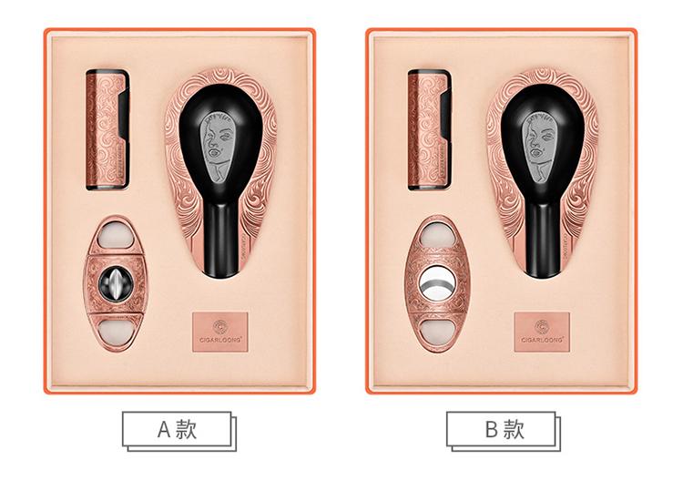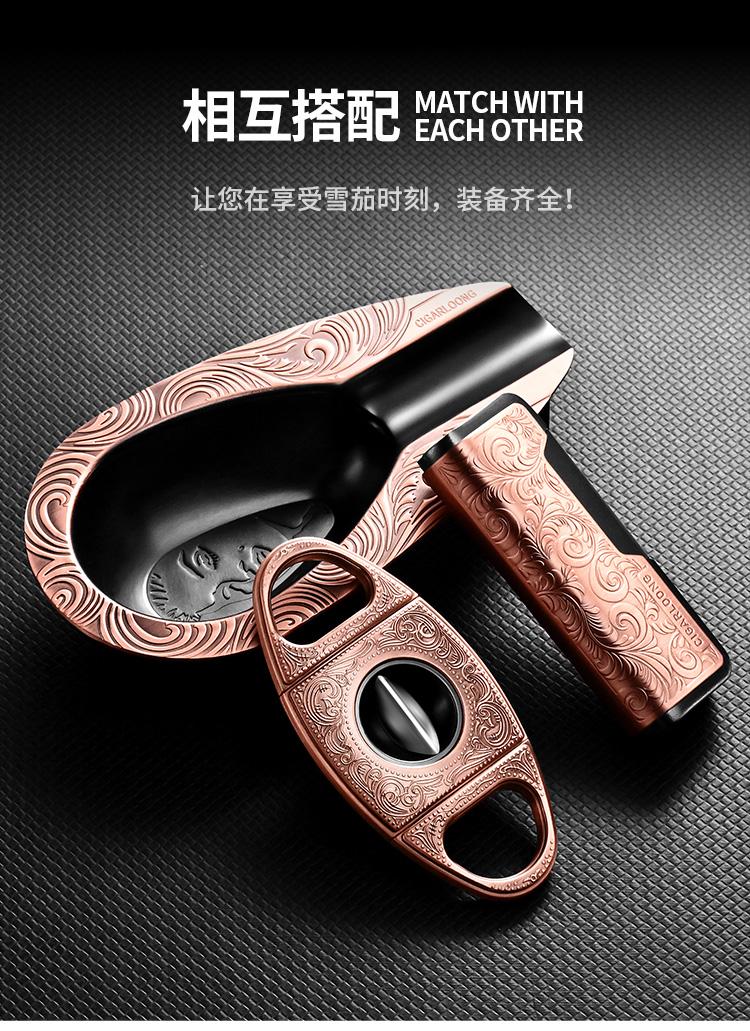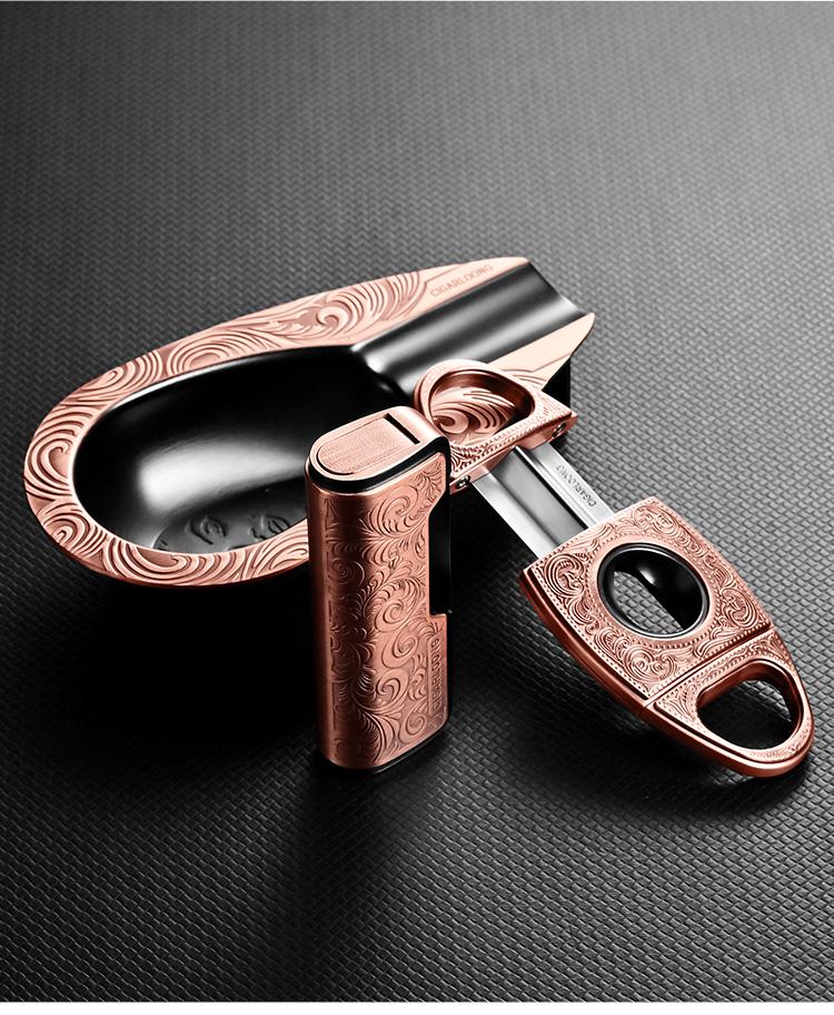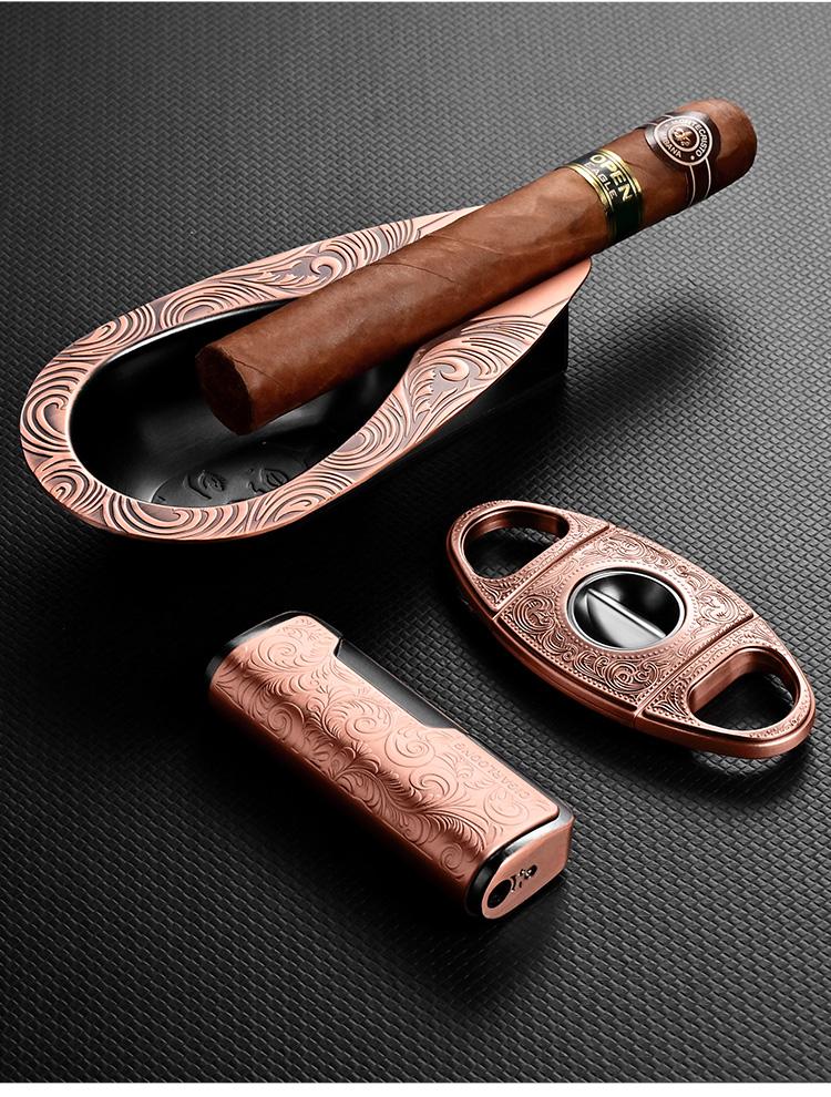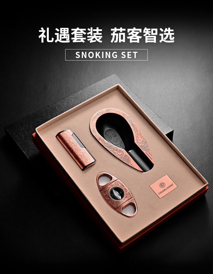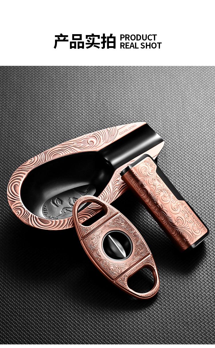 Compra Cigarlion berenjena tijeras de cigarro Dragón cenicero de gran diámetro encendedor de spray a prueba de viento de tres piezas CL-TZ249 al por mayor en Joom.pro
