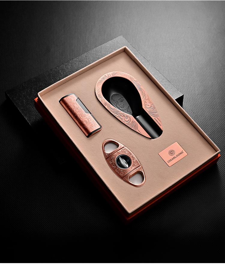 Cigarlion berenjena tijeras de cigarro Dragón cenicero de gran diámetro encendedor de spray a prueba de viento de tres piezas CL-TZ249