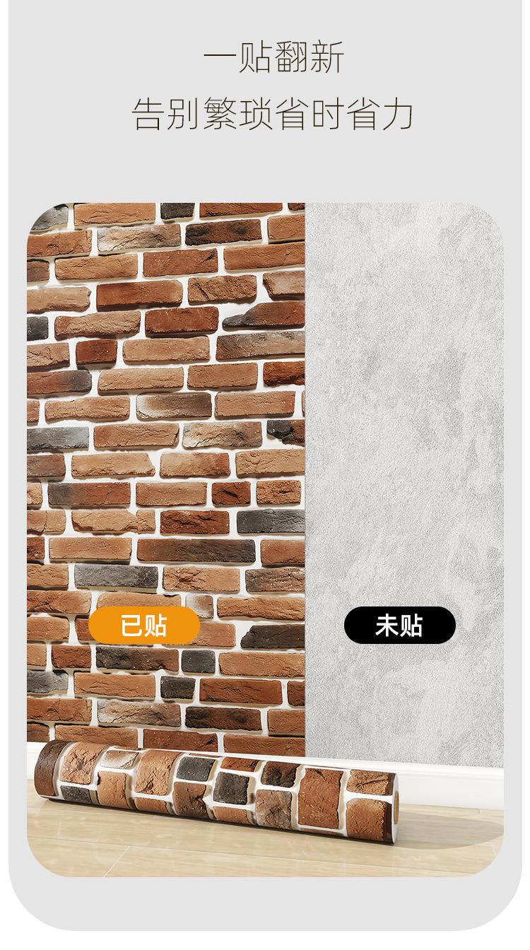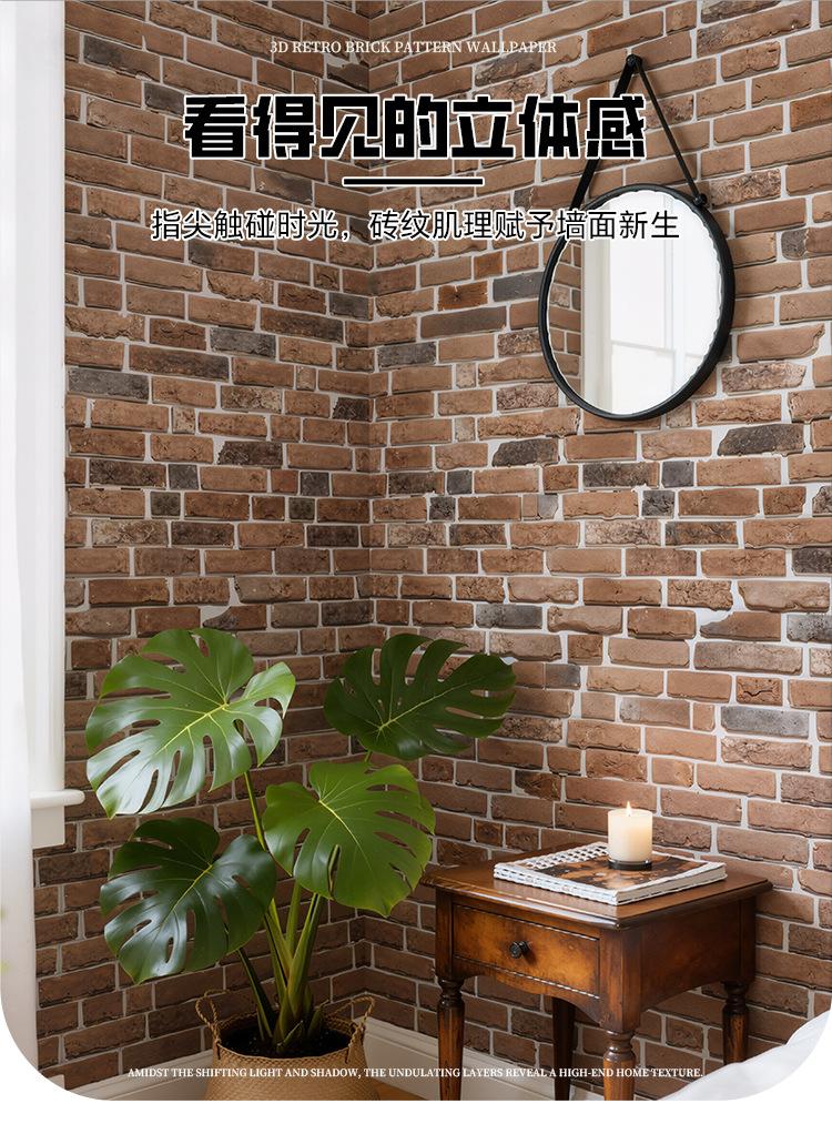 Papel Tapiz Autoadhesivo Patrón Ladrillo Retro Casa de Alquiler Impermeable Adhesivo de Pared Adhesivo Decoración de Pared Engrosado Renovación Papel Tapiz Uso Doméstico