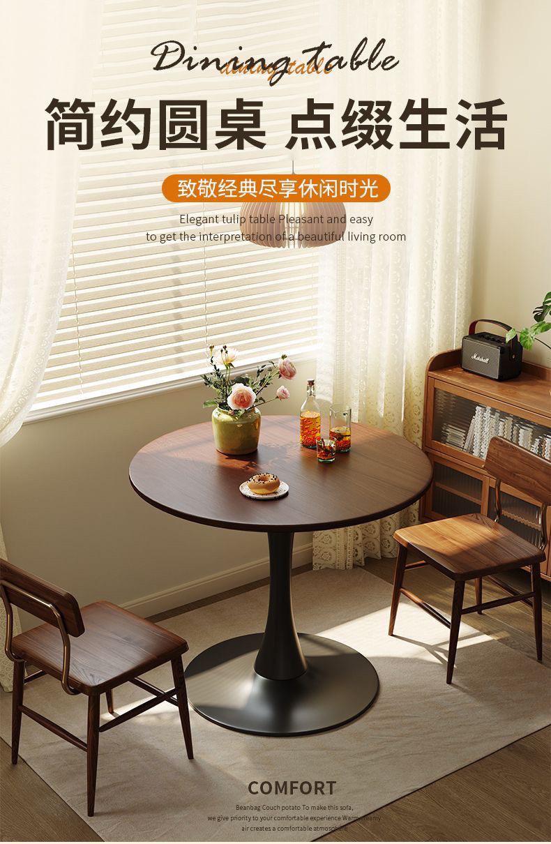 Mesa redonda de madera maciza redonda de nogal tulipán retro nórdico mesa de comedor hogar apartamento pequeño café balcón segunda mano negociación