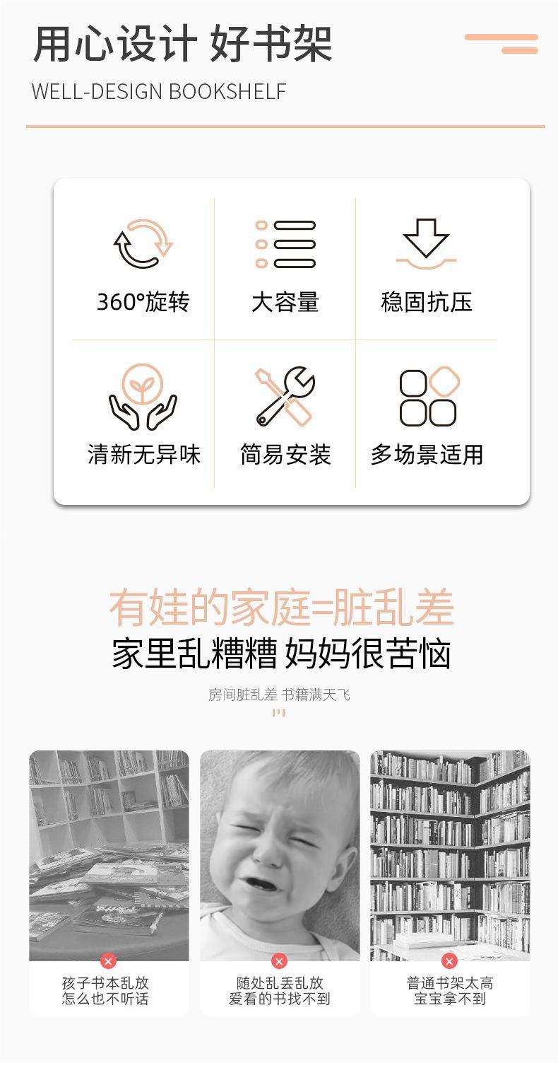 Librero para niños Almacenamiento y organización de juguetes para el hogar Libro de imágenes para bebés Gabinete de almacenamiento multicapa de pie Estante de almacenamiento giratorio simple