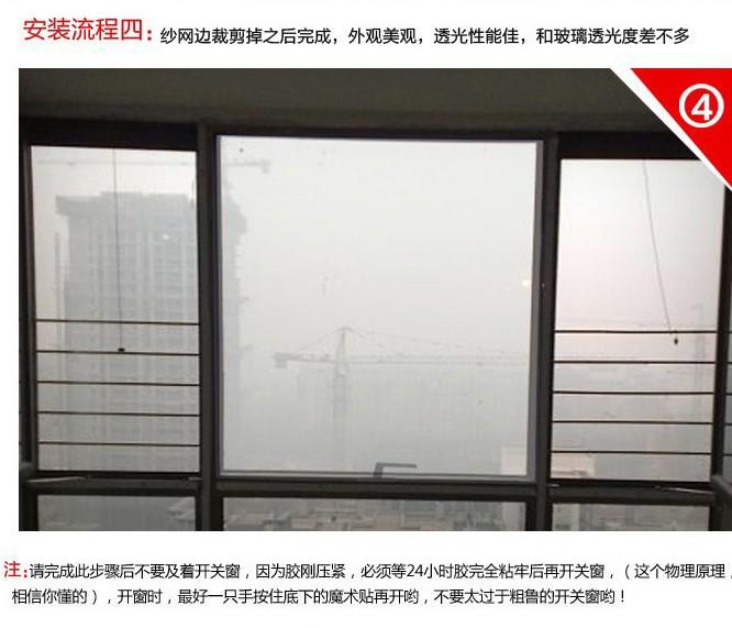 Precauciones de uso: Primero limpie la parte donde se va a instalar la mosquitera, y cuando la humedad en la superficie de contacto esté seca, pegue el velcro al marco de la ventana. La mosquitera se puede colocar o quitar en cualquier momento. No necesita ser fijada, solo presiónela suavemente. Después de que la mosquitera se haya usado durante un período de tiempo, quítela y lávela con agua. Este producto está hecho de gasa, manténgalo alejado del fuego para evitar afectar el efecto de uso; no perfore la pantalla con objetos afilados, si se daña, simplemente péguela con cinta adhesiva transparente.
