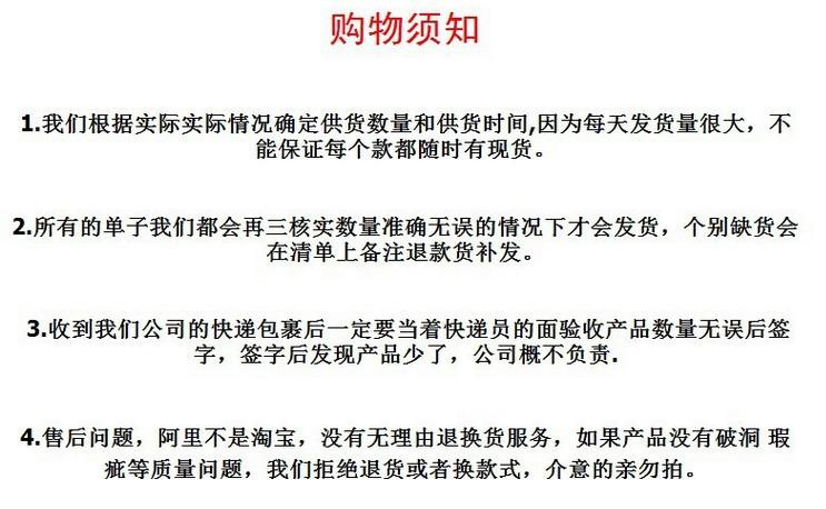 2. Para los clientes que confían en sus sentimientos para estimar cuándo deberían llegar, pero se niegan a recoger la mercancía porque se retrasa 1-2 días, o porque piensan que la tarifa de transferencia es alta (la tarifa de transferencia es generalmente 10-20), y se niegan a pagar, lean el siguiente texto cuidadosamente. Si pertenece a esta categoría, por favor no compre en nuestra tienda. Nuestra tienda no puede soportar sus problemas. Nuestra tienda solo vende productos al por mayor, no hacemos logística, no podemos controlar el tiempo de llegada de su mercancía. Si hay un comportamiento de no recoger la mercancía a su llegada, los costos de envío de ida y vuelta correrán por su cuenta, y a dichos clientes se les negará el servicio en el futuro. Los negocios no son un juego, por favor no juegue.