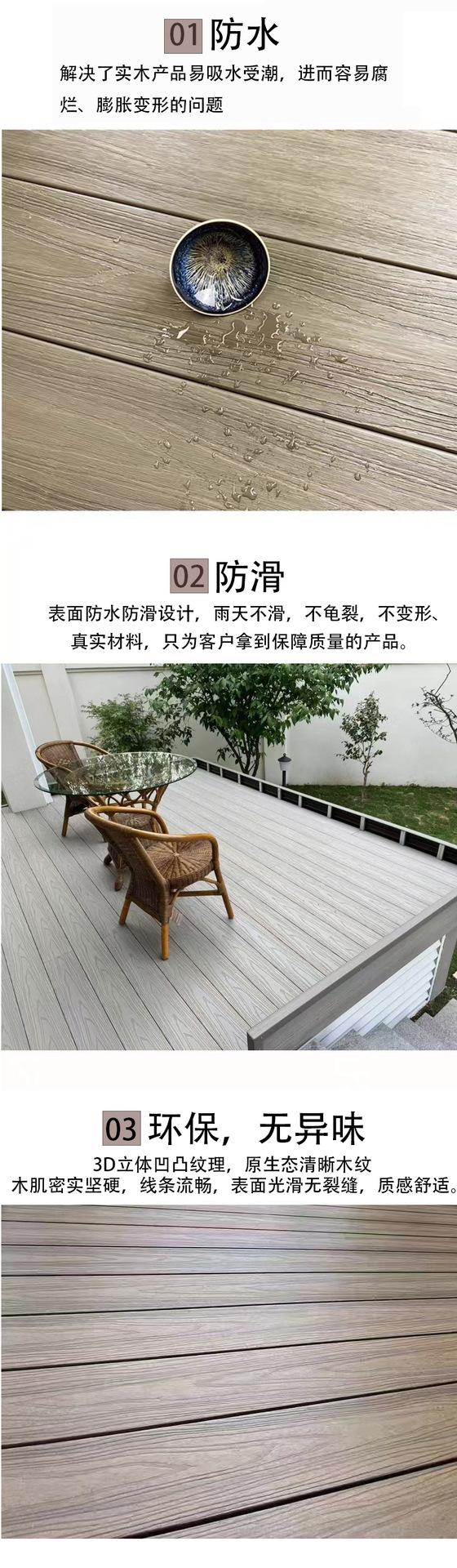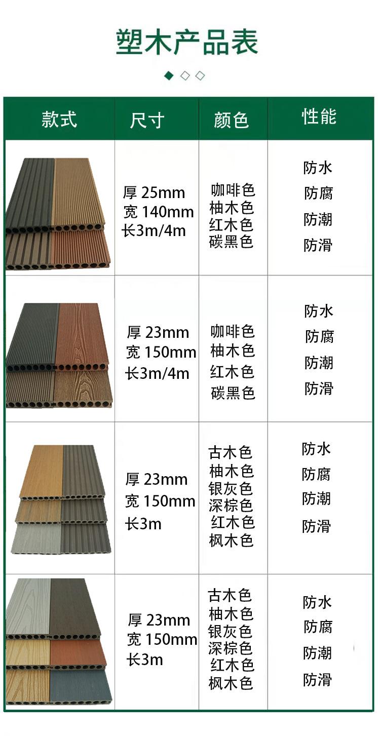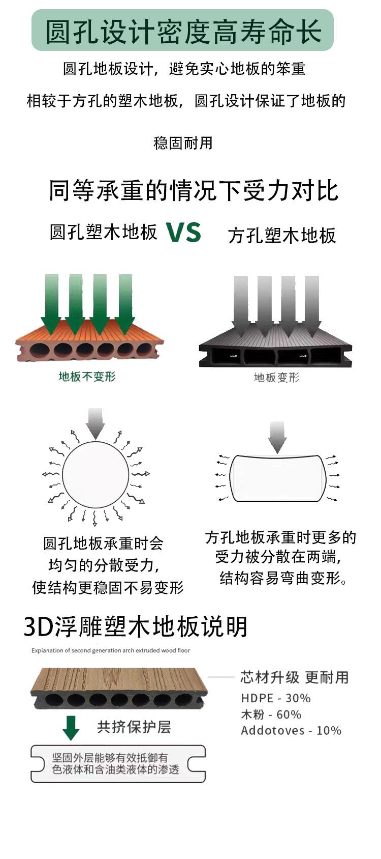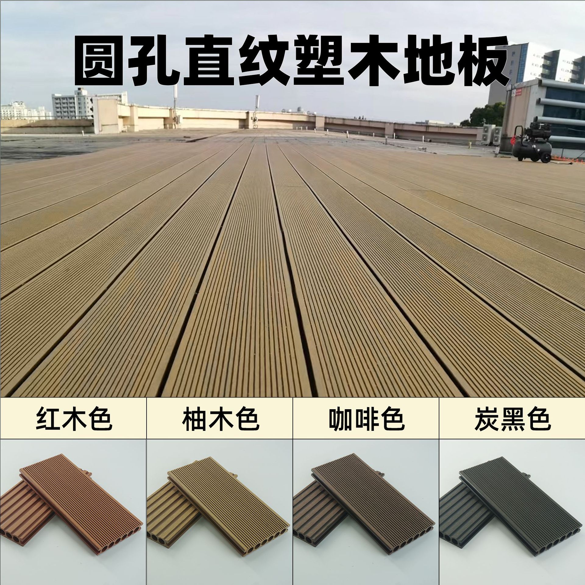 Piso de Madera Plástica de Grano Recto con Agujero Redondo de Fábrica para Exterior, Piso de Madera Plástica para Patio, Decking de Madera para Patio, Piso de Madera Plástica WPC Transfronterizo