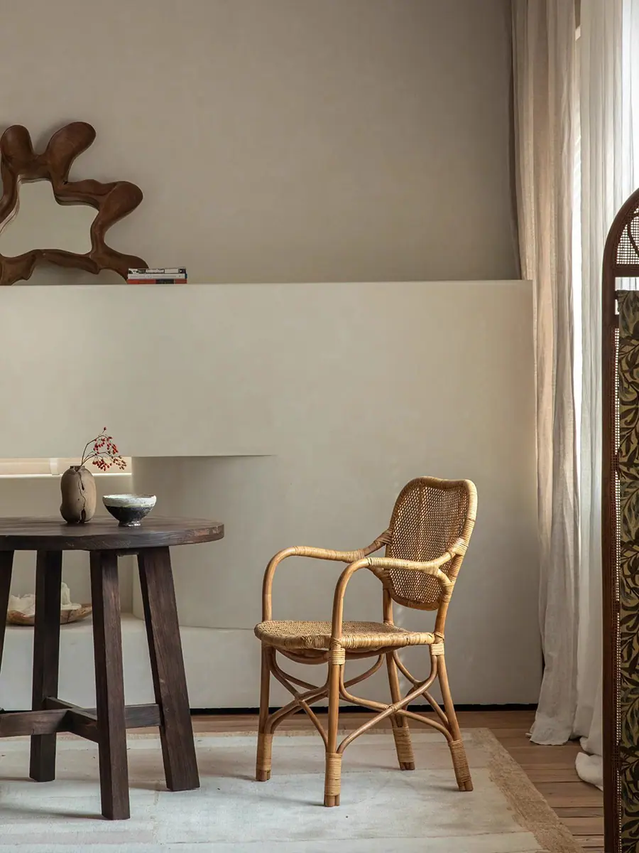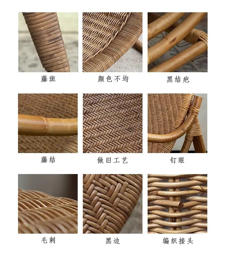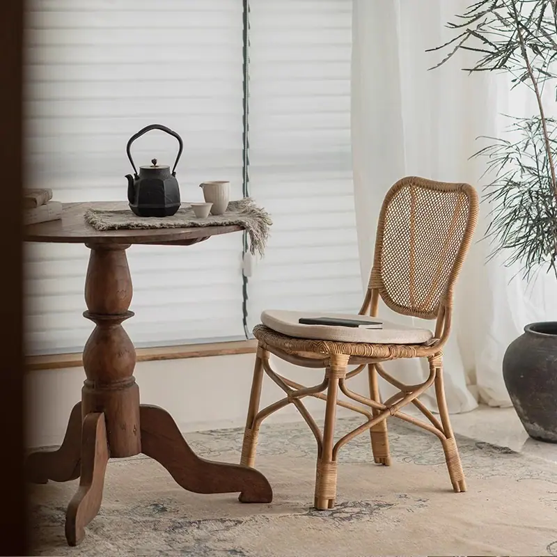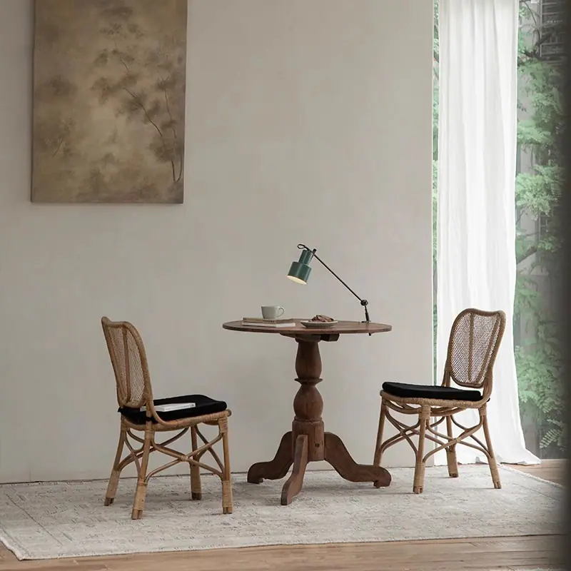 Wow Mesa de Comedor y Sillas de Ratán Real del Sudeste Asiático Personalizadas Estilo Wabi-Sabi Sala de Estar B&B Balcón Silla de Ocio Combinación de Mesa Auxiliar