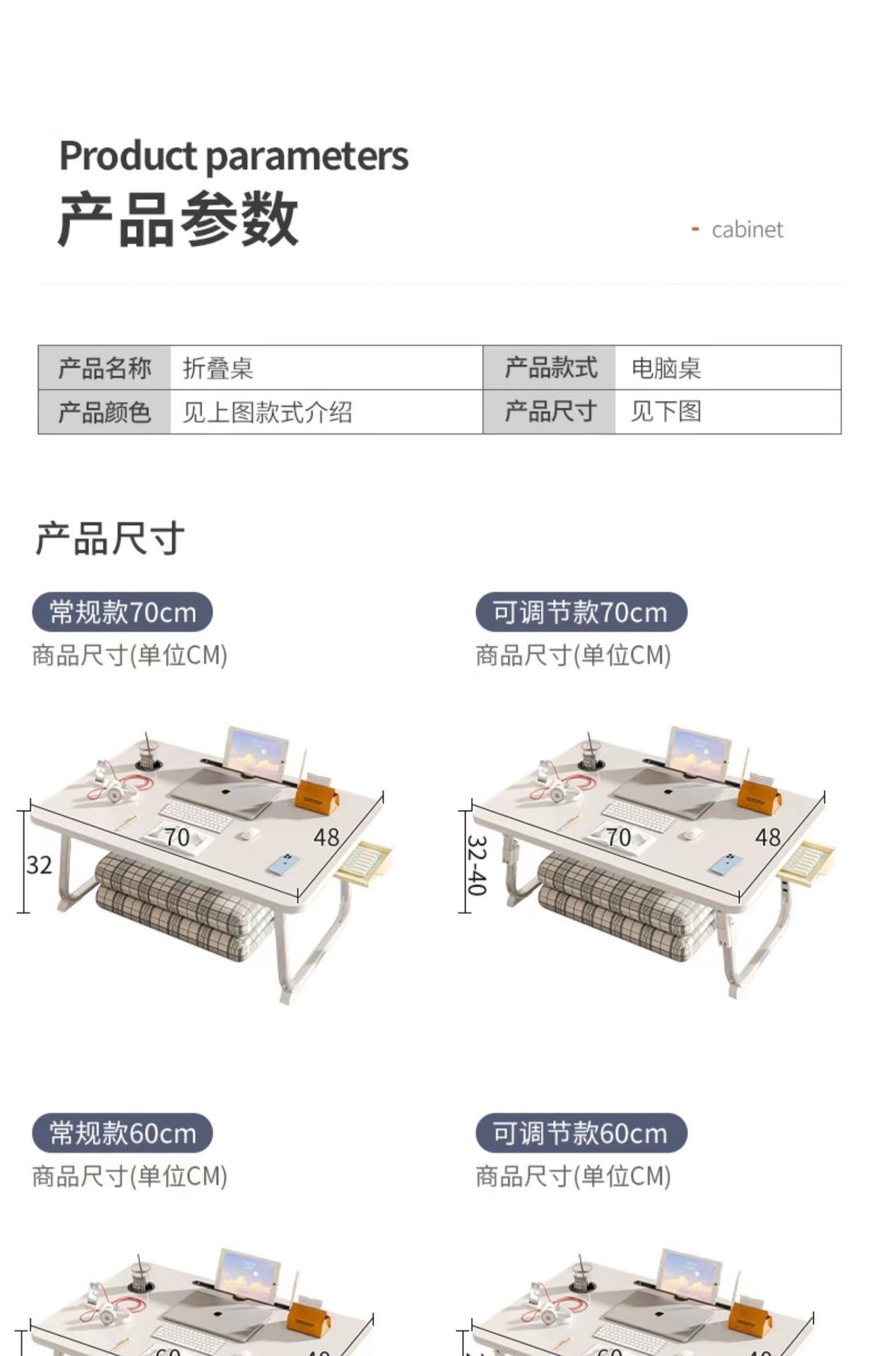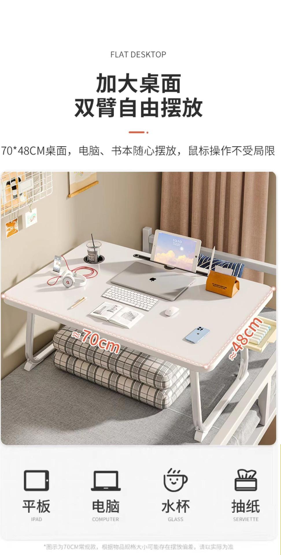 Escritorio de Cama de Tamaño Grande con Altura Ajustable Mesa para Laptop Dormitorio Estudiantil Especial Mesa Plegable Perezosa