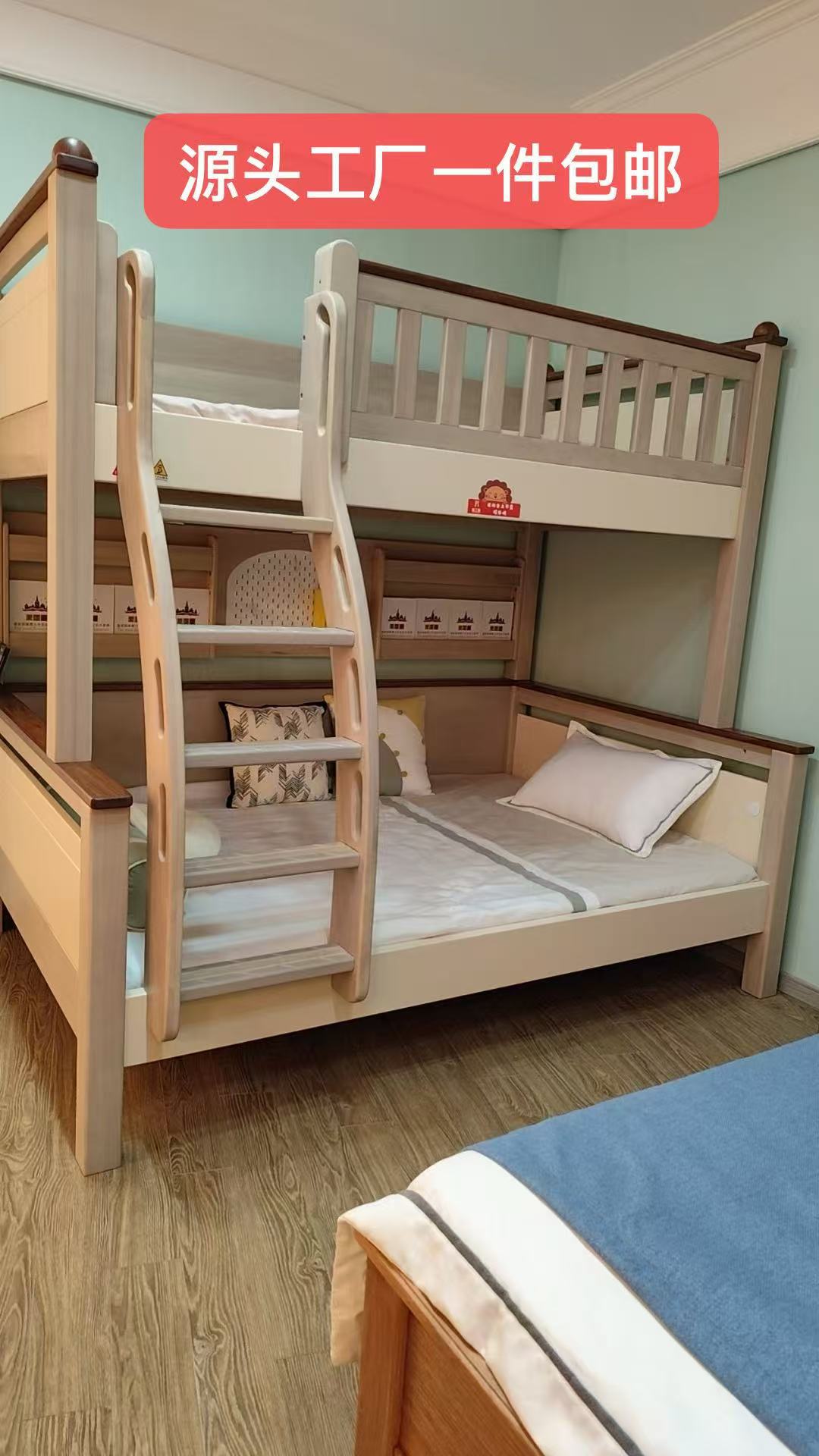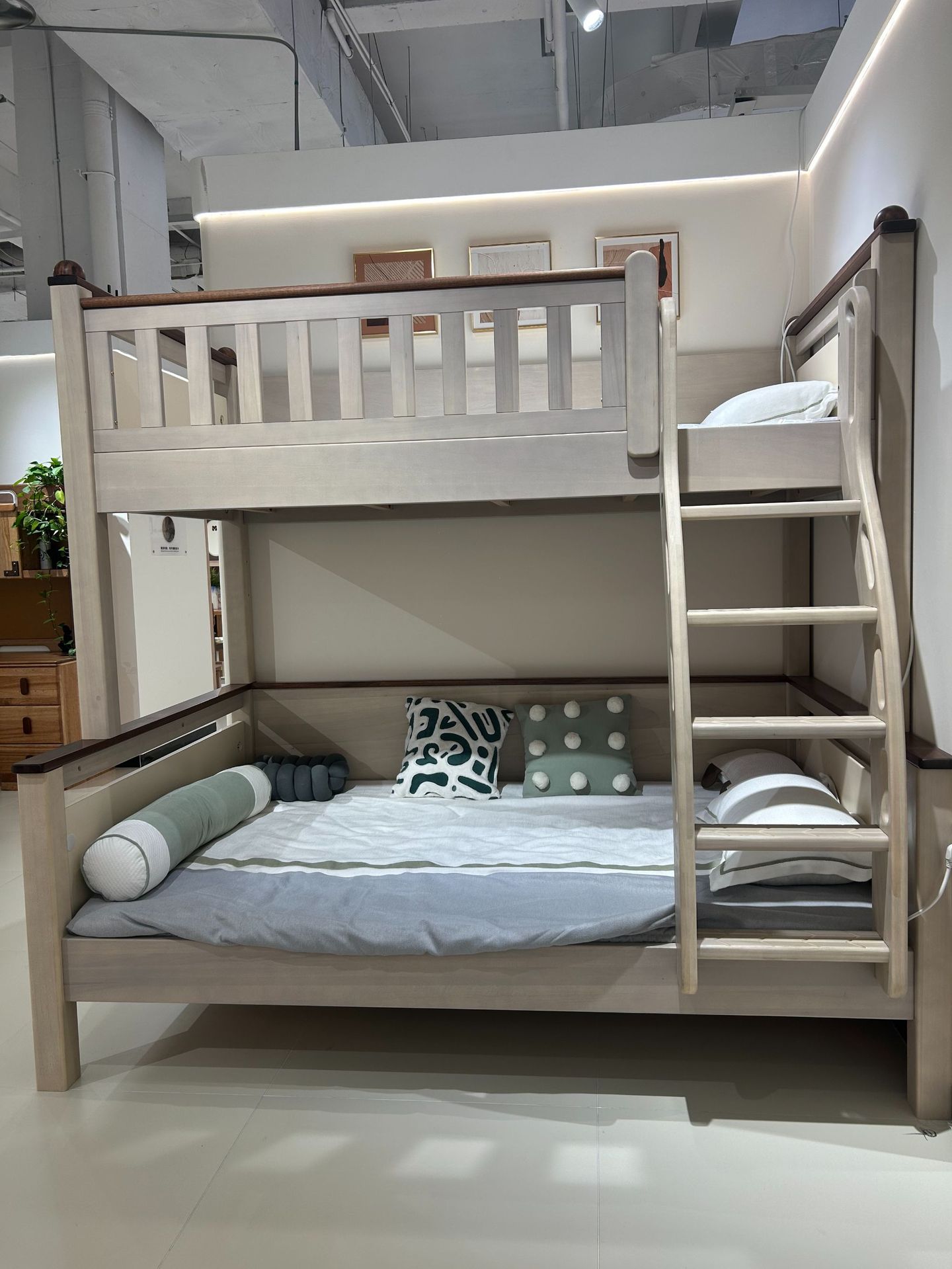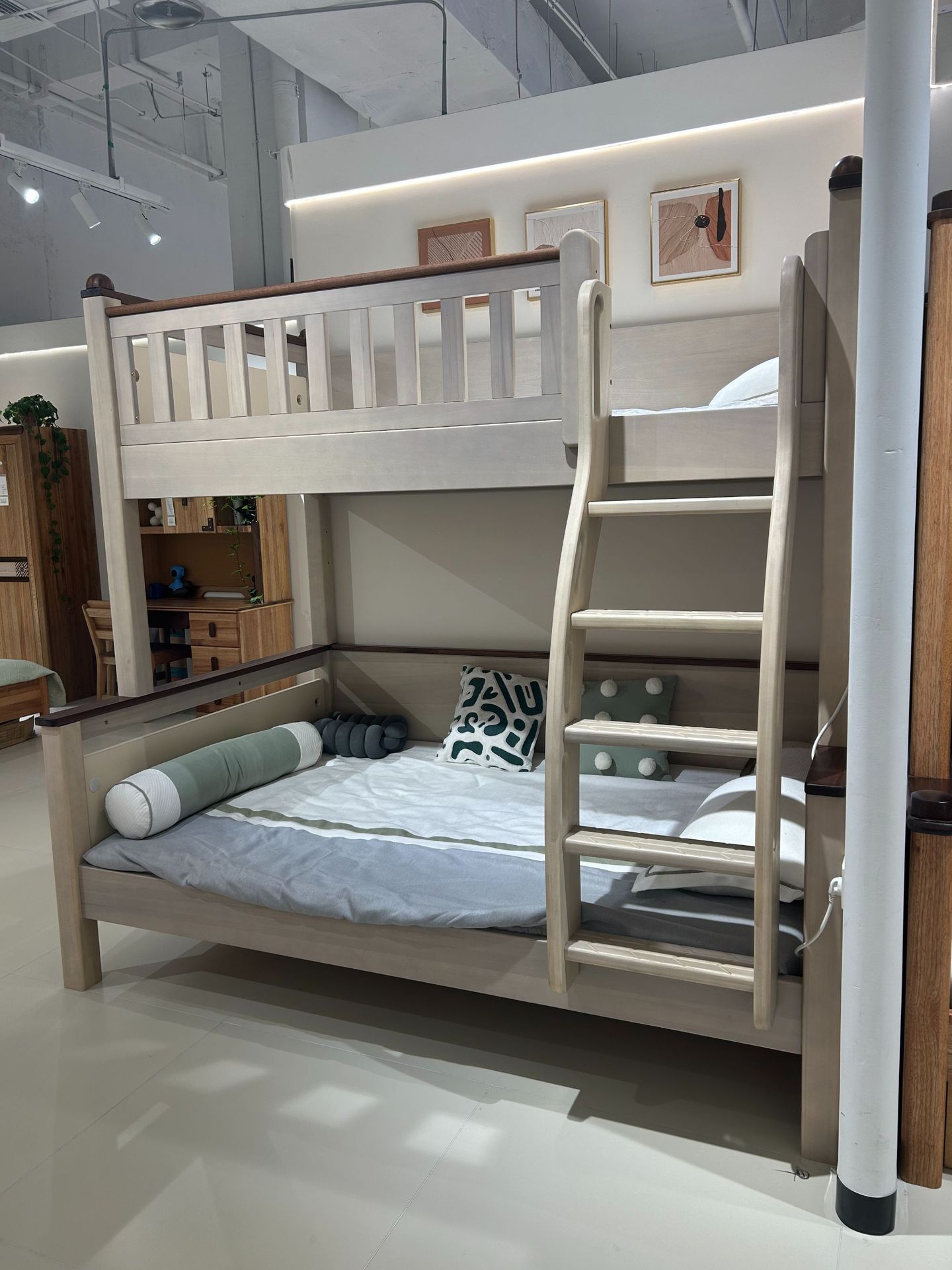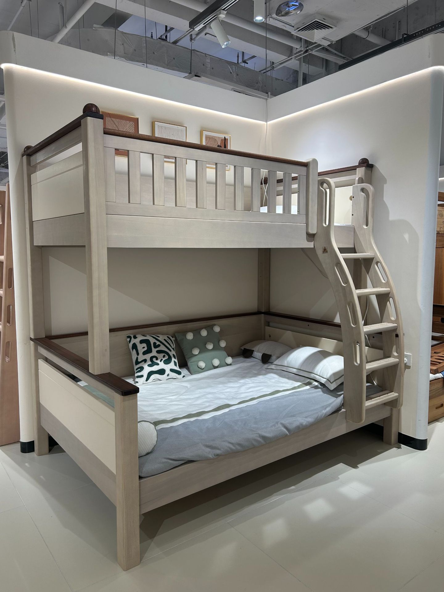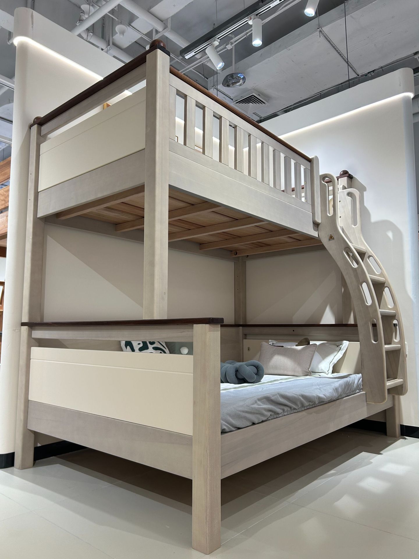 Litera Infantil de Madera Maciza Gris Moca Blanco Crema Cama Padre-Hijo Cama Tecla de Piano Cama Alta-Baja Cama Niño Niña