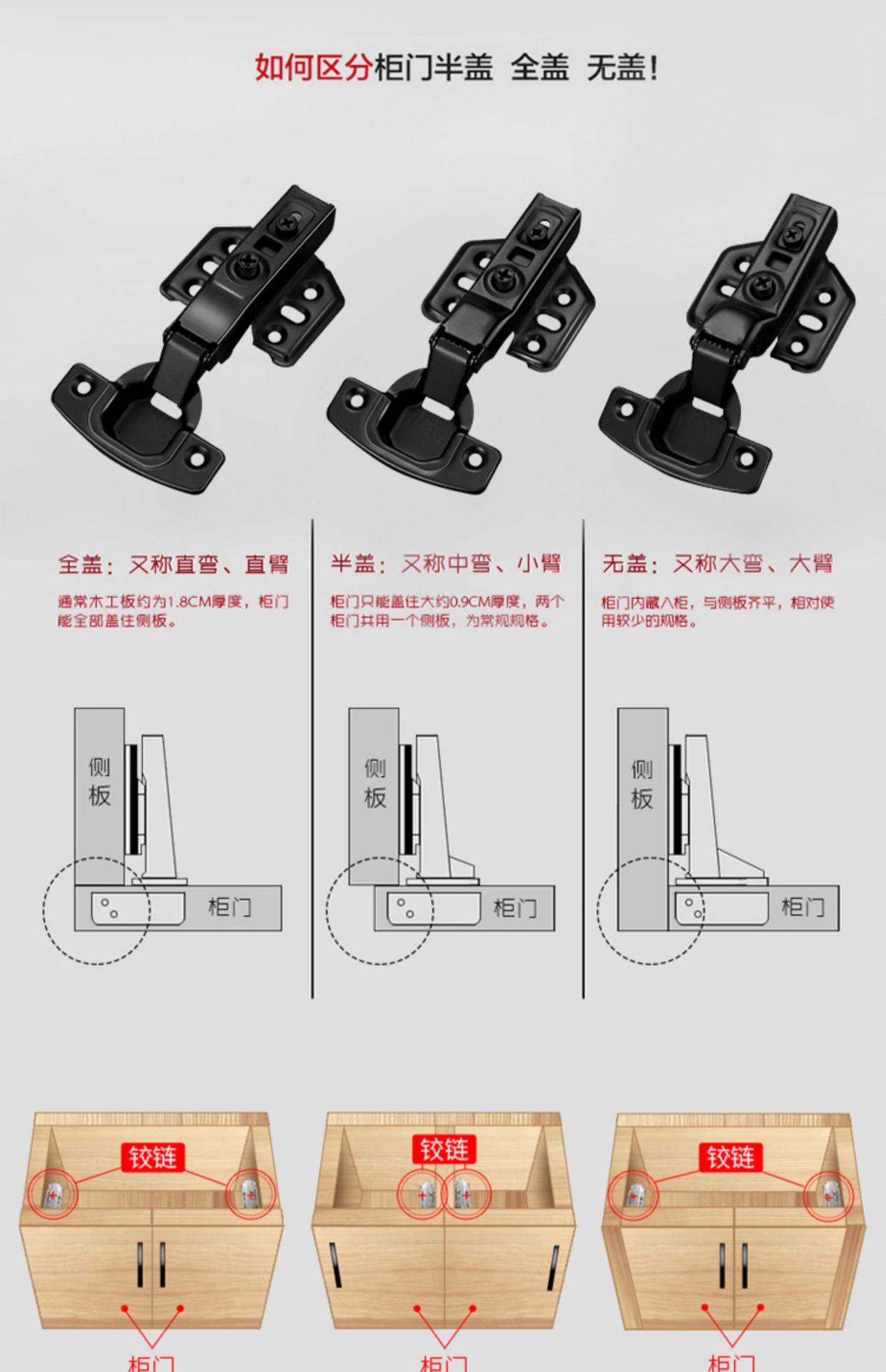 Bisagra Amortiguadora Hidráulica de Acero Inoxidable Negro Resorte de Avión Bisagra para Puerta de Gabinete Herrajes para Armario Plegable Curvatura Media