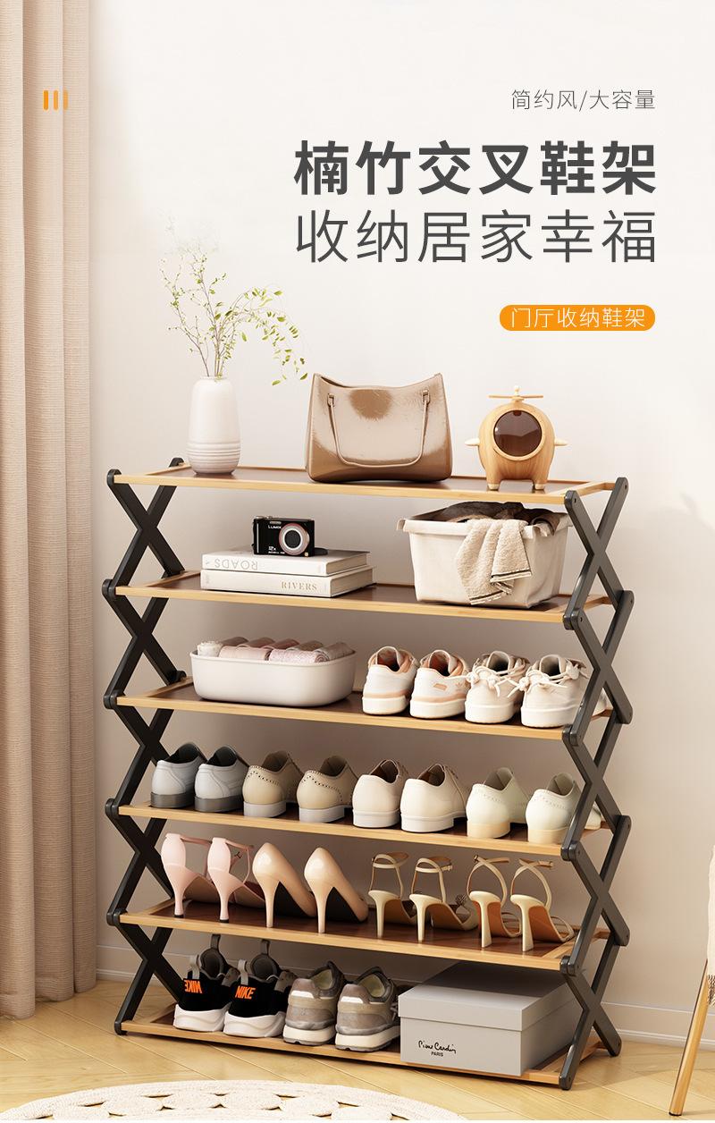 Zapatero Multicapa de Gran Capacidad para el Hogar Almacenamiento Plegable Zapatero Simple Engrosado de Instalación Gratuita Estante de Almacenamiento de Bambú Nan