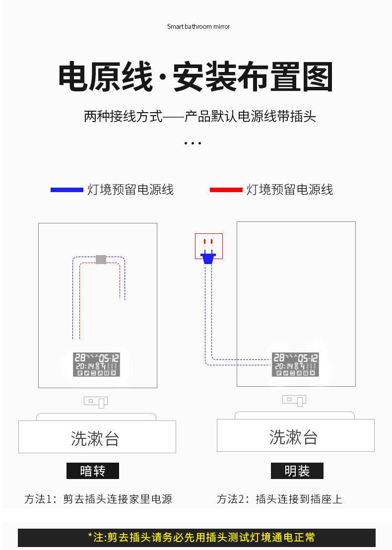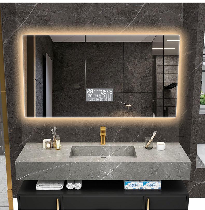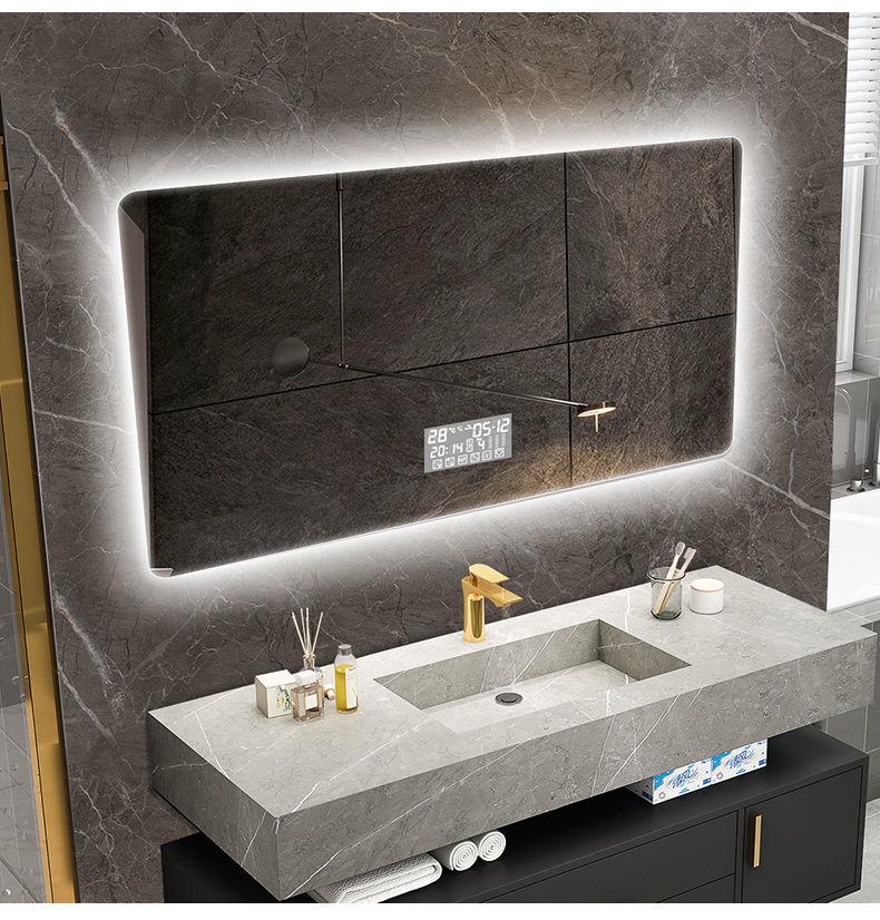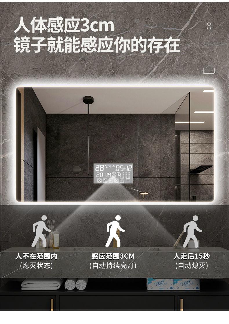 Espejo inteligente nórdico con pantalla táctil para baño, espejo antivaho LED con luz de inducción corporal, espejo de baño montado en la pared