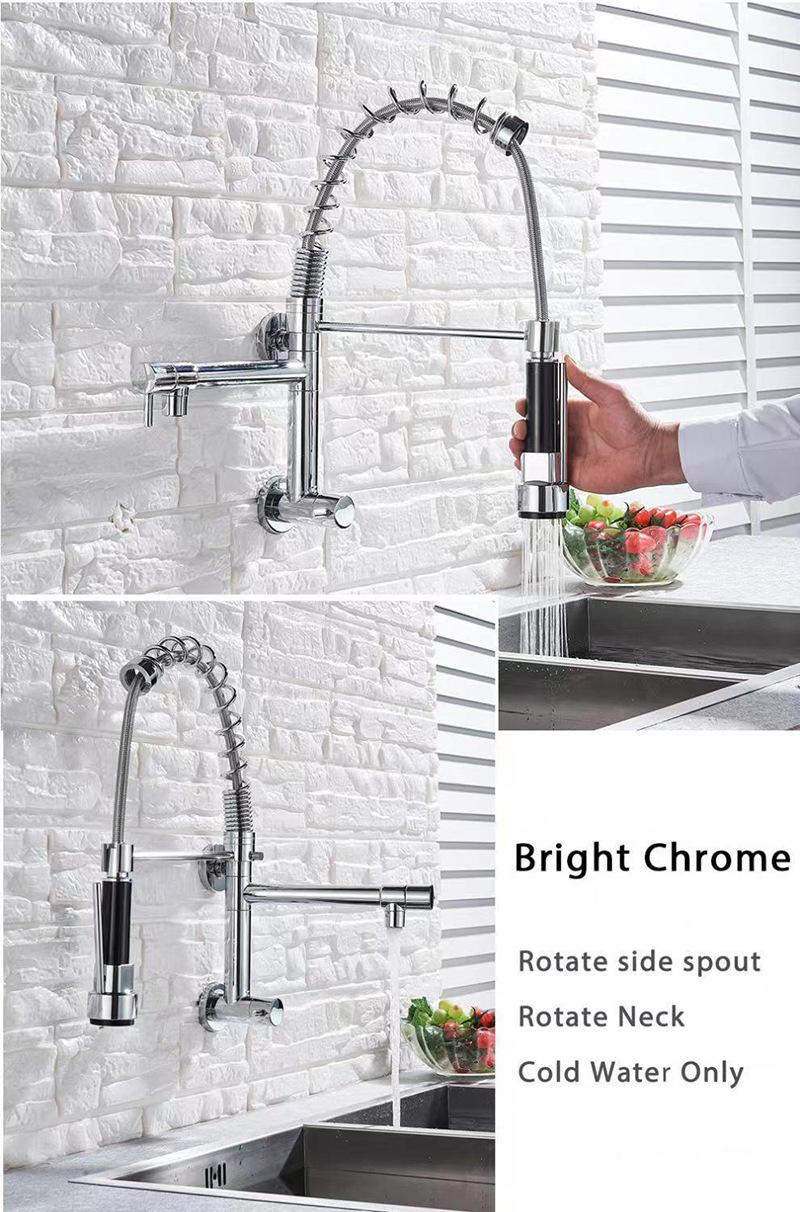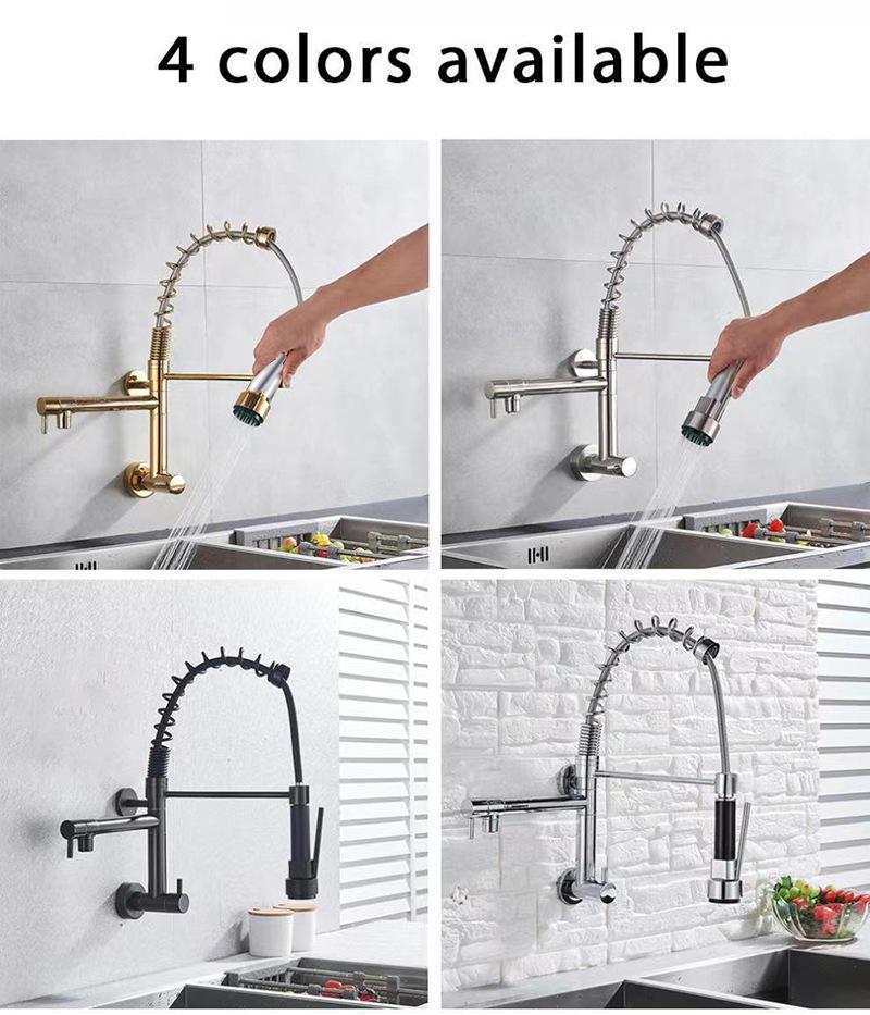 Grifo de resorte montado en la pared transfronterizo de un solo frío para cocina multifunción universal giratorio doble agua extraíble